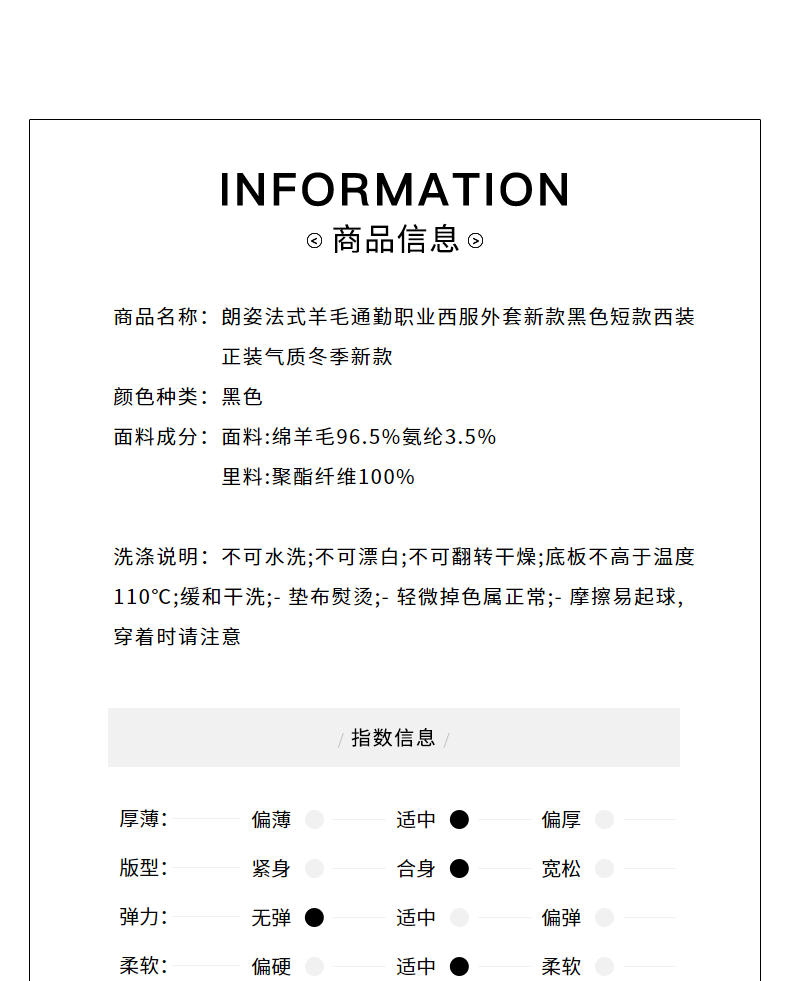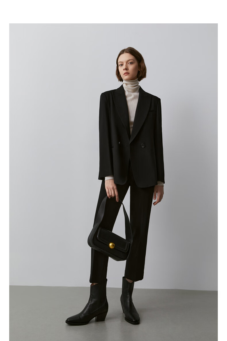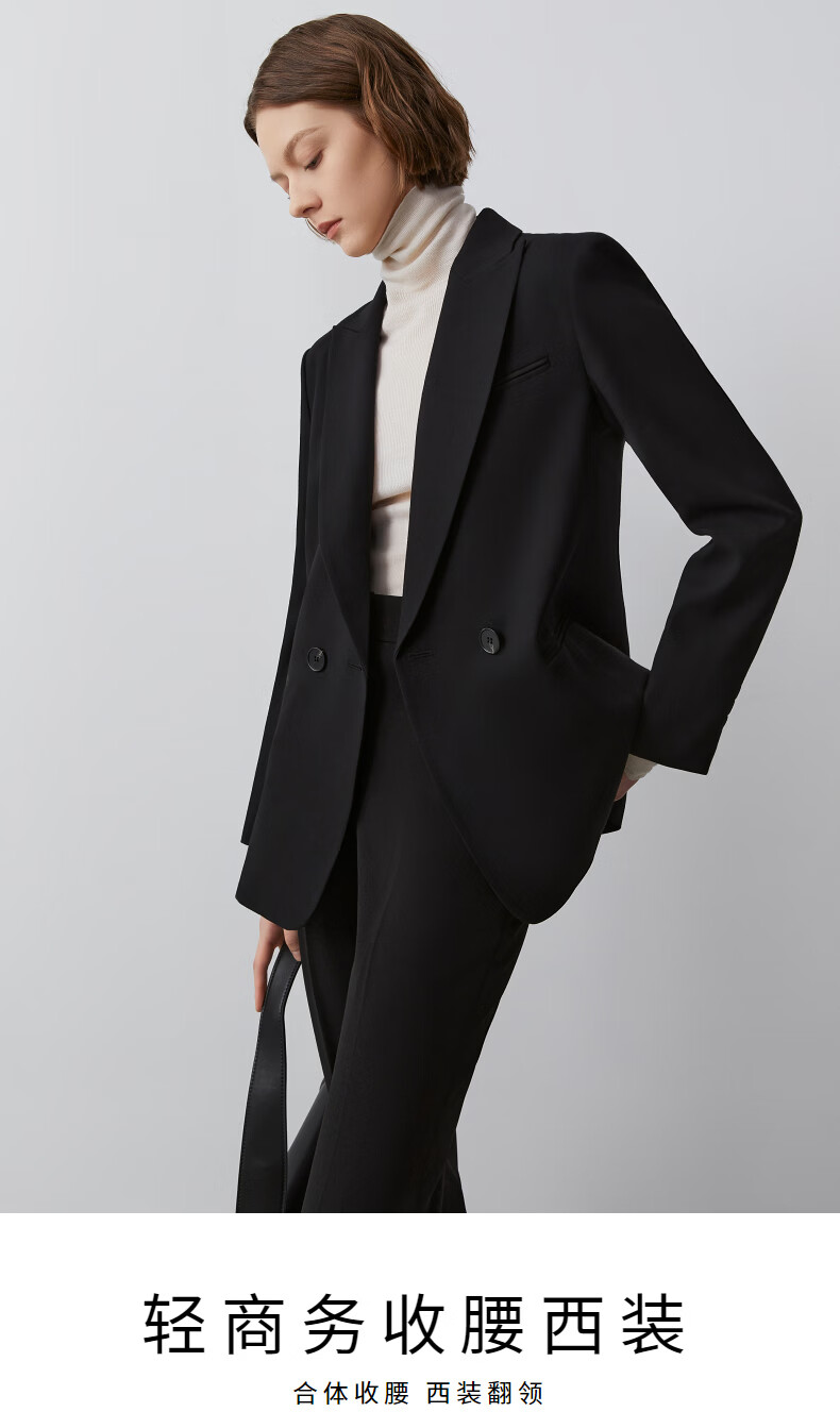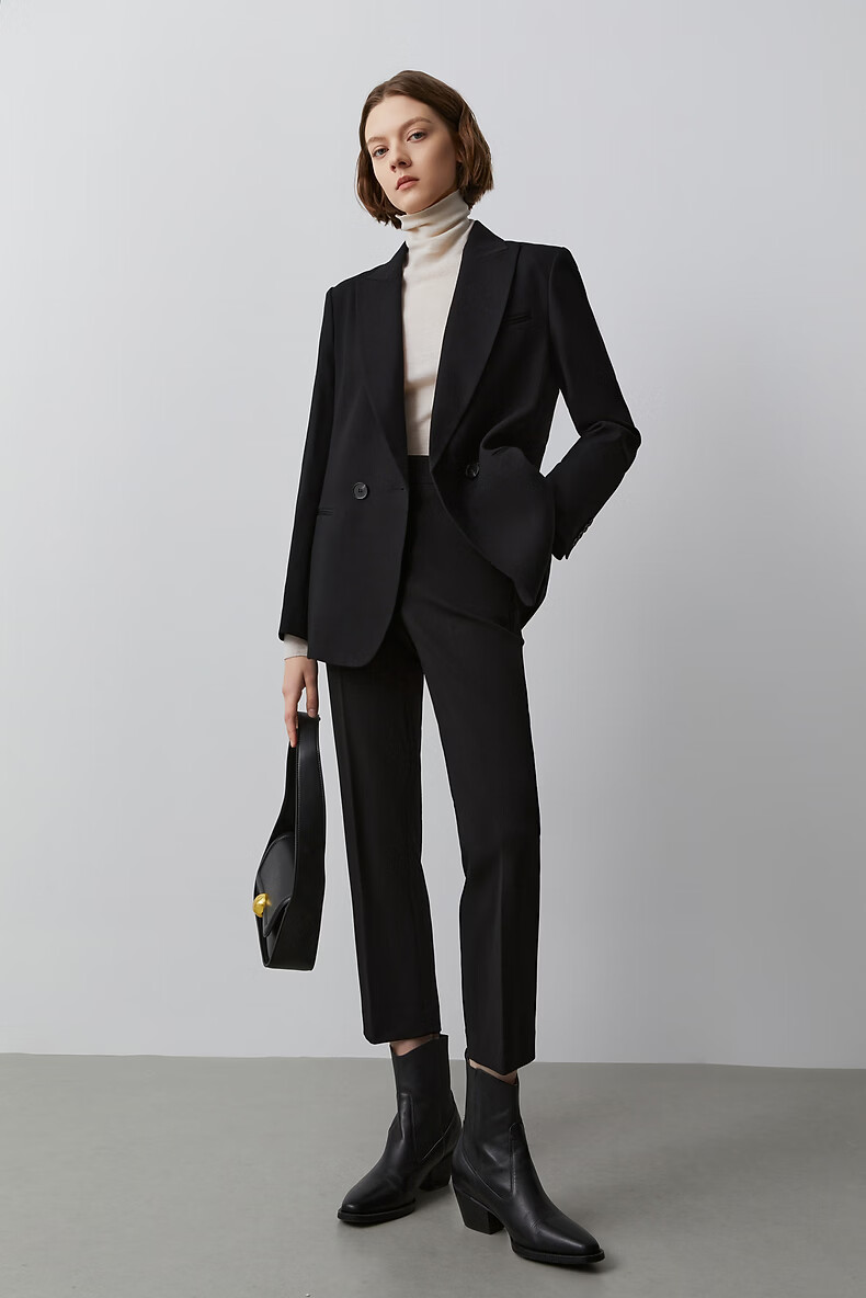 Langzi French wool commuter professional suit jacket new black short suit formal temperament winter new style black 3 M