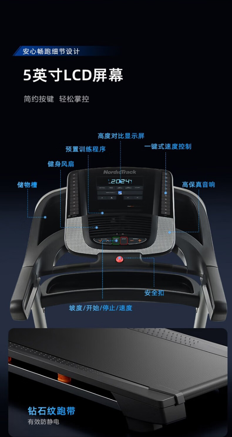 ICON American treadmill T5.5S high-end household silent shock-absorbing electric slope weight management fitness equipment 200 N-class high temperature resistant motor including installation