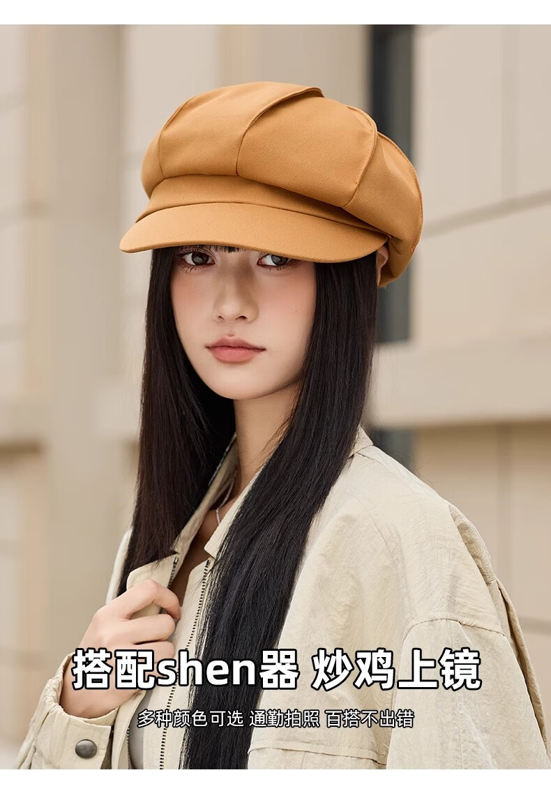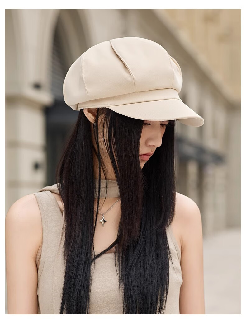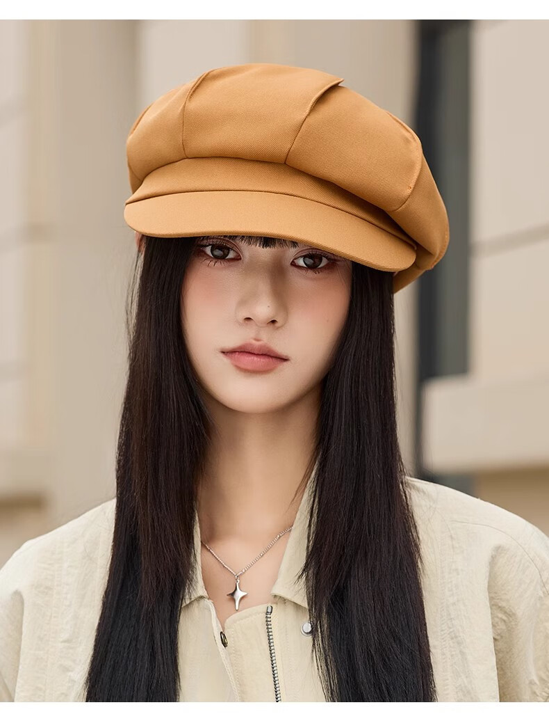 Scarecrow beret women's 2025 spring and summer new Korean version ins style British retro painter hat duck tongue octagonal hat fashionable beige one size