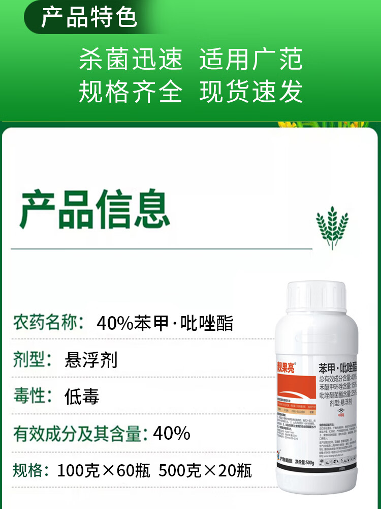 Hulian Plant Protection 40% benzopyrazole fungicide difenoconazole pyrazolostrobin anthrax powdery mildew rust pesticide 40% benzopyrazole 500g*1 bottle