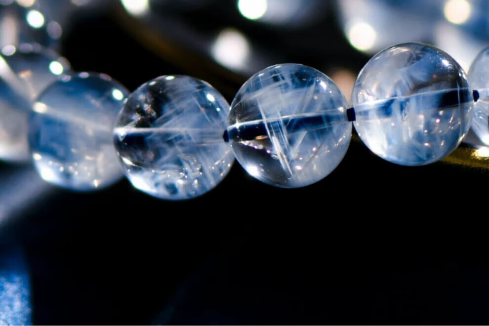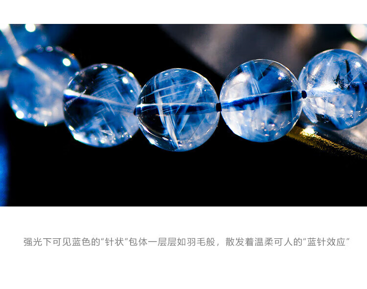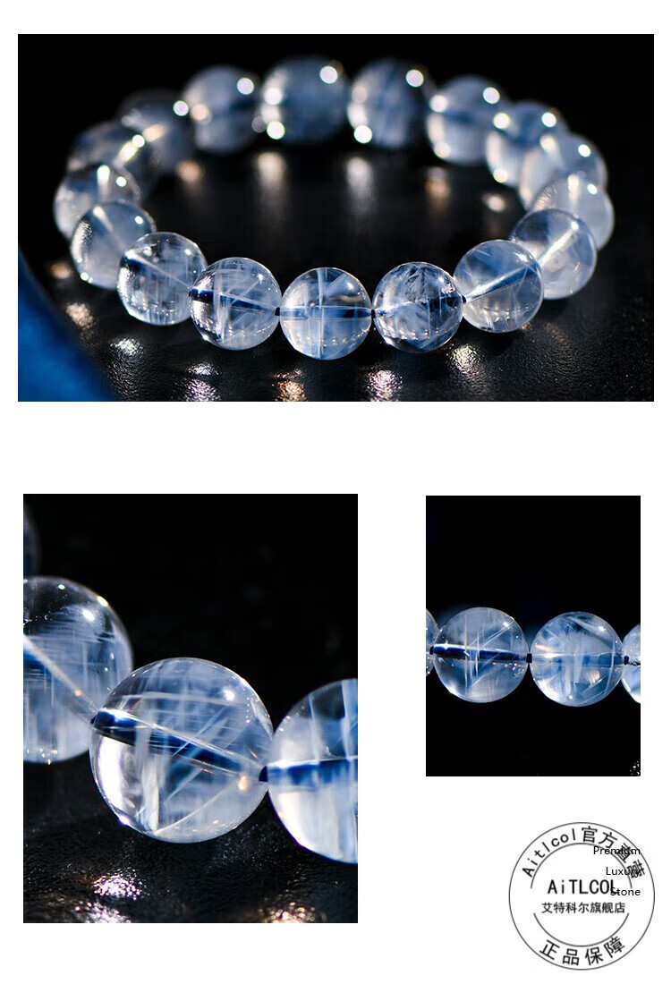 Etkoll Collection Natural Blue Needle Crystal Bracelet Vision White Old Mine Bracelet for Women as Valentine's Day Birthday Gift for Girlfriend Collectible Blue Needle Crystal 9mm+Certificate