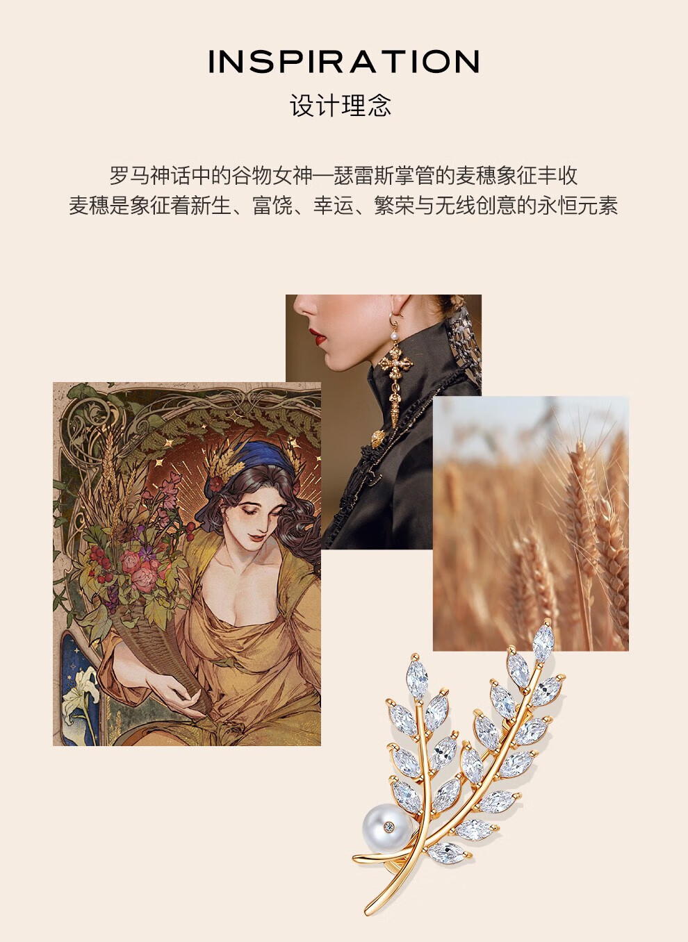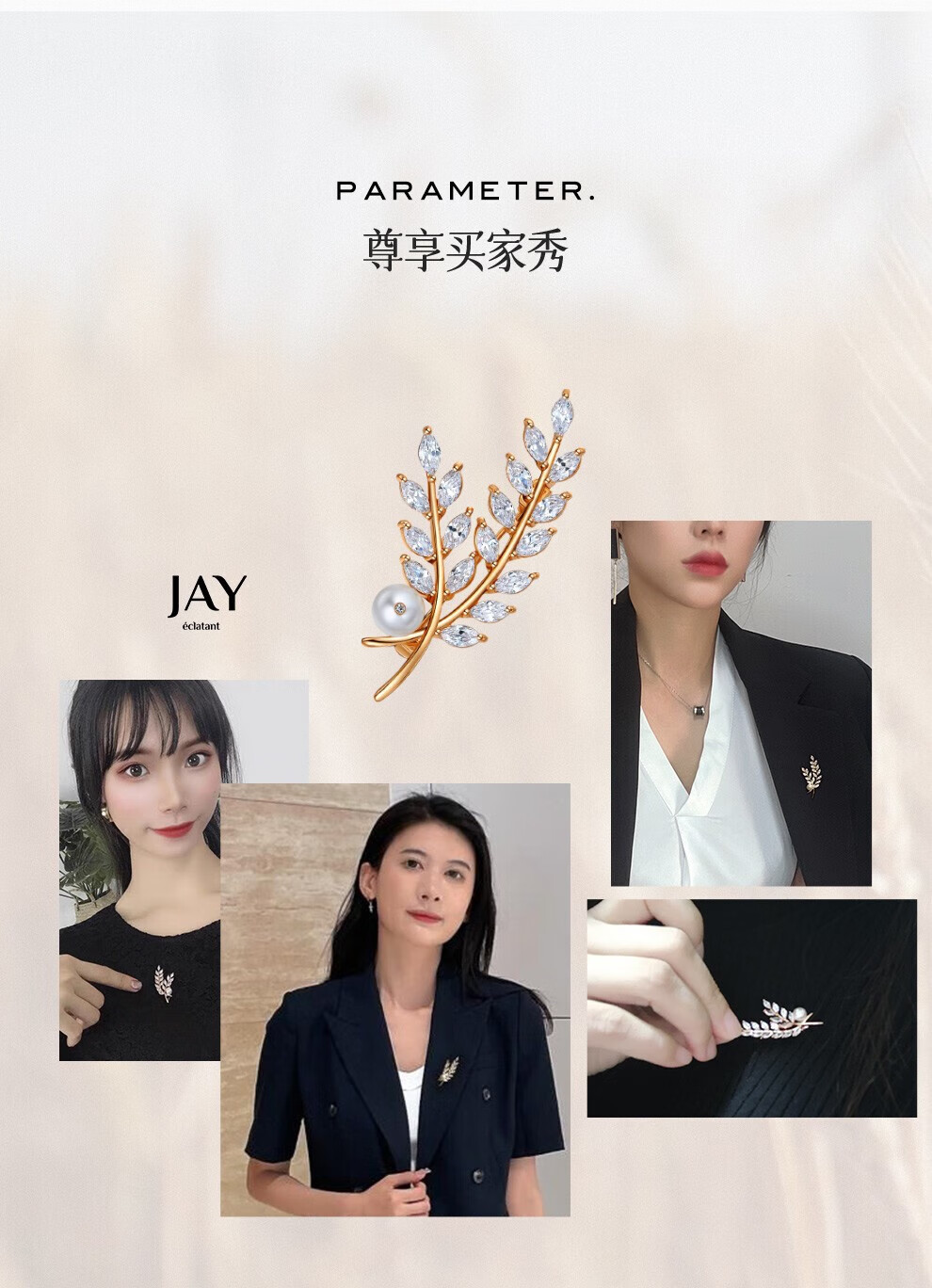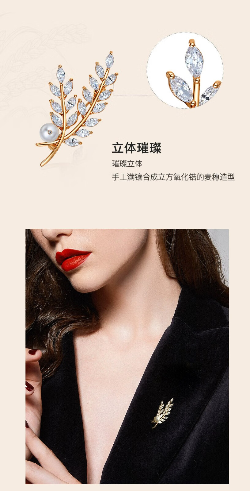 Jay wheat ear brooch, high-end female corsage, suit accessories, birthday gift for mother-in-law, elders, camellia gift box, small brooch (Merchant Warehouse)