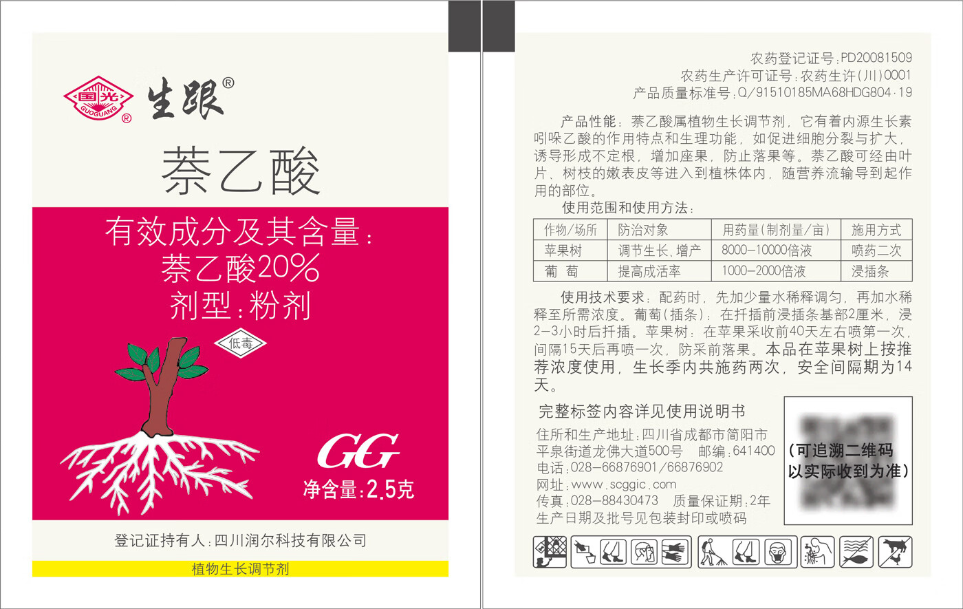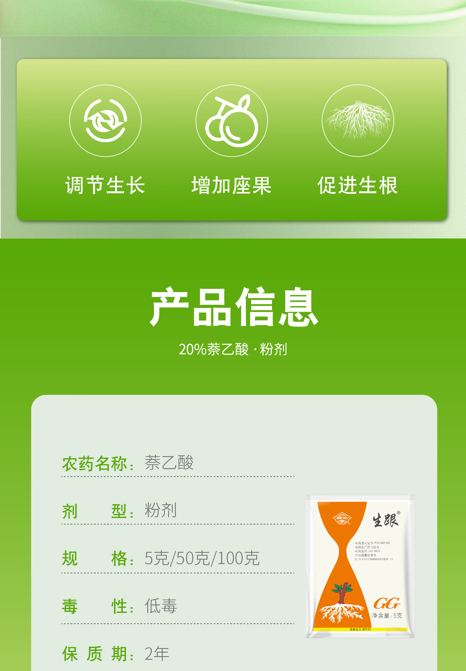 Guoguang Rooting Powder Raw and 20% Naphthalene Acetic Acid NAA Rooting Agent Soaking Cuttings to Improve Survival Rate and Promote Roots Genuine 2.5g*1 Bag