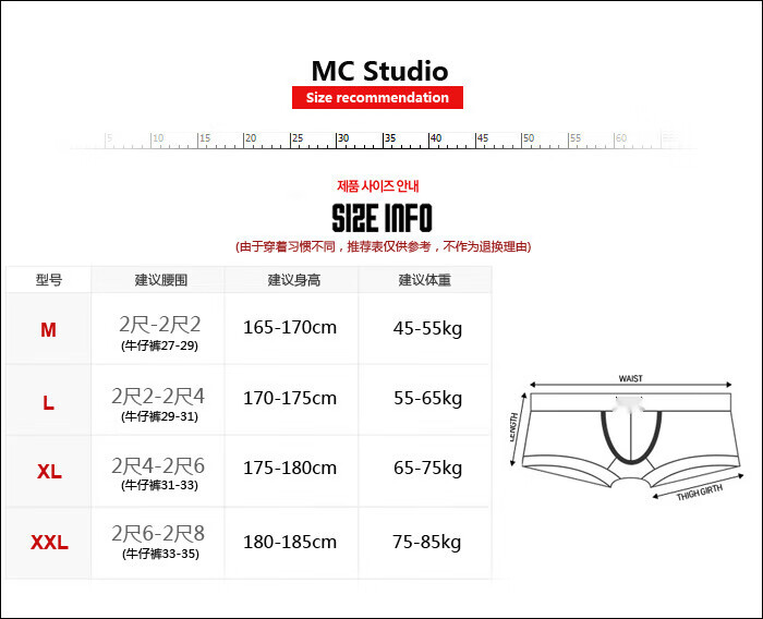 China (cm) 165 / 88-90 170 / 96-98 175 / 108-110 180 / 118-122 185 / 126-130