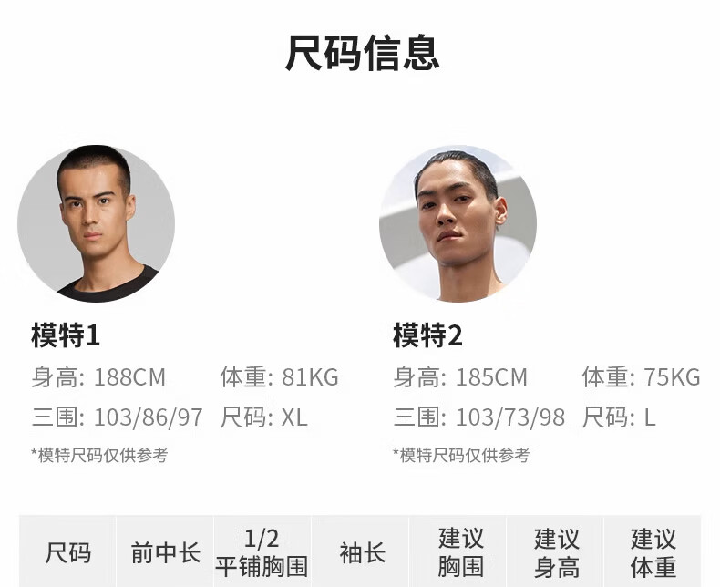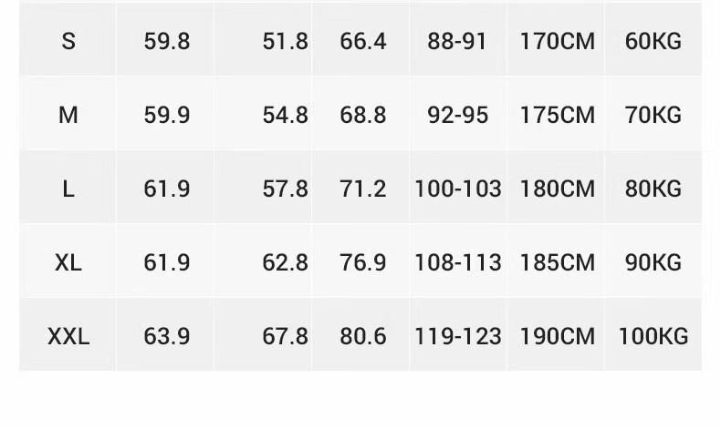 China (cm) 165 / 88-90 170 / 96-98 175 / 108-110 180 / 118-122 185 / 126-130