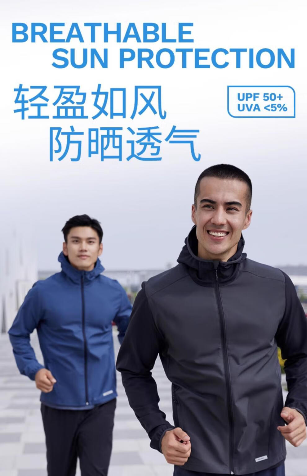 Decathlon (DECATHLON) Sun Protection Clothing Men's Sports Jacket Windproof Outdoor Windbreaker Cycling Suit Sun Protection Running Jacket Lightweight Official Flagship Meteorite Black - Sun Protection UPF50+ S