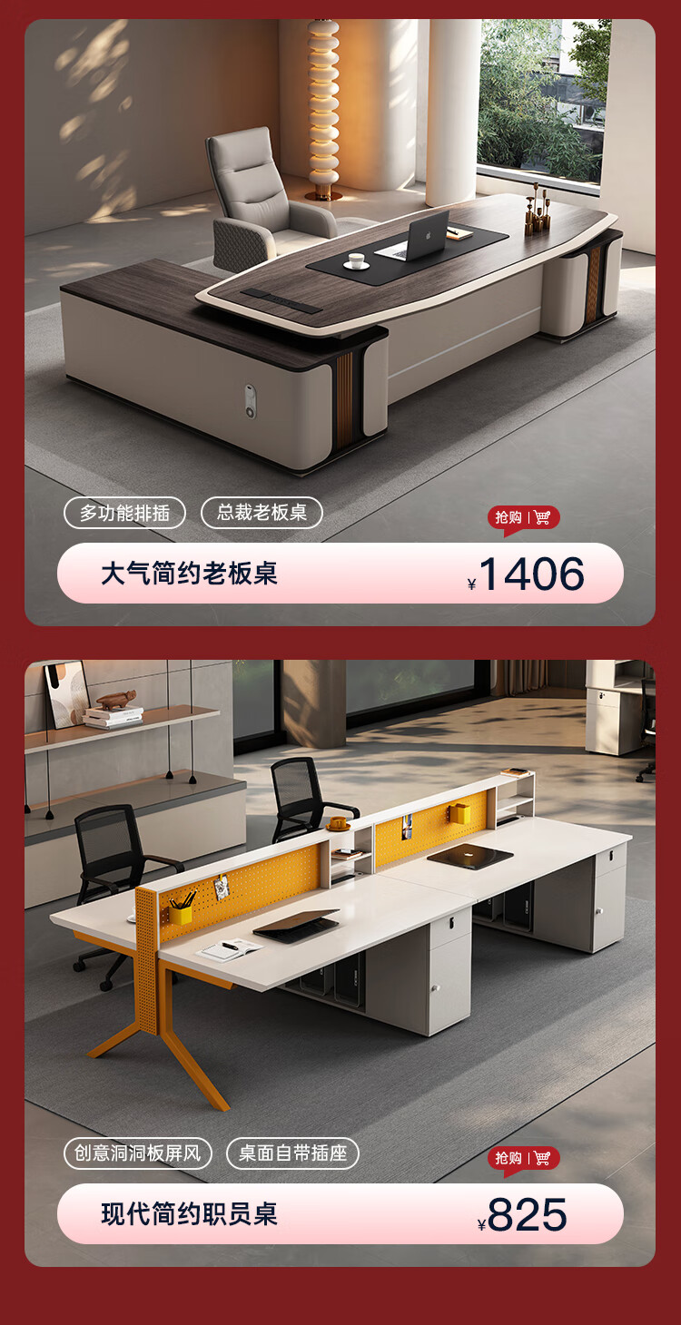 OUDITU Desk Boss Desk and Chair Combination Simple Modern Office Desk Chairman Single Desk Manager President Executive Desk South American Cherry Free Invoicing 2.0 Meter Boss Desk Support Corporate