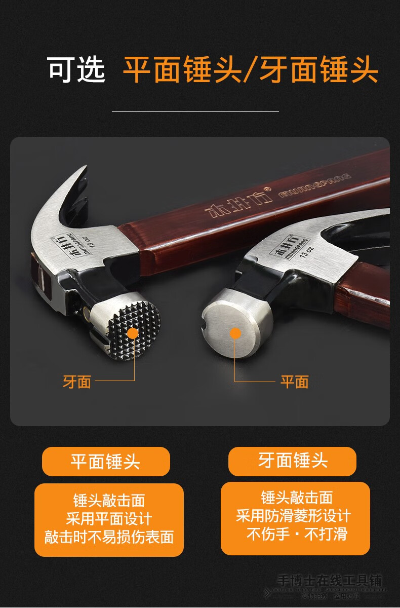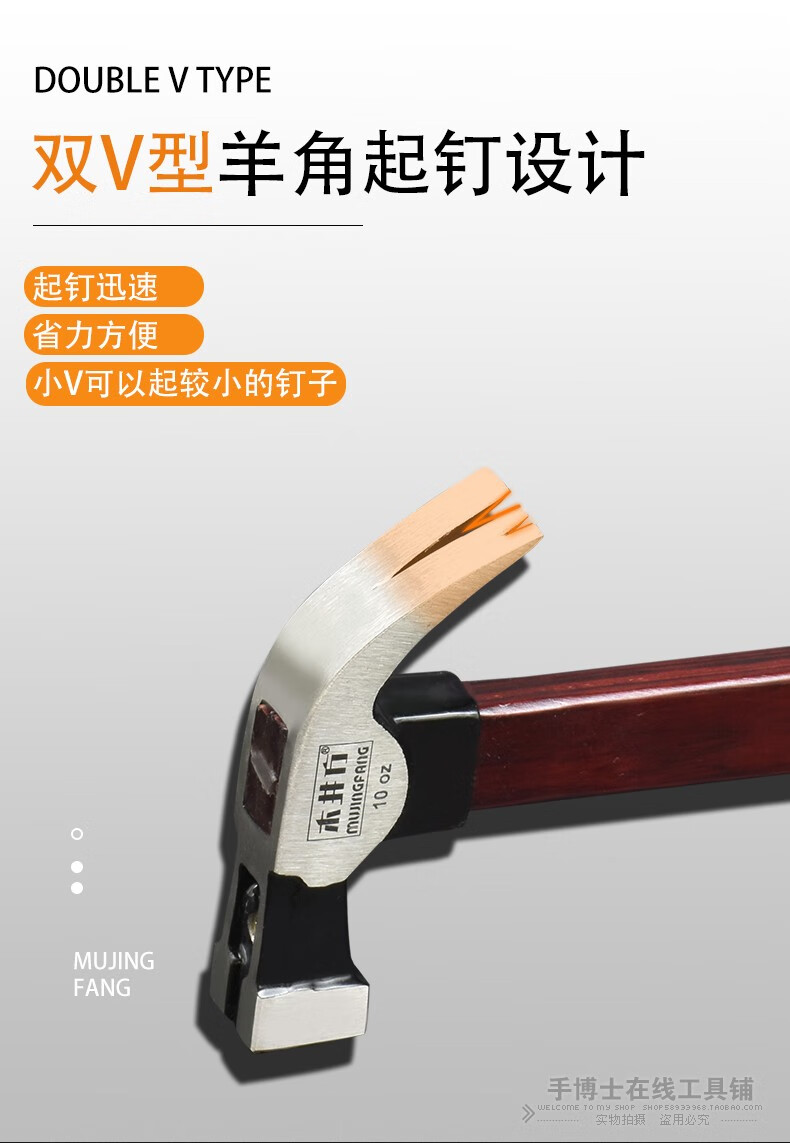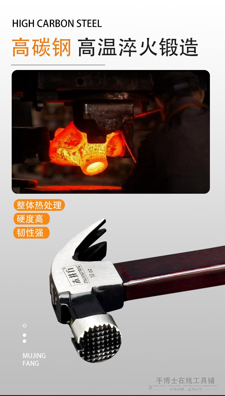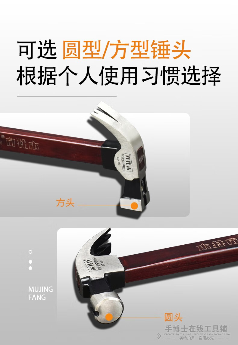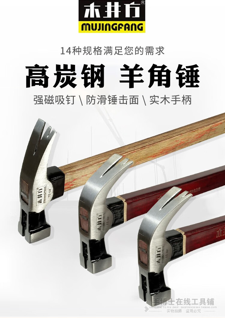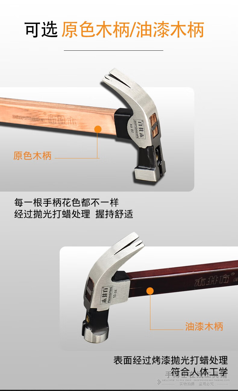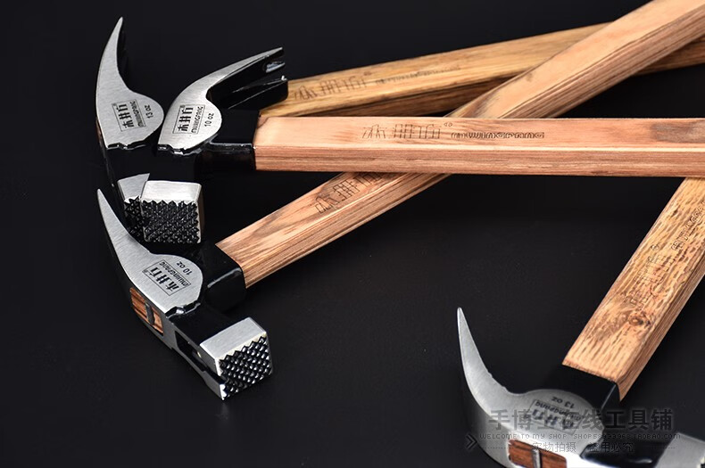 Wood well square claw hammer high carbon steel wooden handle woodworking hammer tool with magnet double fork nail hammer iron hammer round head flat plywood handle 8-OZ.1