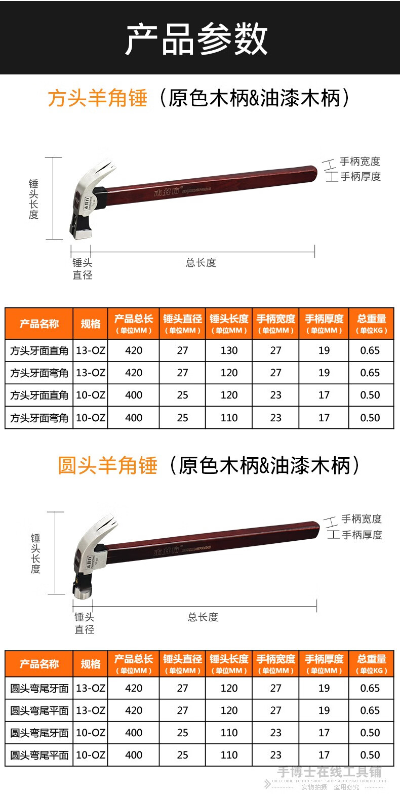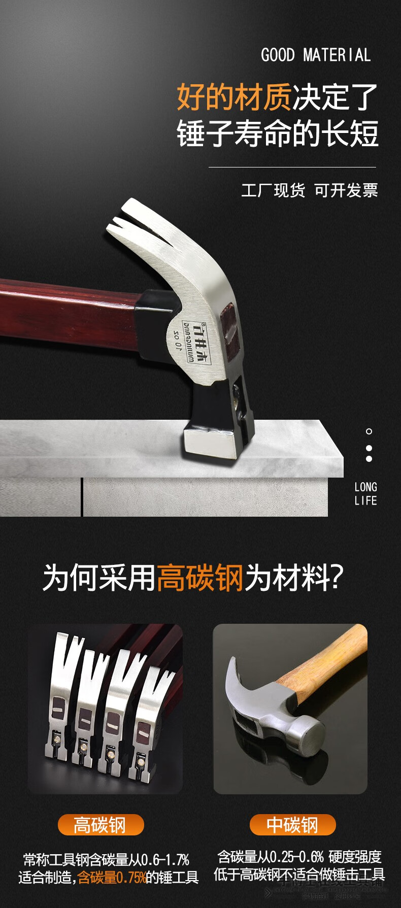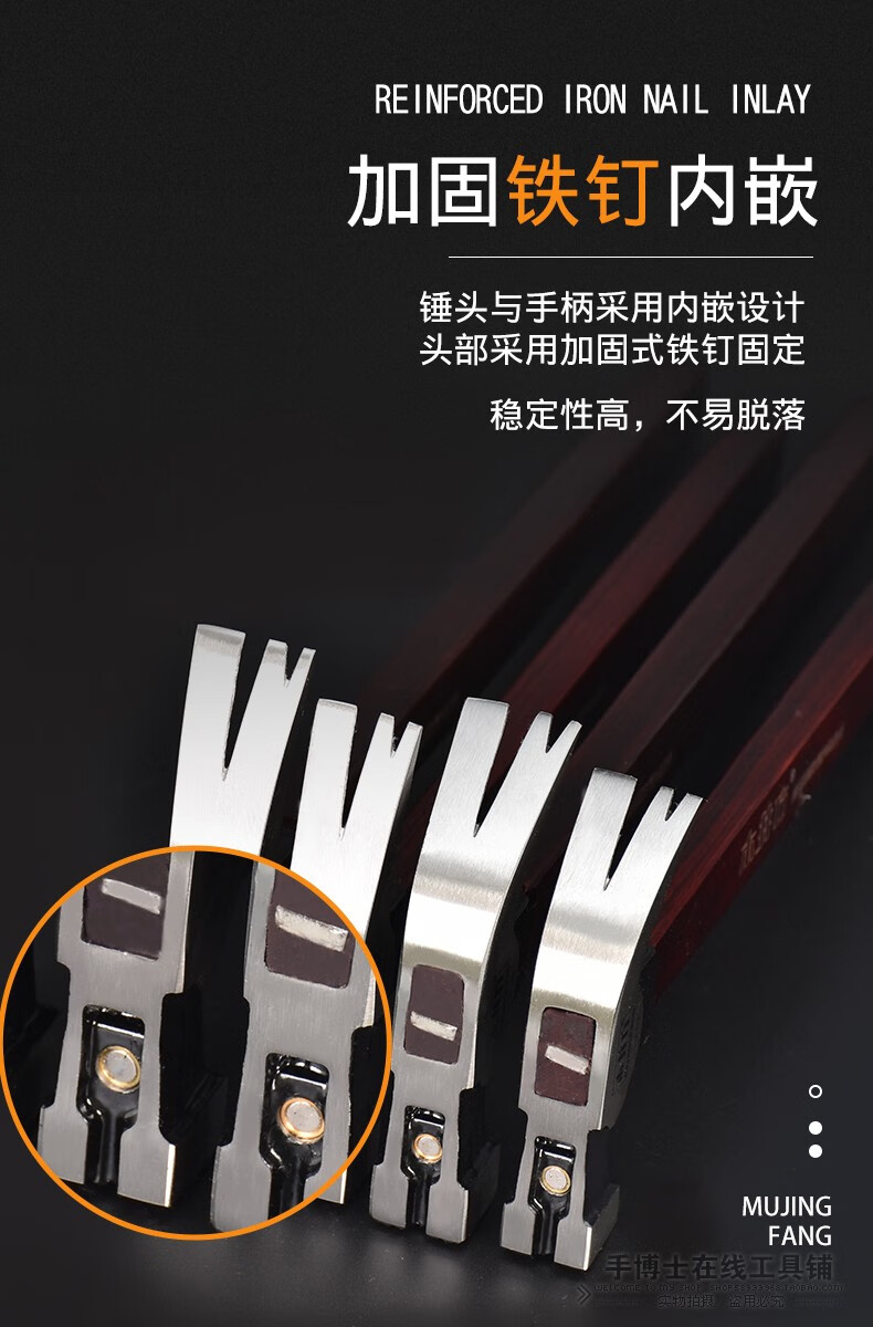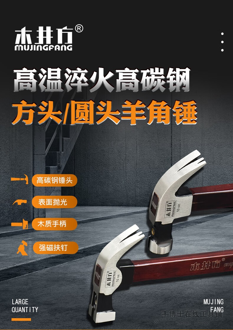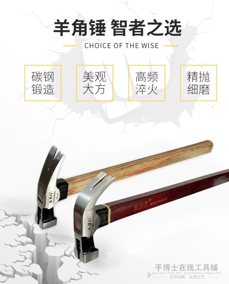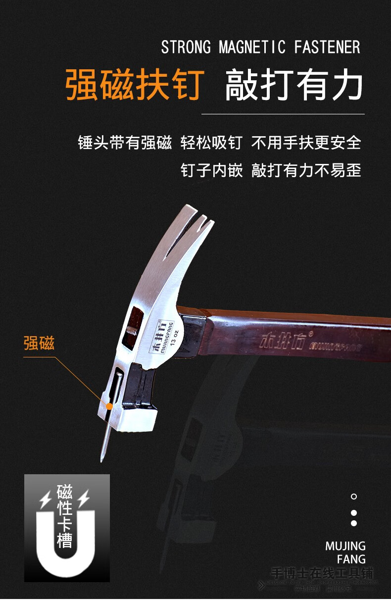 Wood well square claw hammer high carbon steel wooden handle woodworking hammer tool with magnet double fork nail hammer iron hammer round head flat plywood handle 8-OZ.1