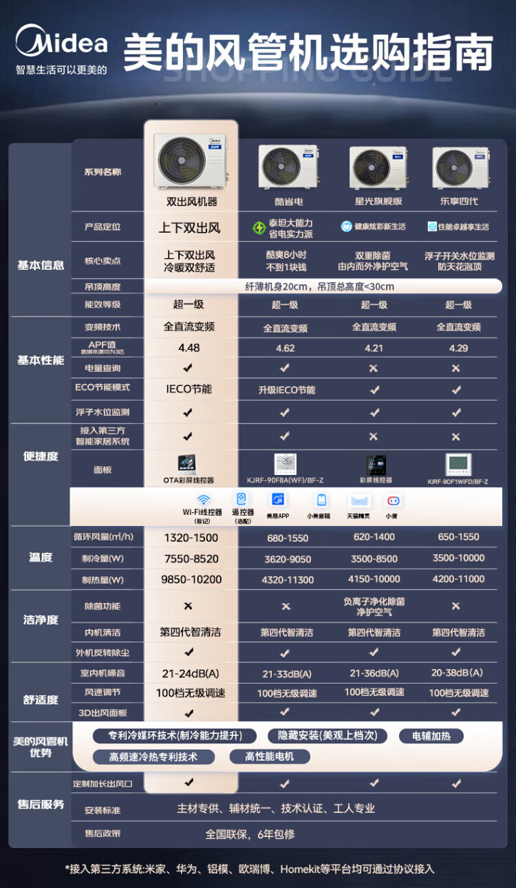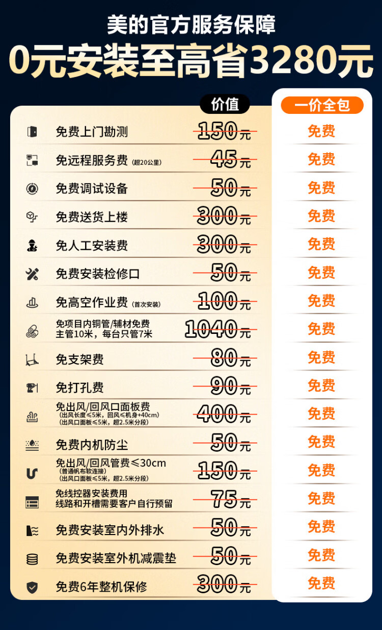 Midea central air conditioning duct machine large 3 HP one-to-one inverter air conditioner household embedded living room heating and cooling household commercial DC inverter air conditioner 4 HP first-class energy efficiency cool power saving all-inclusive