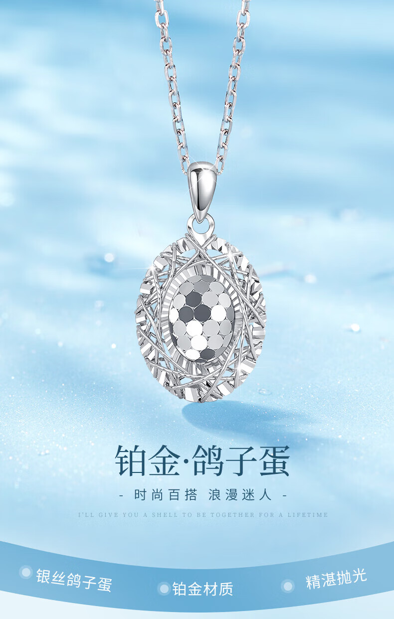 CHINA GOLD Crushed Ice Platinum Necklace Female Transfer Pigeon Egg Pendant Birthday Gift for Girlfriend and Wife Wedding Anniversary Pigeon Egg Platinum Necklace + Certificate Gift Box