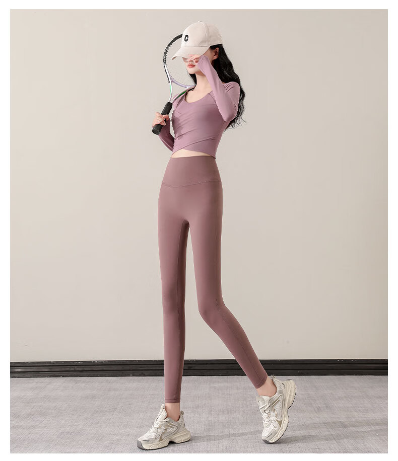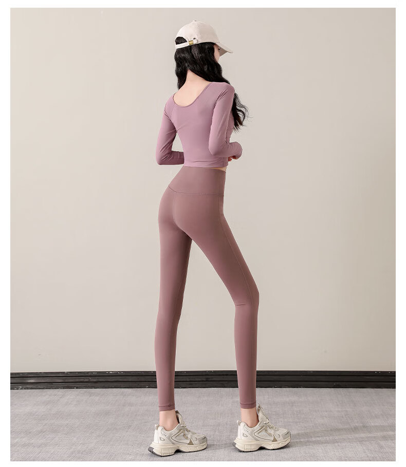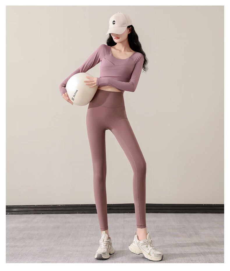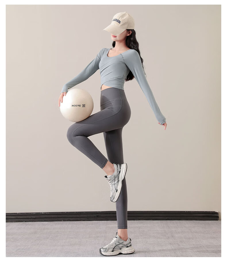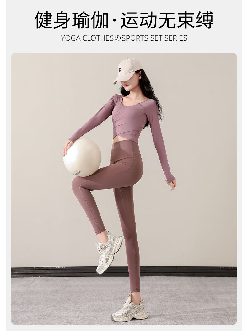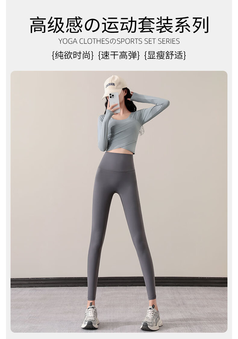 Aimengniao Yoga Suit Women's 2025 New Sports Exercise Pilates Sports Long Sleeve Top Gym Body Pants Two-piece Set Fog Gray + Sea Rock Gray L