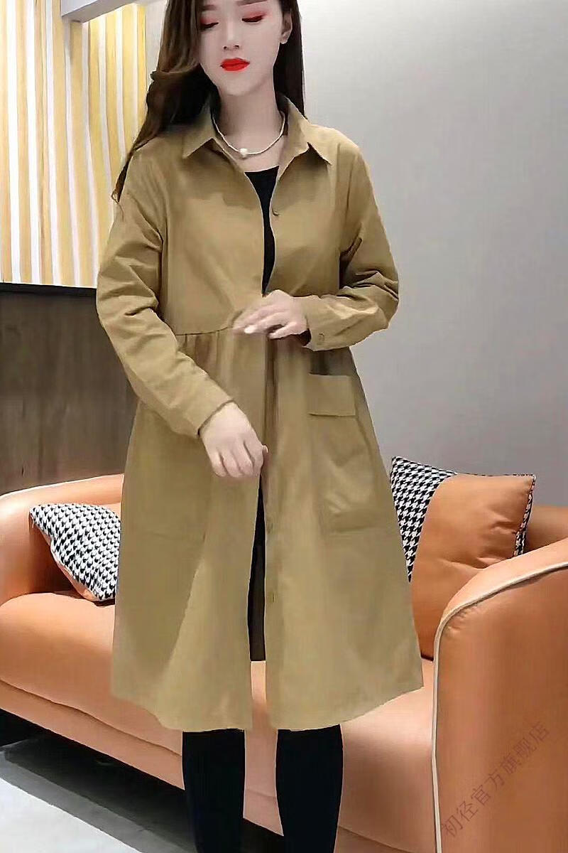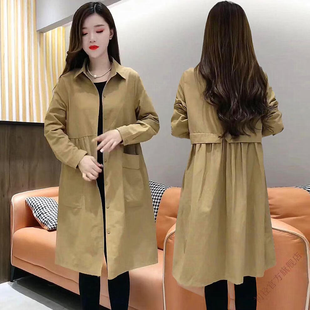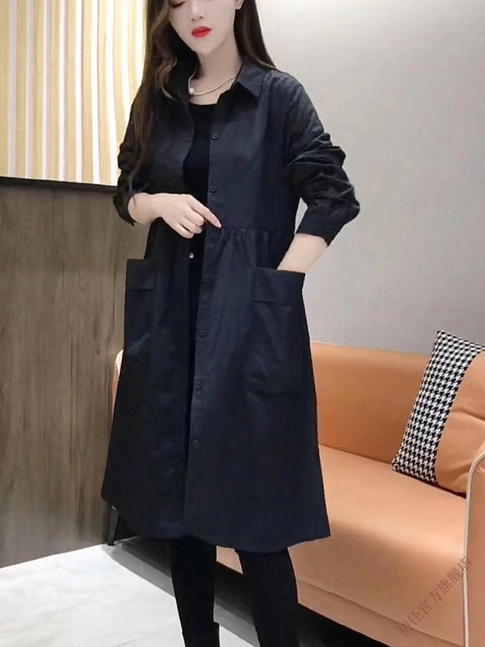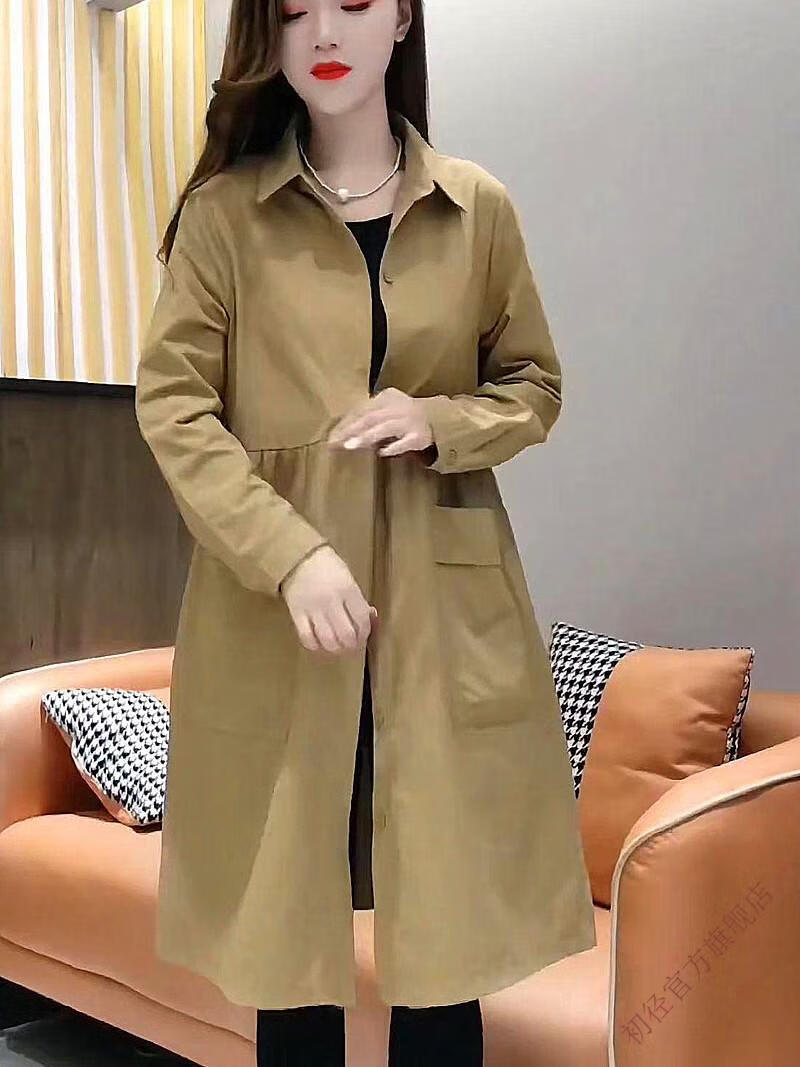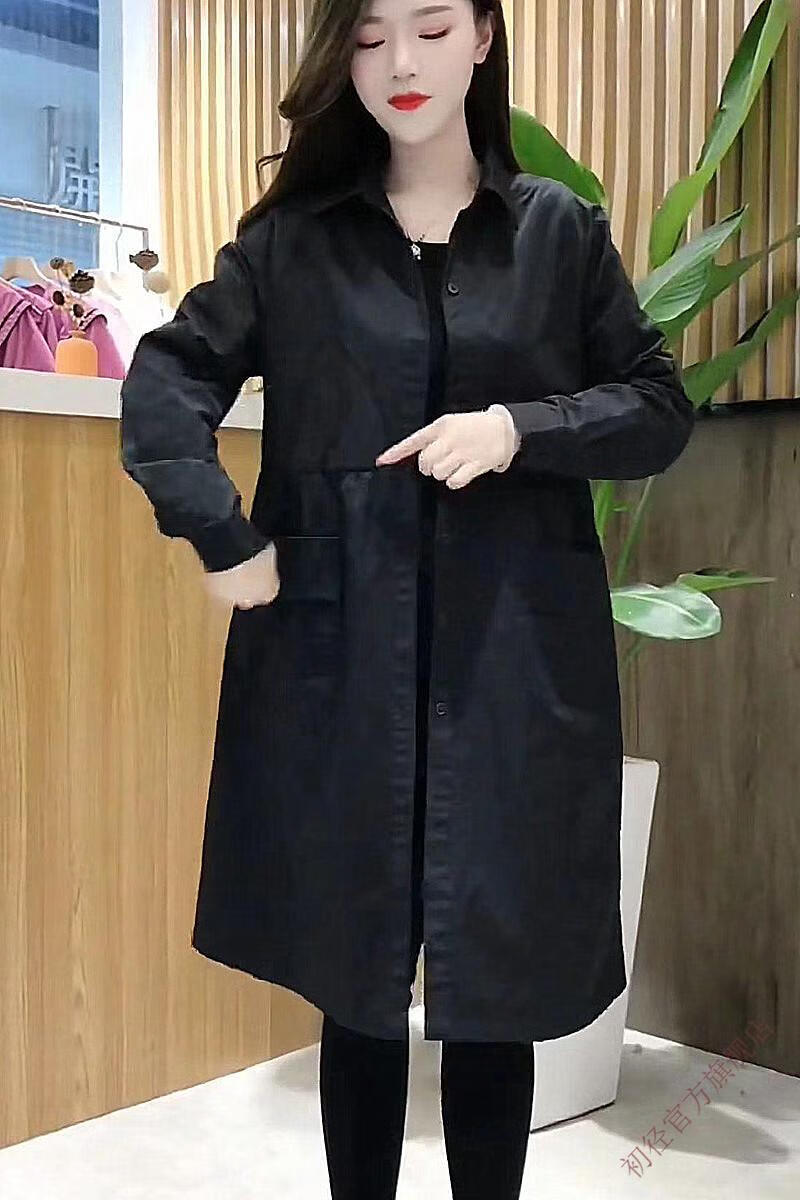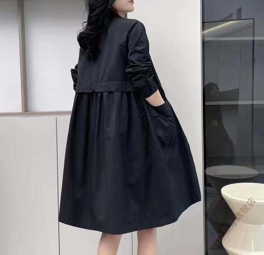 Chujing Casual Temperament Mid-Length Windbreaker Women's 2025 New Korean Style Loose Fashionable Western Style Versatile Thin Jacket + Black + New Spring and Autumn Windbreaker M Recommended Weight 95-120 Jin Jin is equal to 0.5 kg