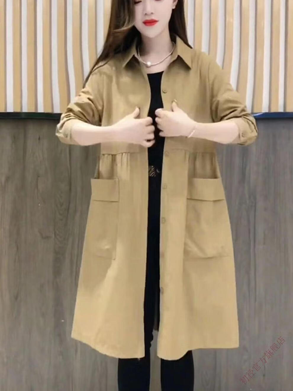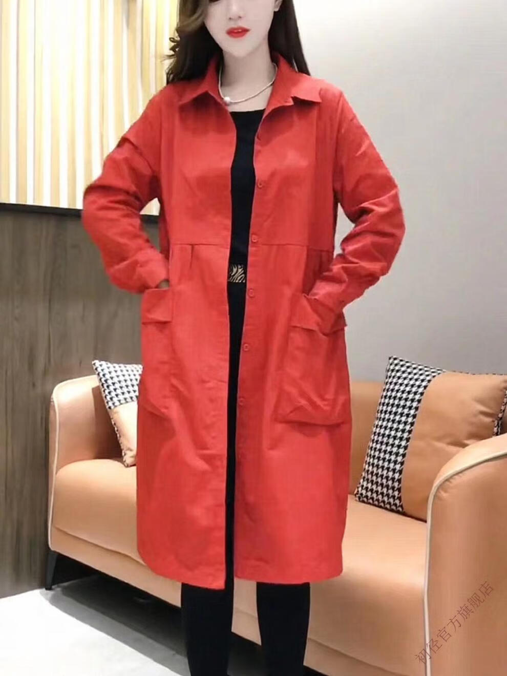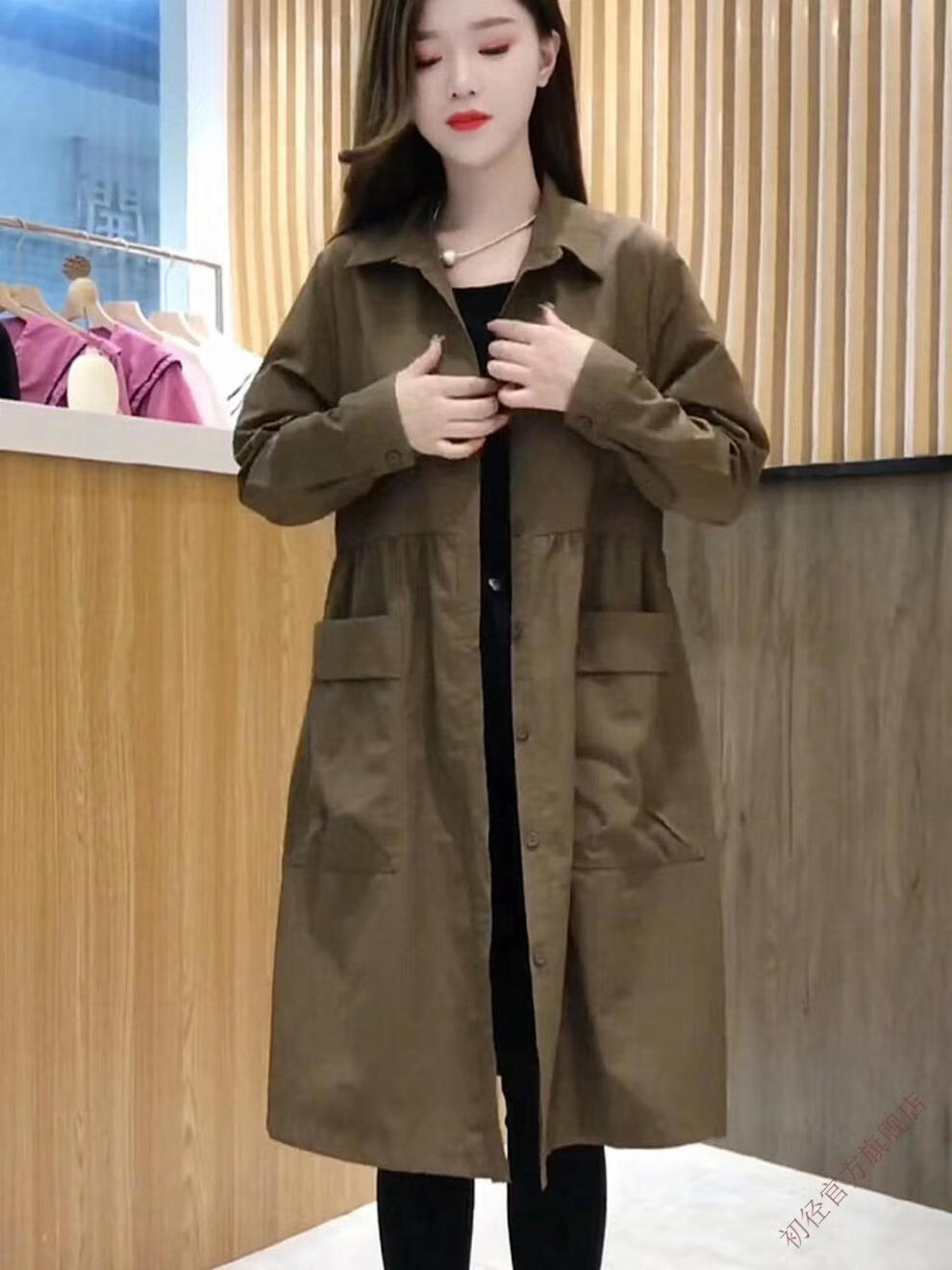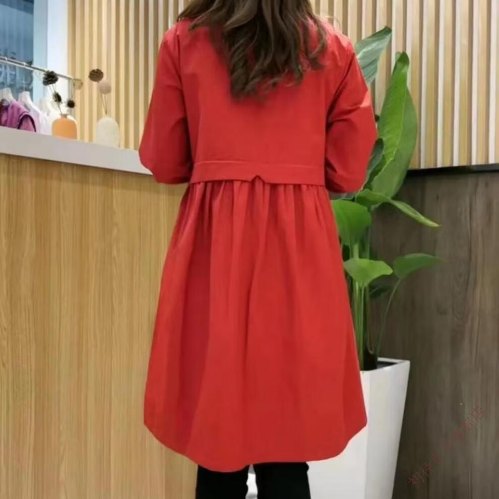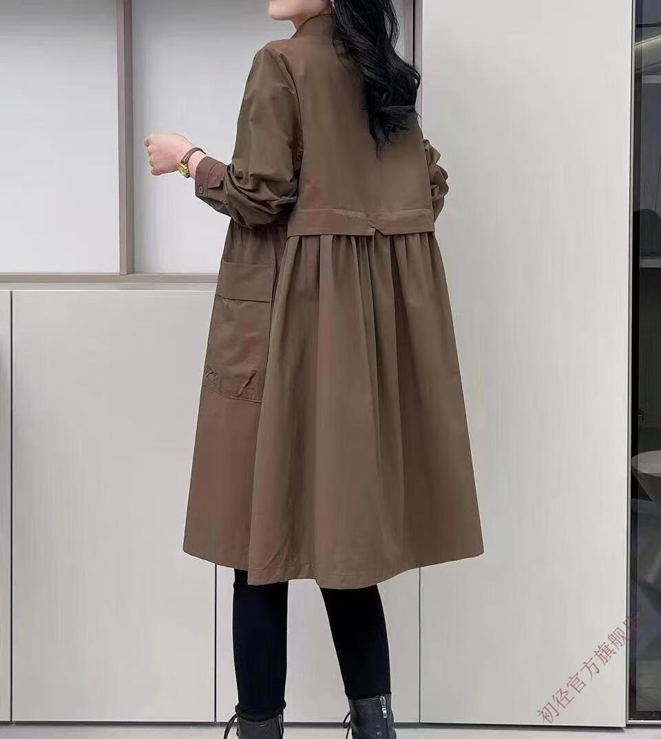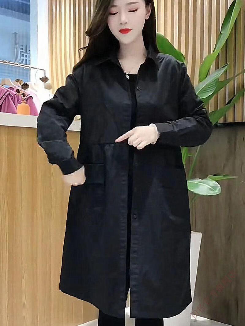 Chujing Casual Temperament Mid-Length Windbreaker Women's 2025 New Korean Style Loose Fashionable Western Style Versatile Thin Jacket + Black + New Spring and Autumn Windbreaker M Recommended Weight 95-120 Jin Jin is equal to 0.5 kg