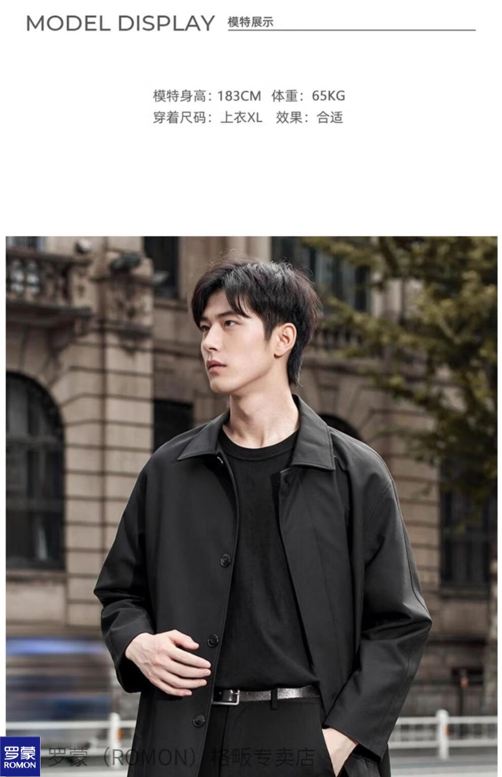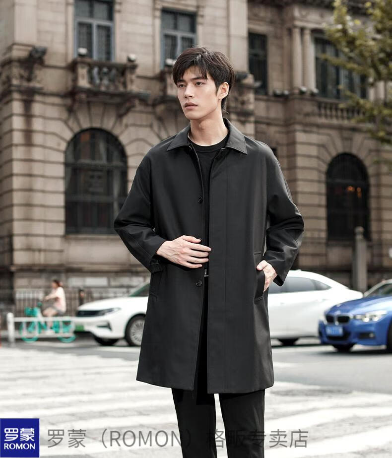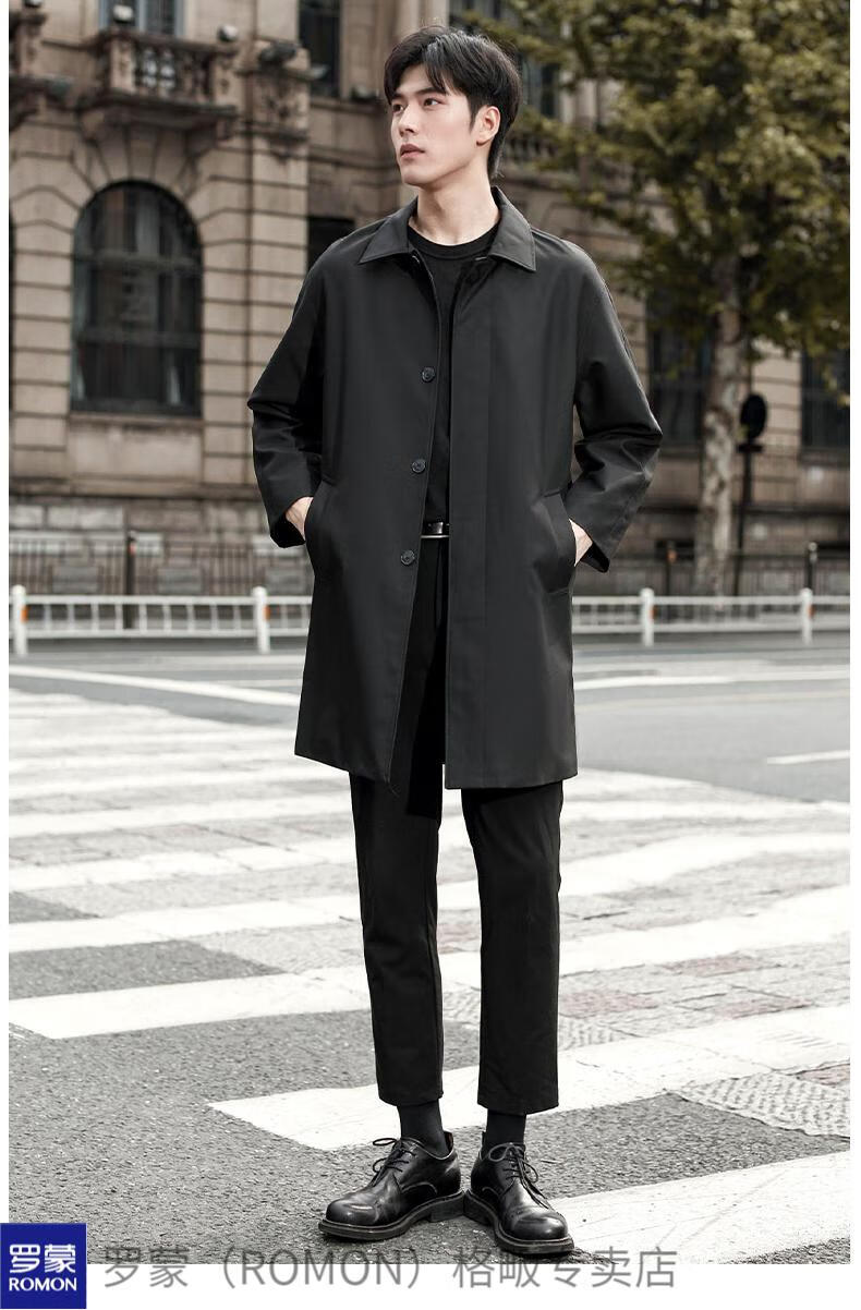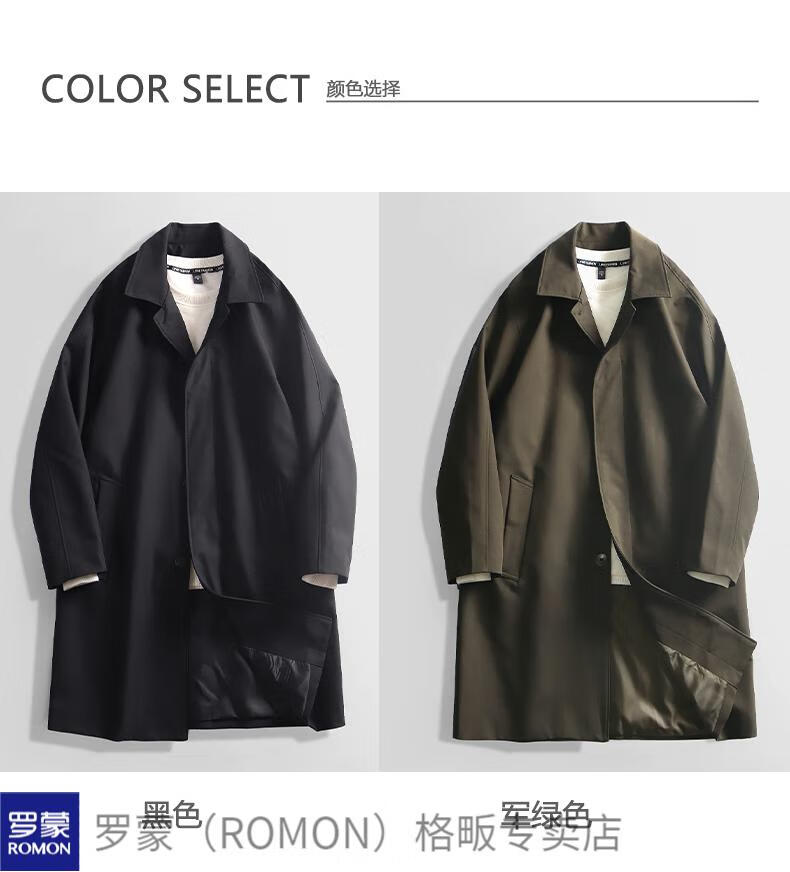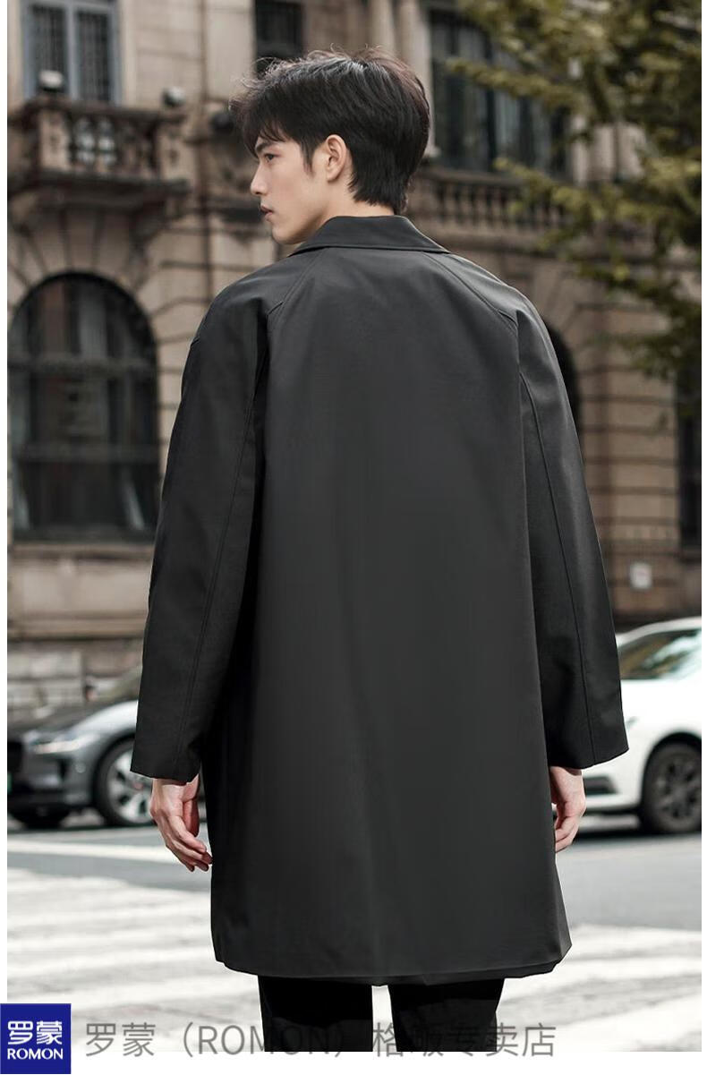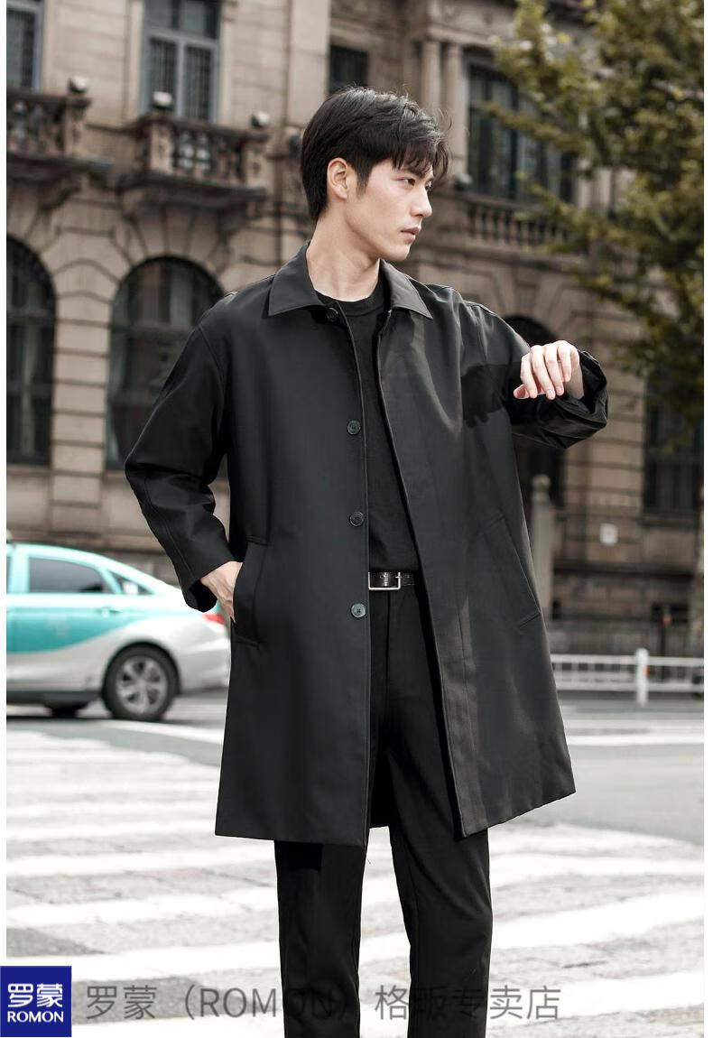 ROMON windbreaker men's mid-length coat 2026 new spring and autumn trendy Korean style loose business casual high-end coat black M loose version