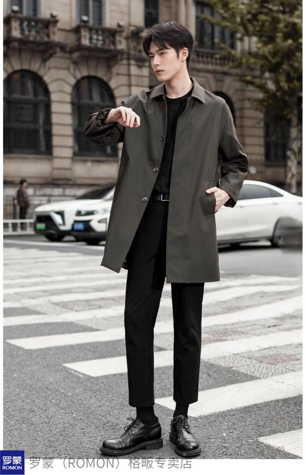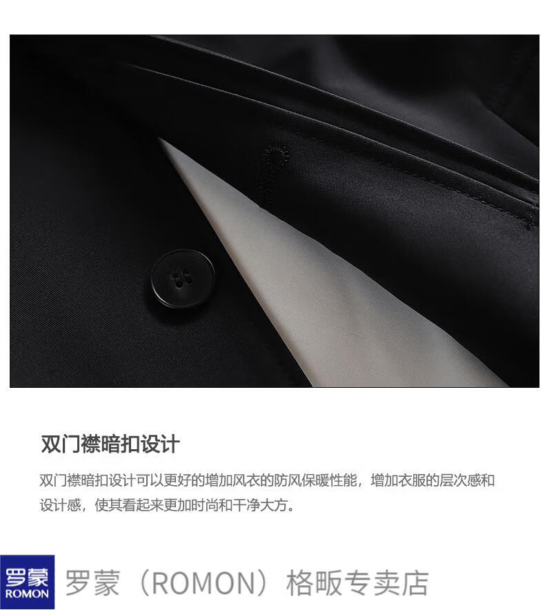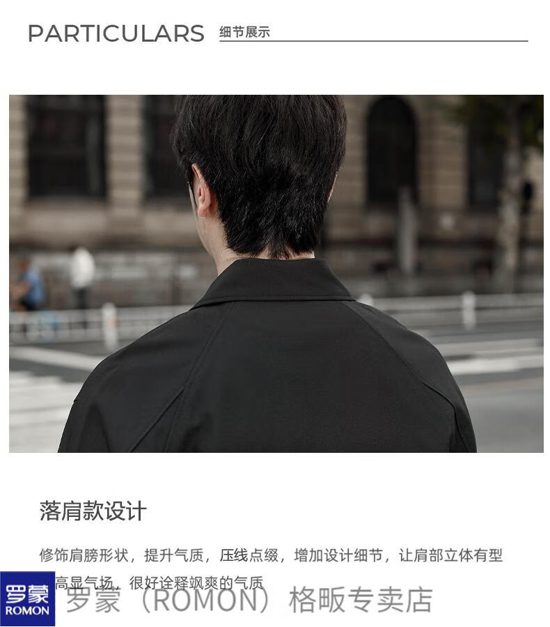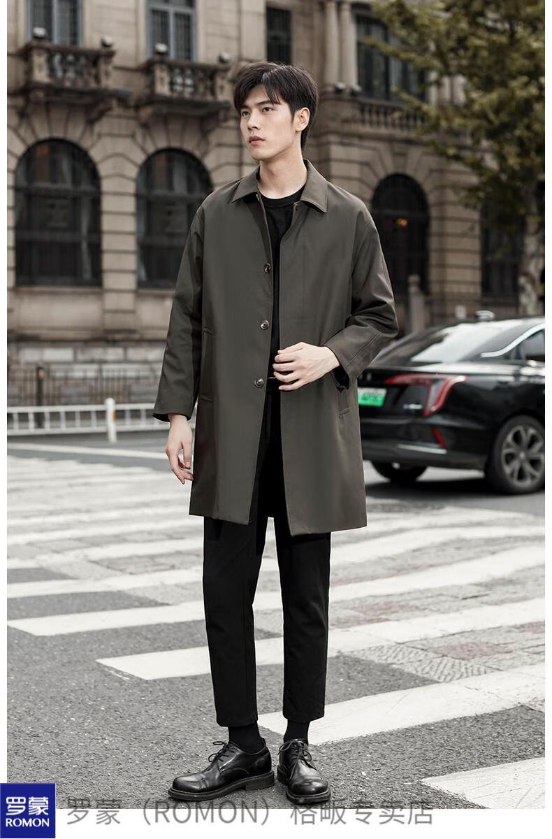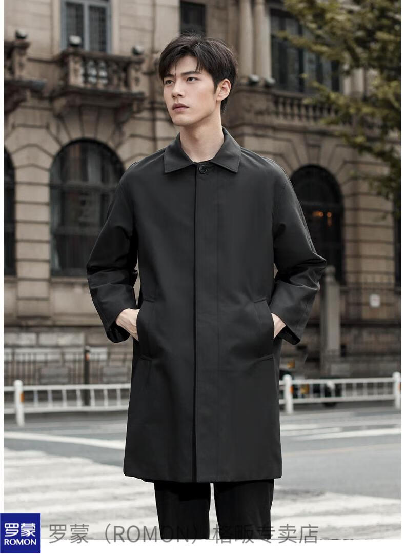 ROMON windbreaker men's mid-length coat 2026 new spring and autumn trendy Korean style loose business casual high-end coat black M loose version