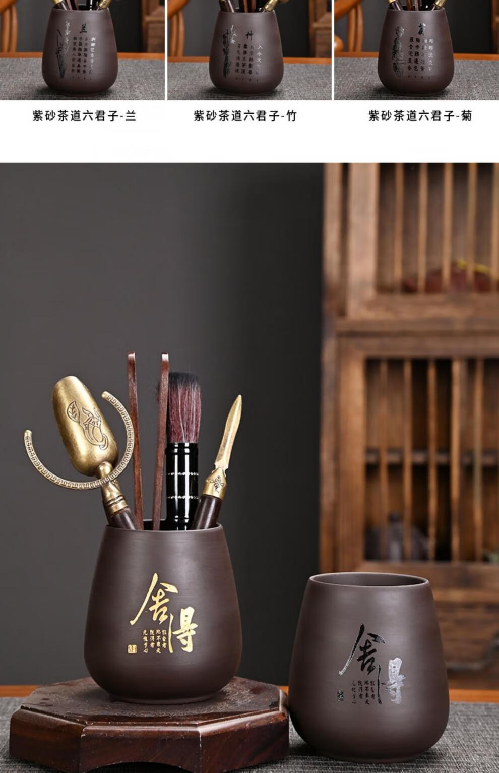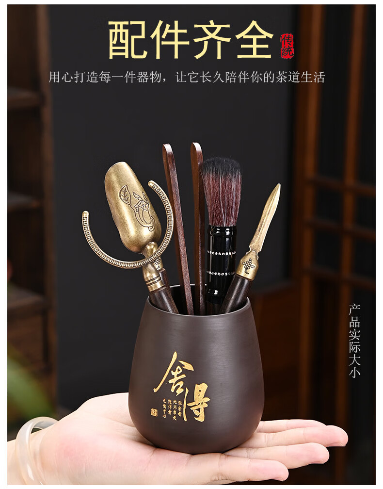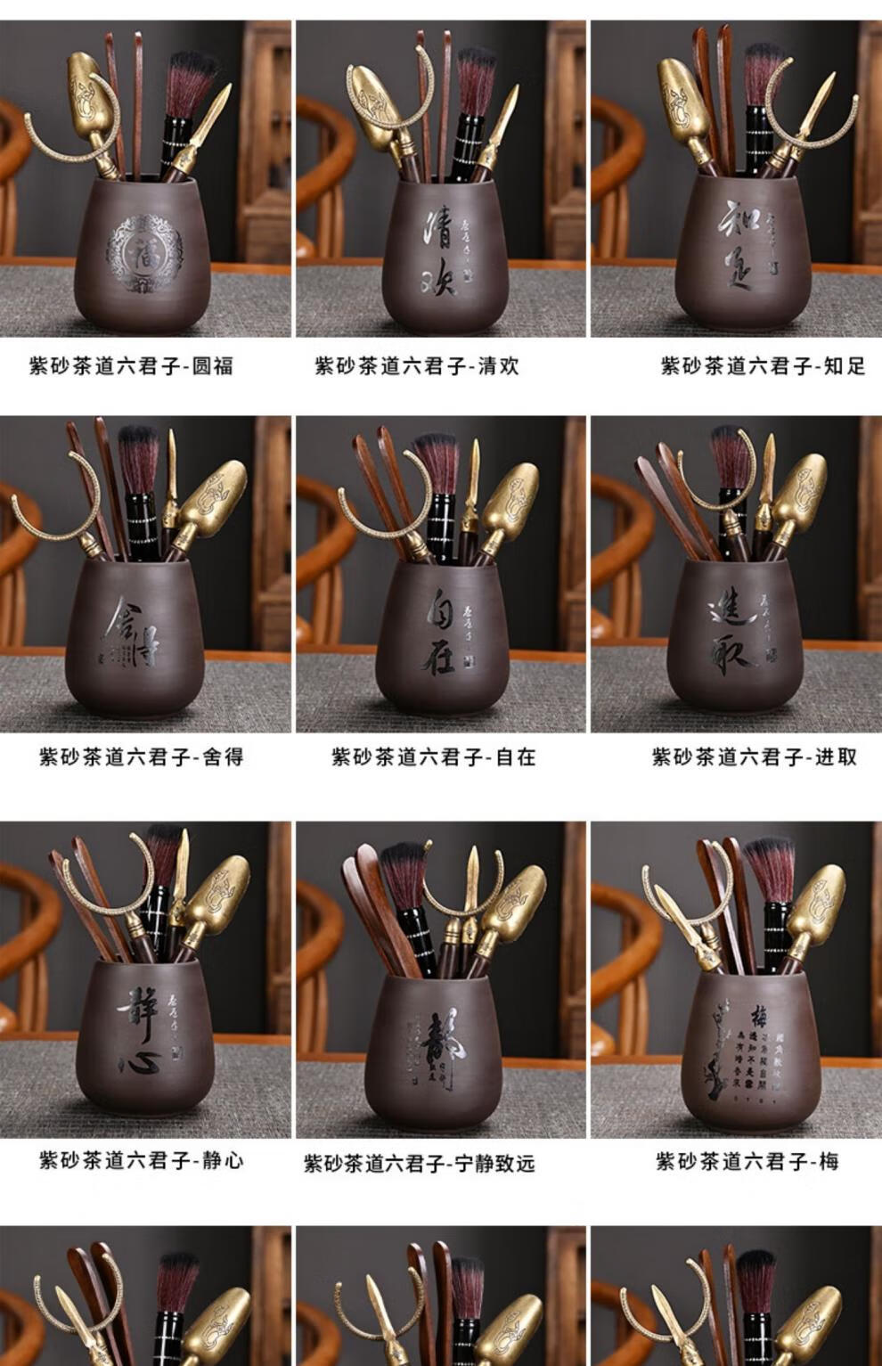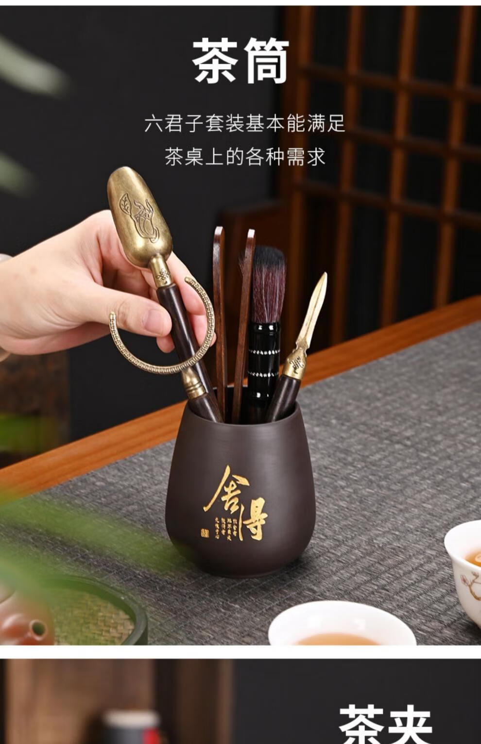 Fat Donglai's same style tea table accessories, tea set accessories, purple sand tea ceremony six gentlemen set storage tea clip, pot pen tea D purple sand tea ceremony six gentlemen - willing - + tea towel + tea