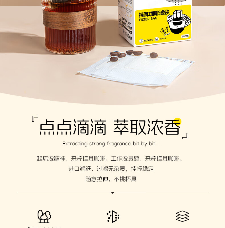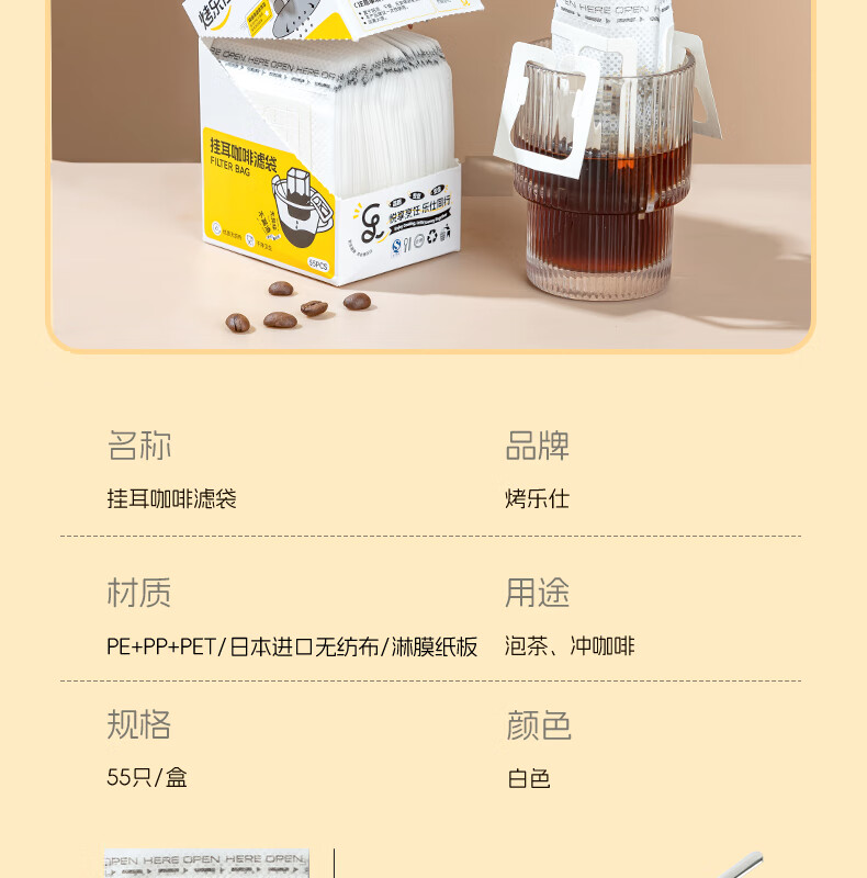 Baked Leshi ear-hanging paper filter coffee filter bag hand-brewed coffee powder filter paper bag hanging ear bag filter disposable coffee filter 55 pieces second generation high-density Japanese imported material
