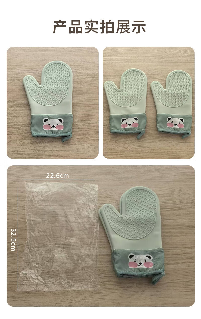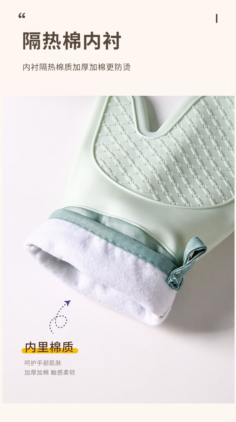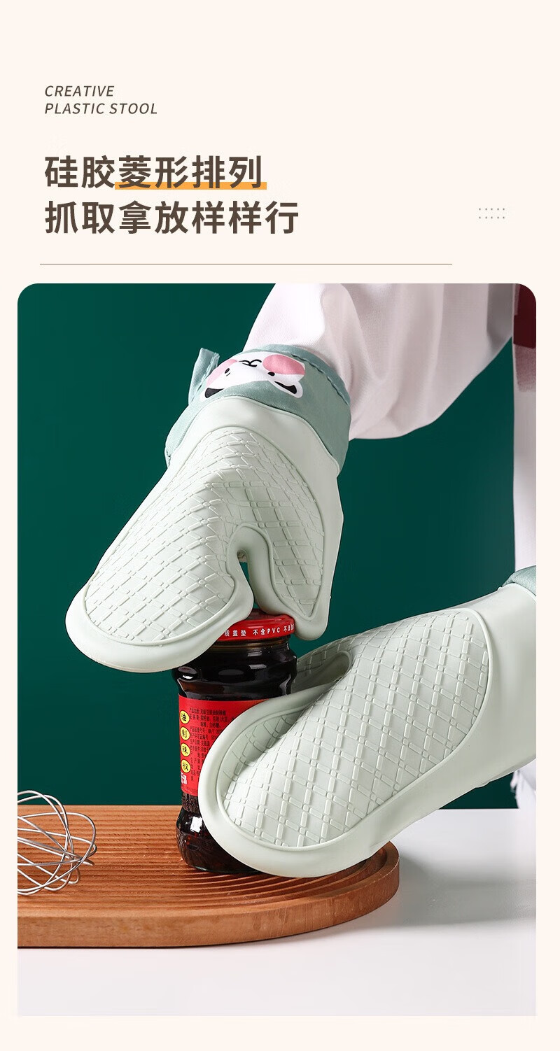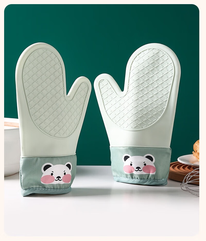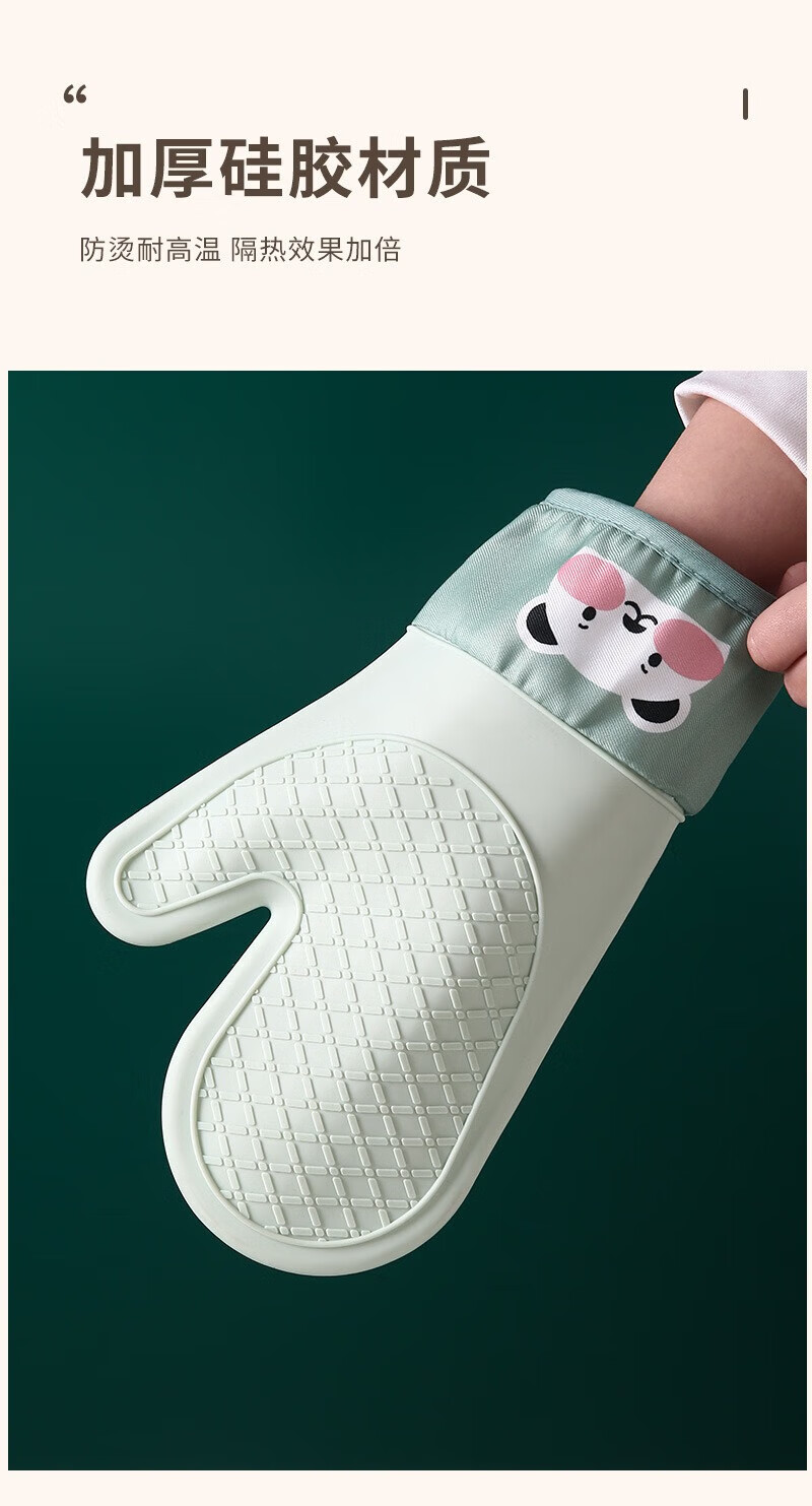 Xiaoqi heat-proof gloves for microwave ovens, high-temperature anti-scalding gloves for kitchen baking, thickened heat-proof gloves, baking anti-scalding gloves, 2 fingers, 1 green