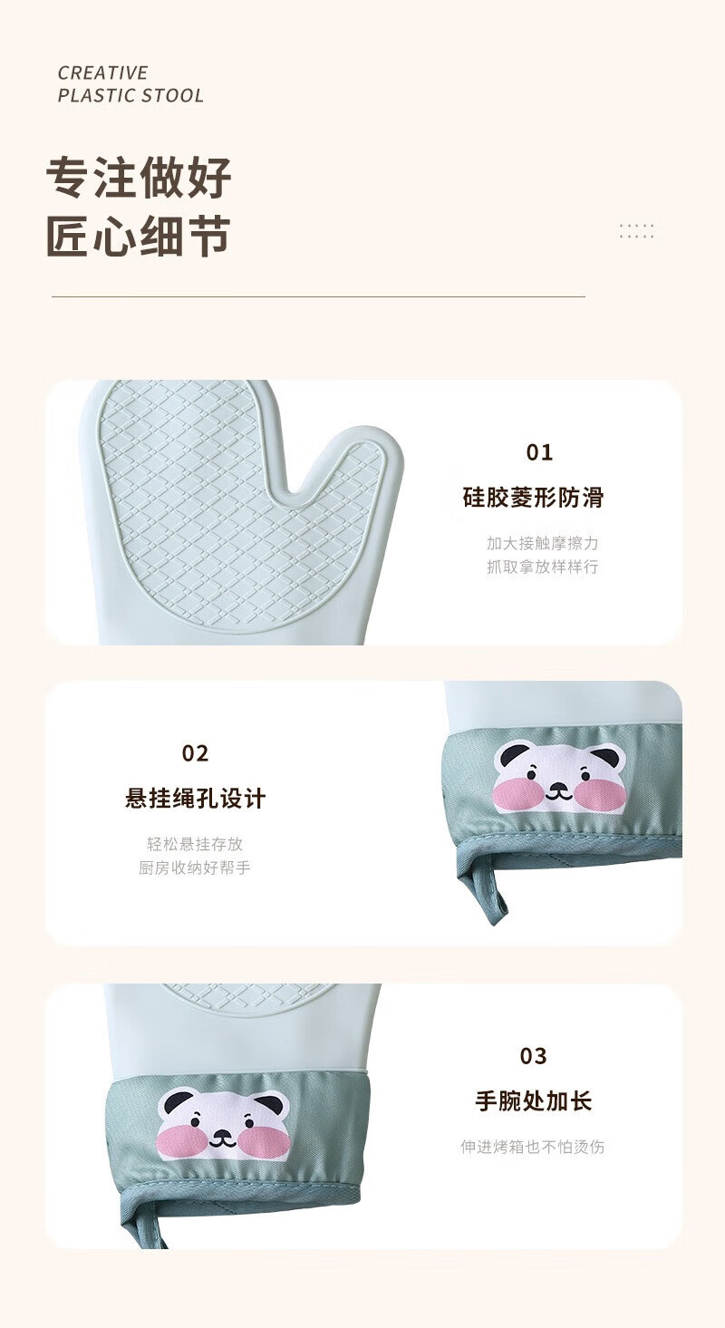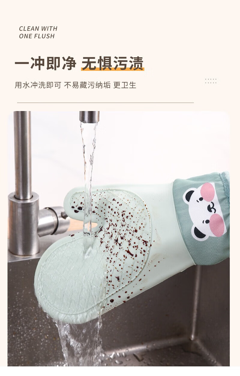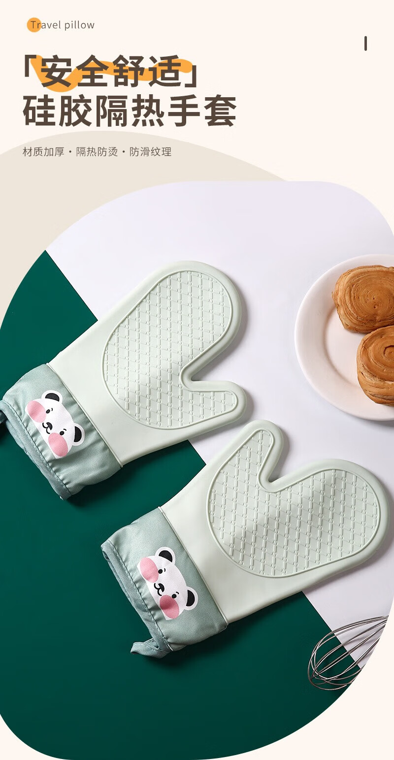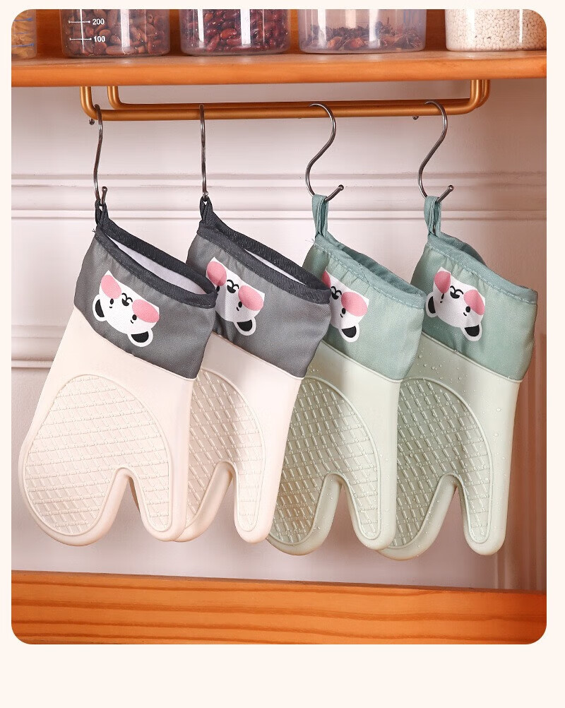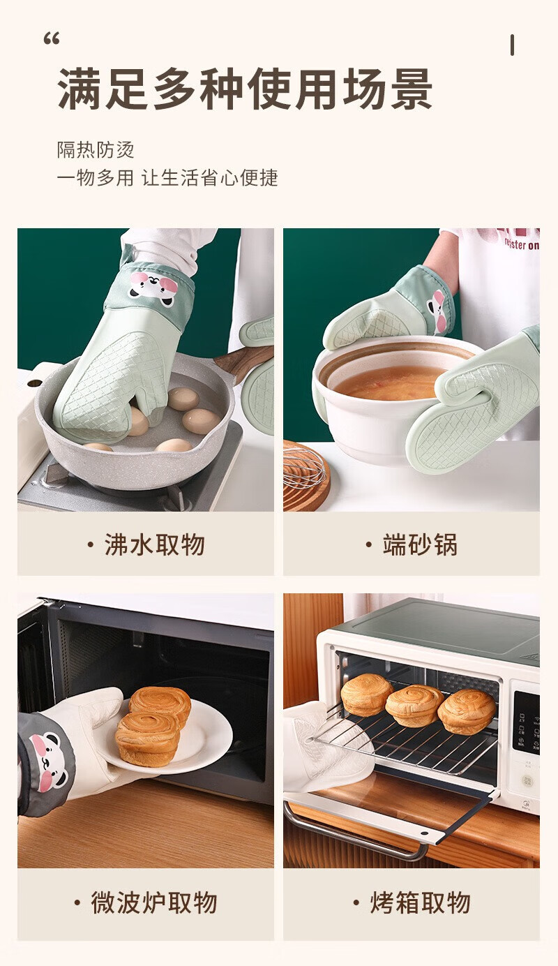 Xiaoqi heat-proof gloves for microwave ovens, high-temperature anti-scalding gloves for kitchen baking, thickened heat-proof gloves, baking anti-scalding gloves, 2 fingers, 1 green
