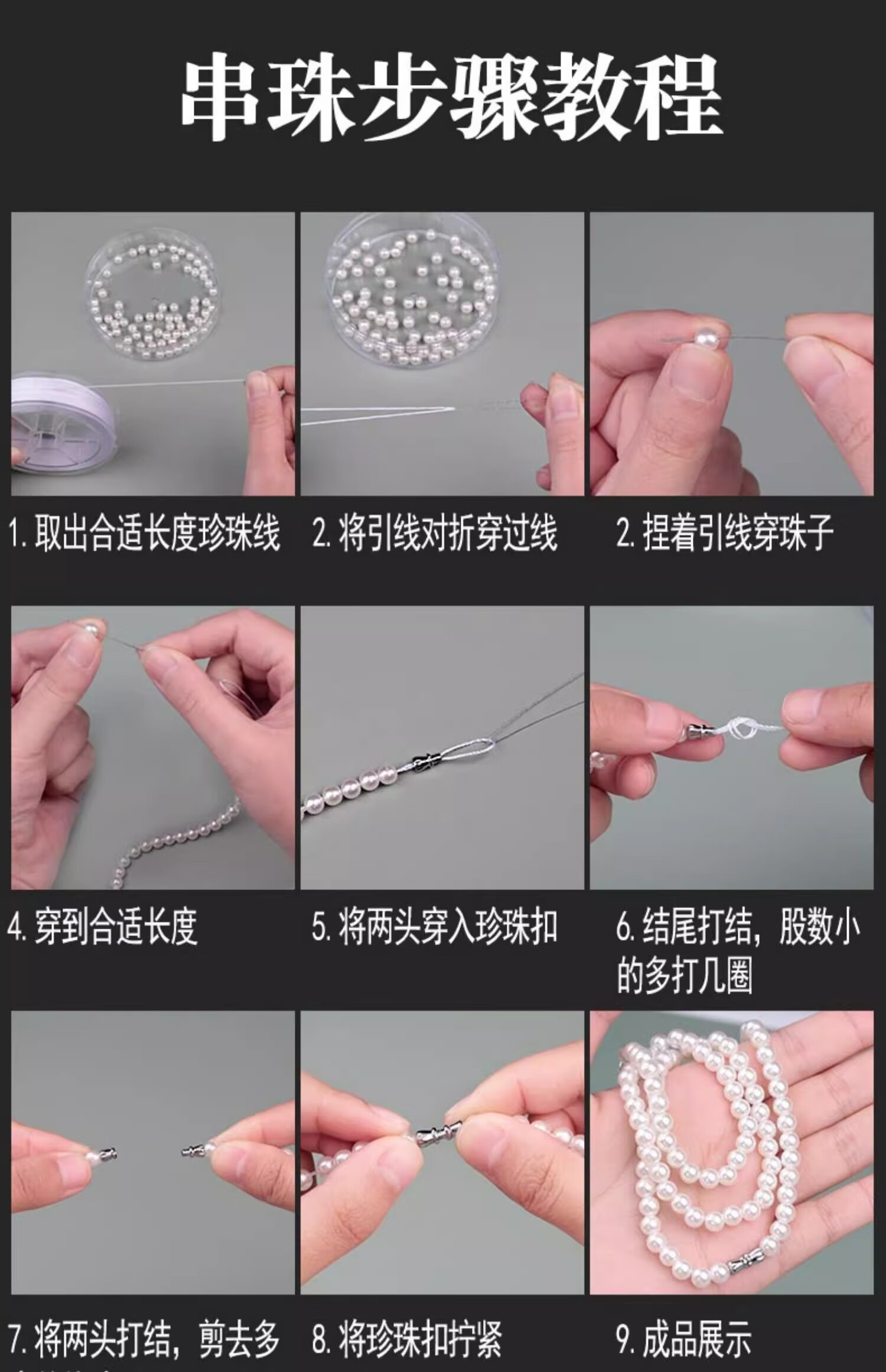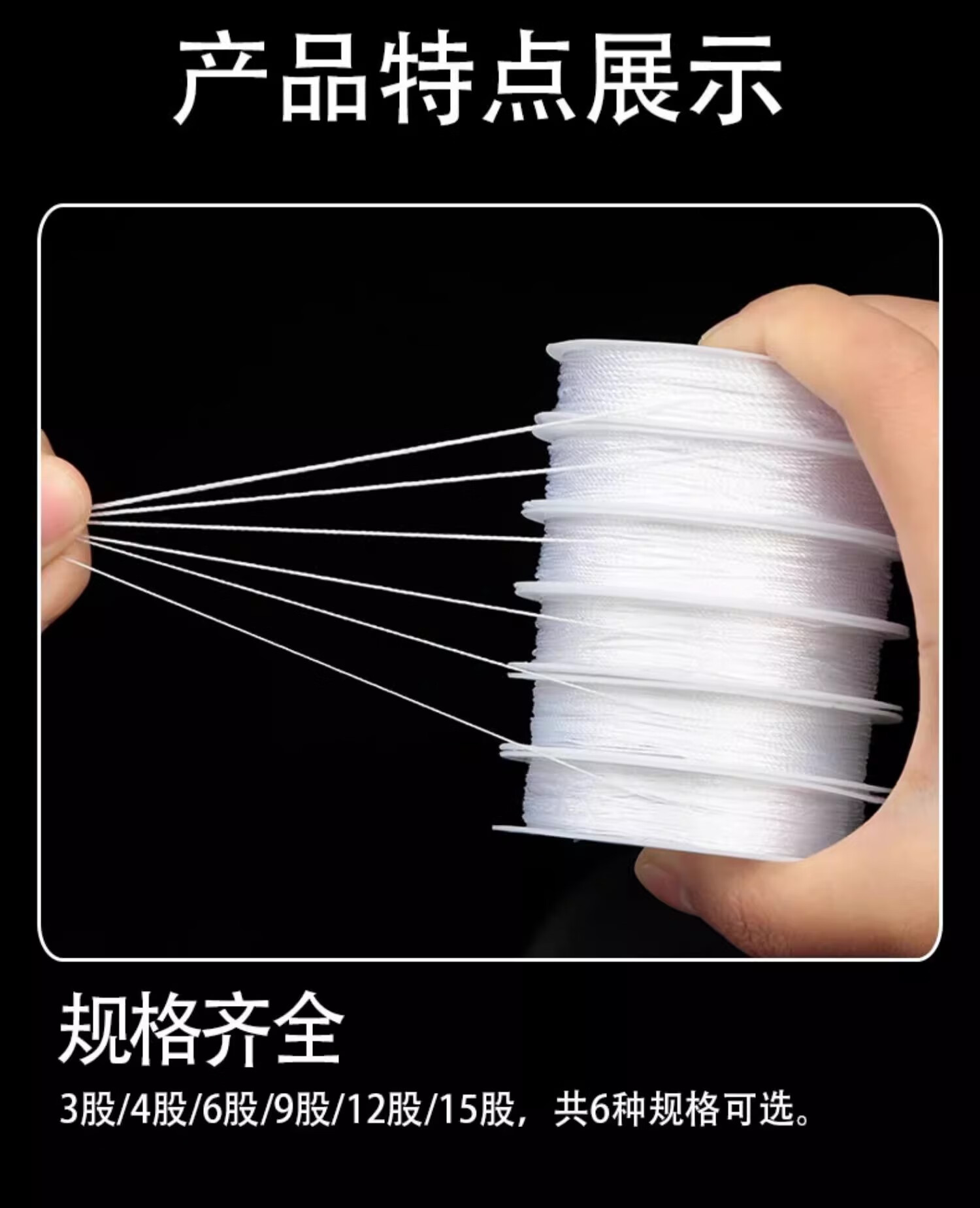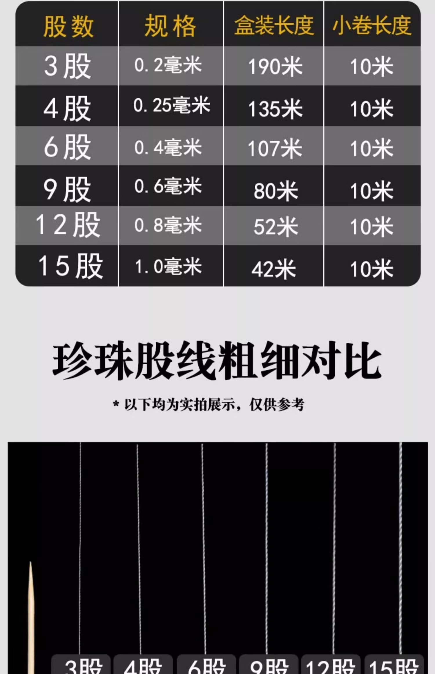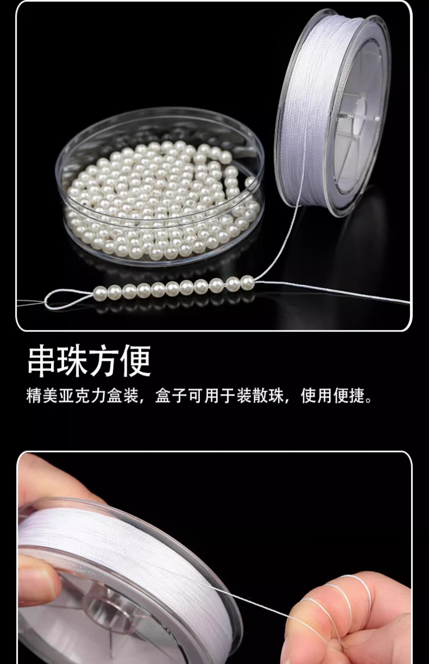 Maimid white strand beaded bracelet rope wear-resistant handmade pearl necklace thread jewelry accessories pearl boxed wire rope 3 strands 0.2mm about 260 meters free pearl buckle + lead