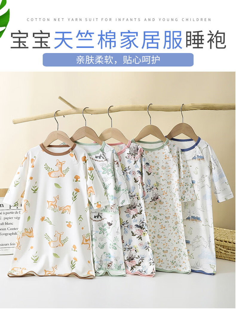 Children's nightgown, one-piece nightgown, air-conditioned clothes for boys and girls, spring and autumn pajamas for all seasons, baby anti-kicking sleeping bag AM-3 small floral 90
