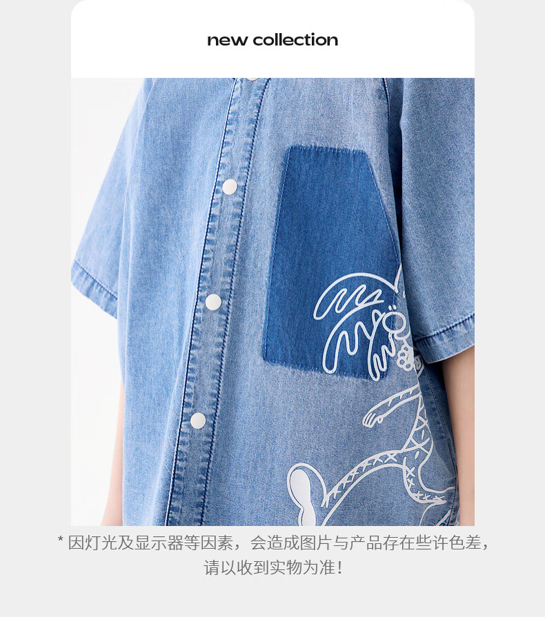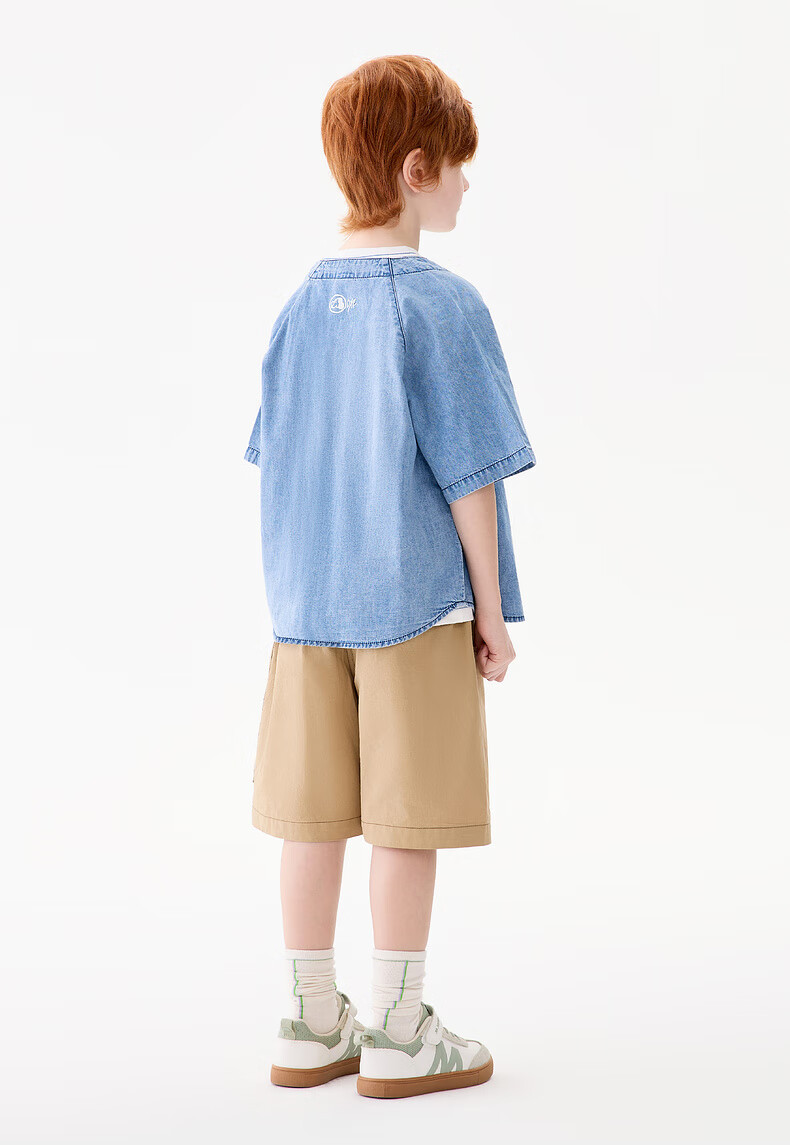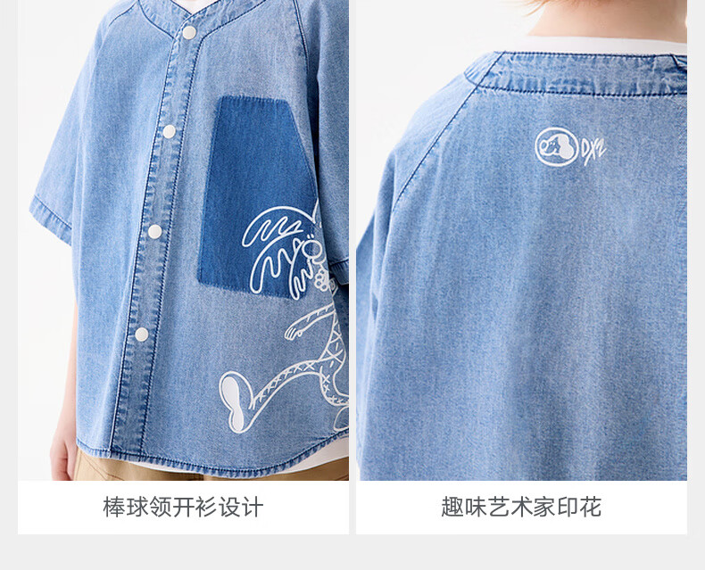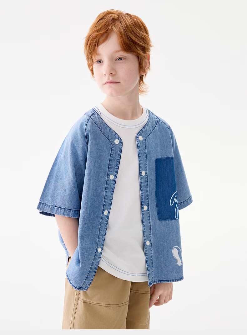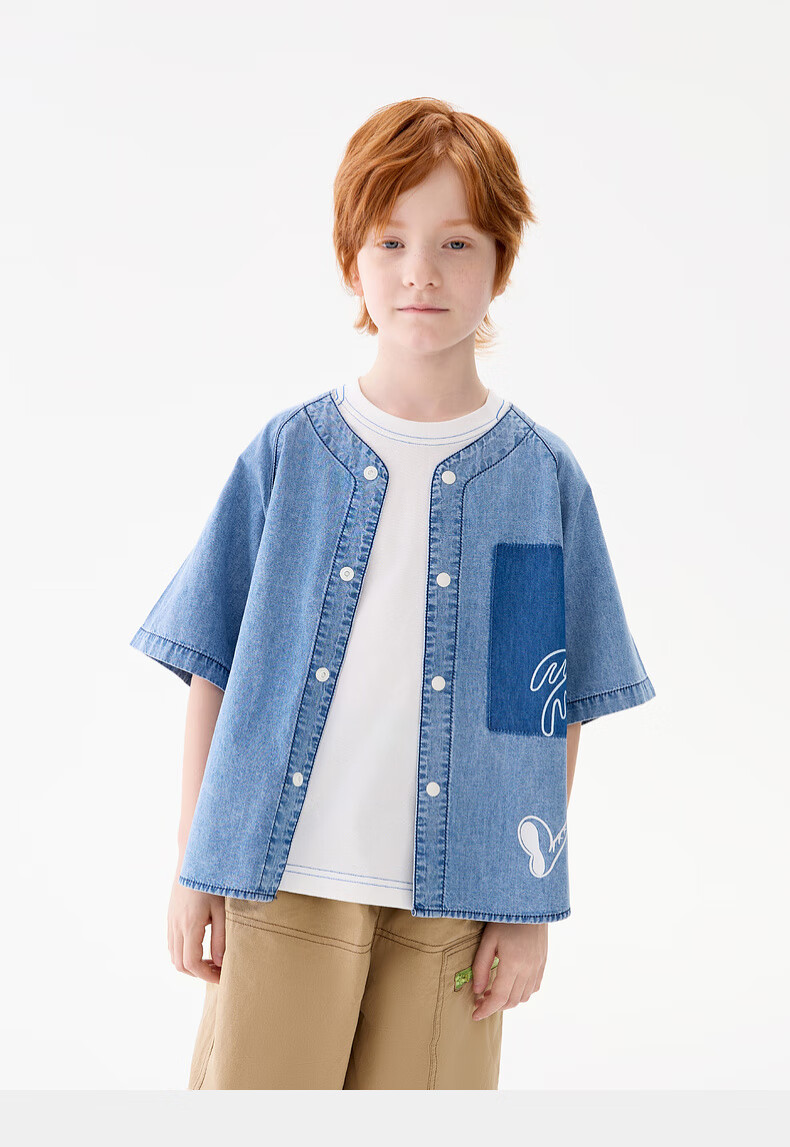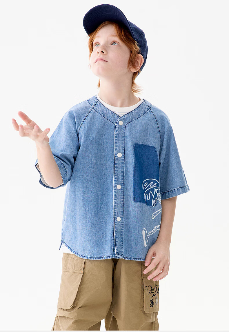 M.Latin M.Latin Children's Clothing Children's Shirt 25 Summer Clothes New Men's and Big Children's Resort Style Printed Short-Sleeved Shirt Denim Light Blue 120