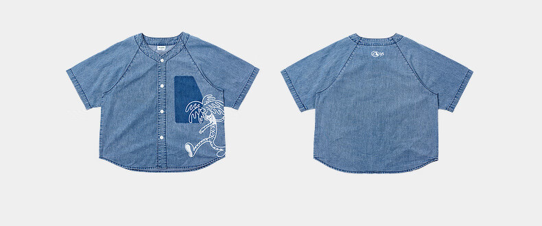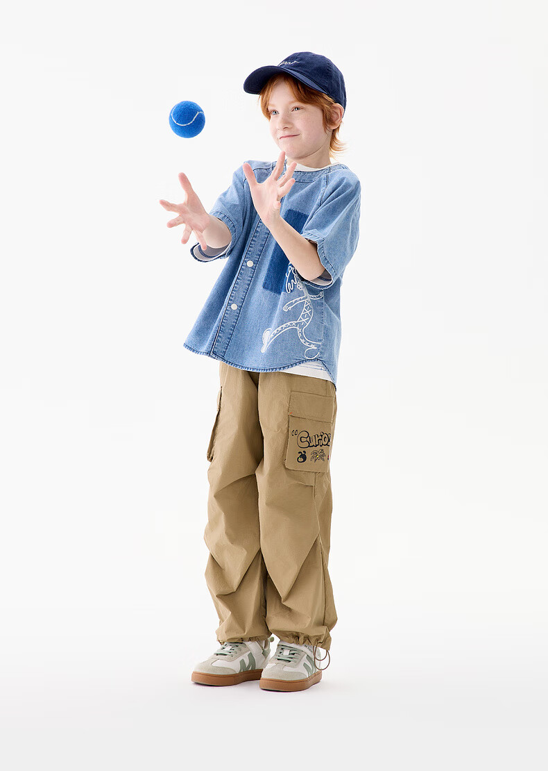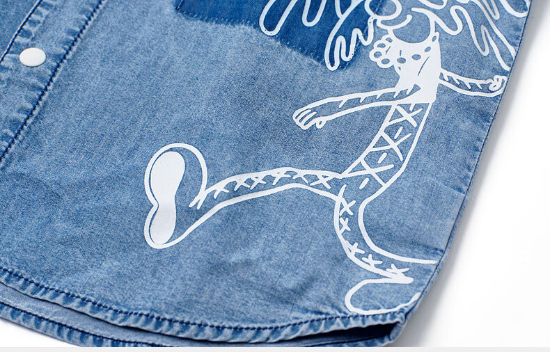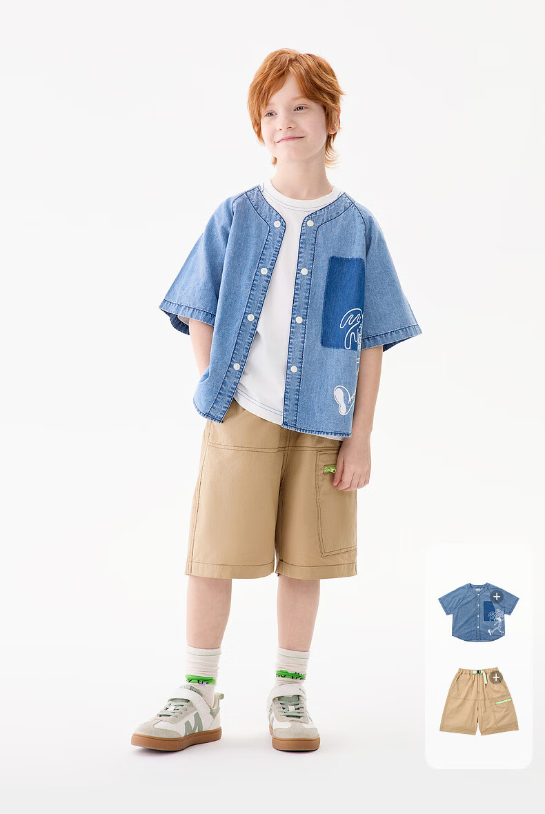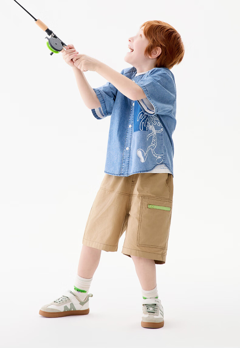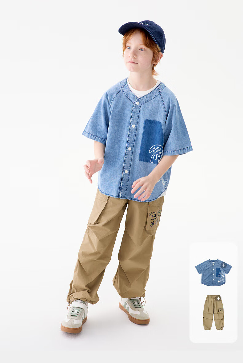M.Latin M.Latin Children's Clothing Children's Shirt 25 Summer Clothes New Men's and Big Children's Resort Style Printed Short-Sleeved Shirt Denim Light Blue 120