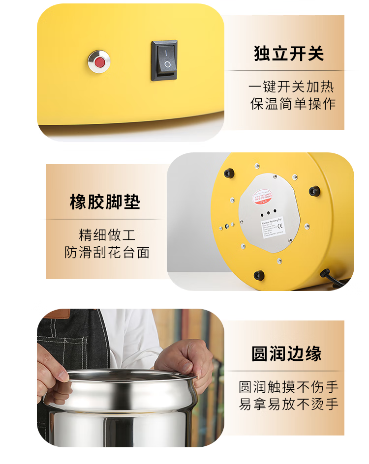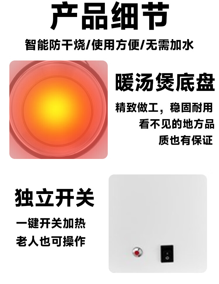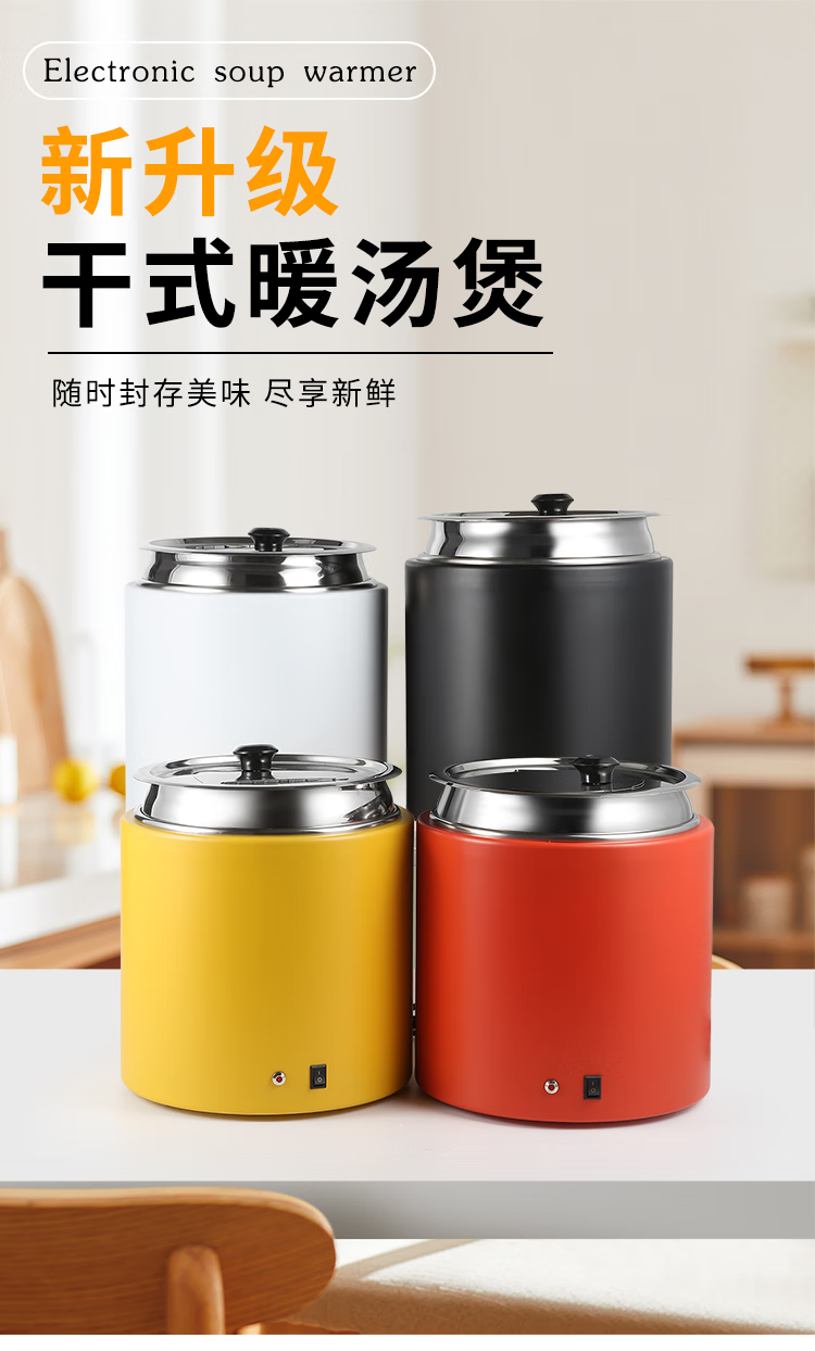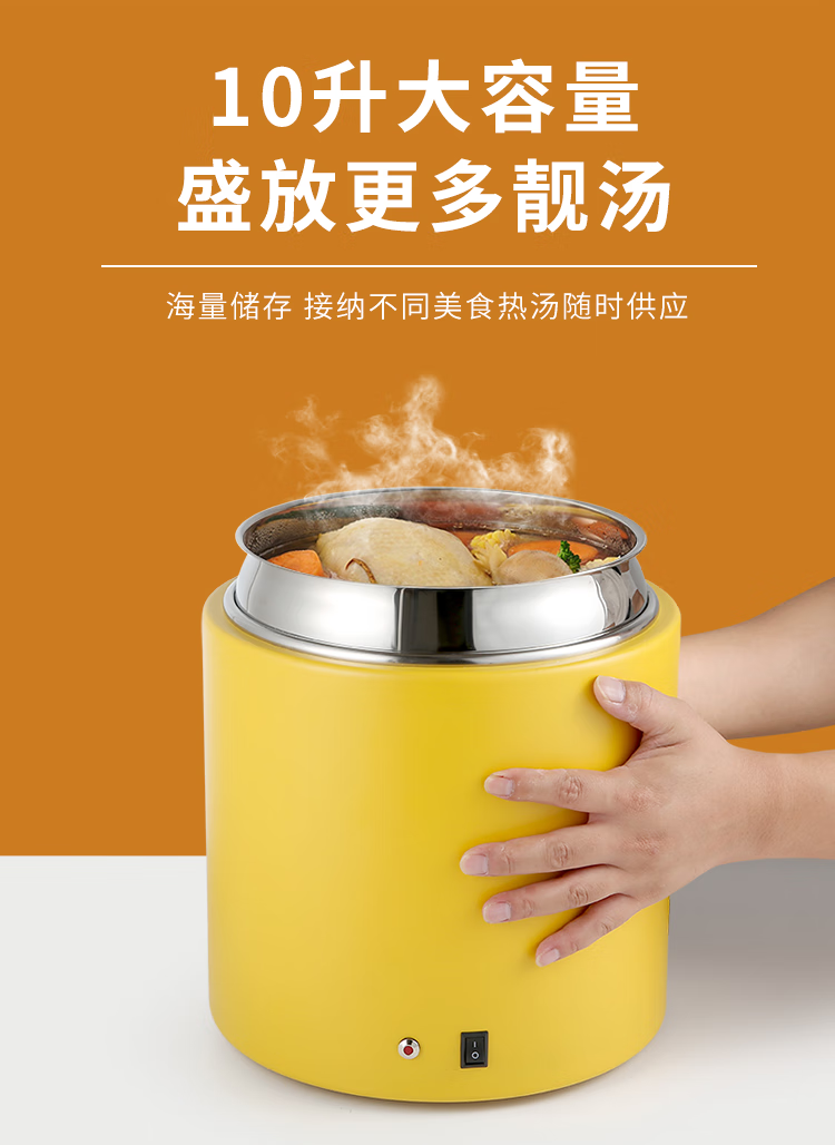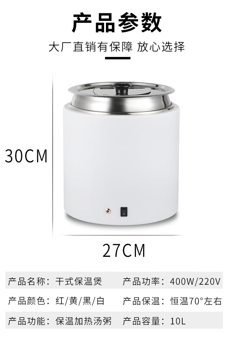 10 liter dry type electric heating soup cooker insulated porridge bucket without adding water, commercial 13 liter electric heating breakfast insulation pot 10 liter black dry type warm soup cooker/no need to add water