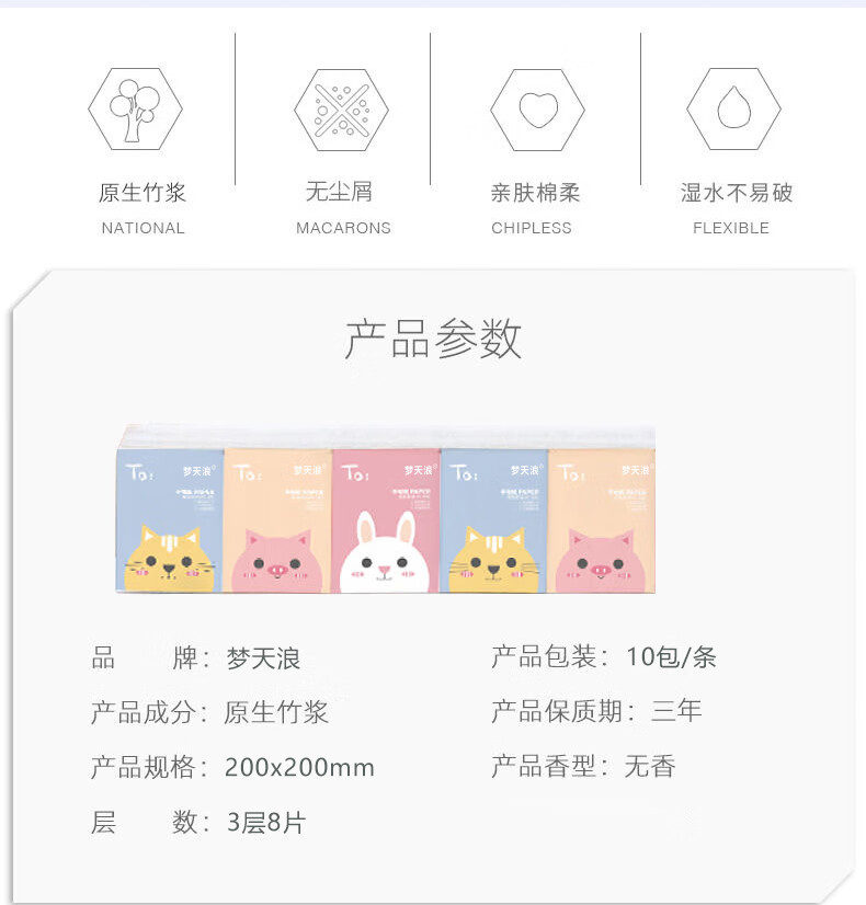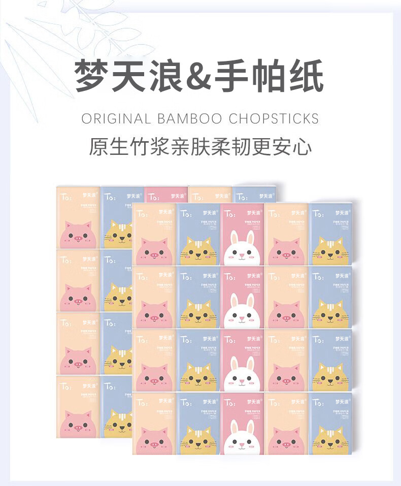 Mengtianlang handkerchief paper antibacterial bamboo pulp small pack paper towel toilet paper portable flexible napkin facial tissue 3 layers 8 pieces * 10 packs exclusive for new customers