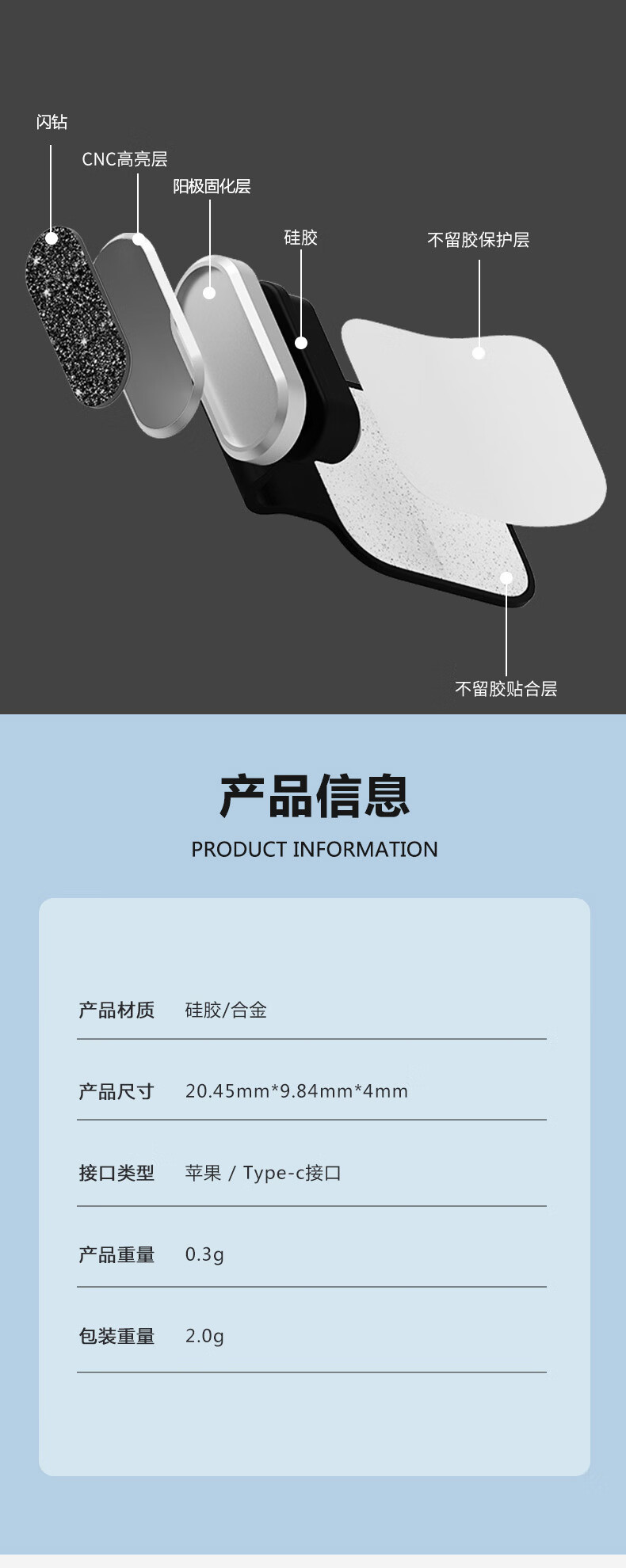 Guest set suitable for Android Apple 17ProMax/16E/15 mobile phone charging port dust plug Huawei Xiaomi vivo universal TypeC alloy anti-lost plug waterproof splash anti-stain film Type-c interface titanium original color-flash diamond style metal anti-lost dust plug