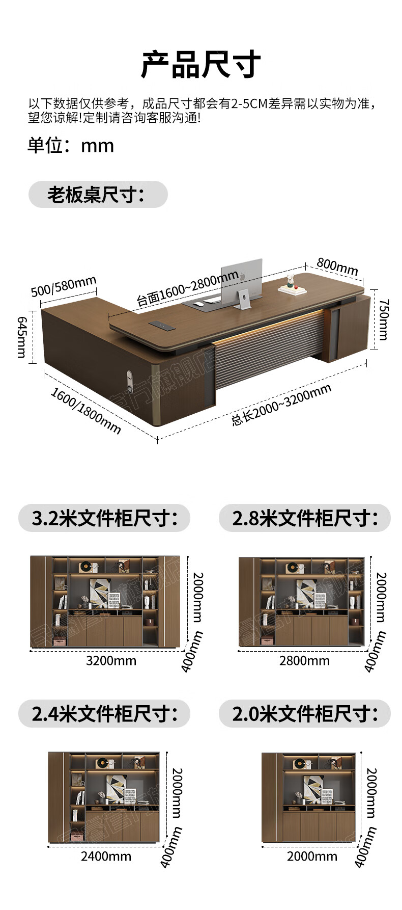 Minrui boss table high-end light luxury manager table high-end president table simple modern single office desk and chair executive desk 2.0 meters boss table