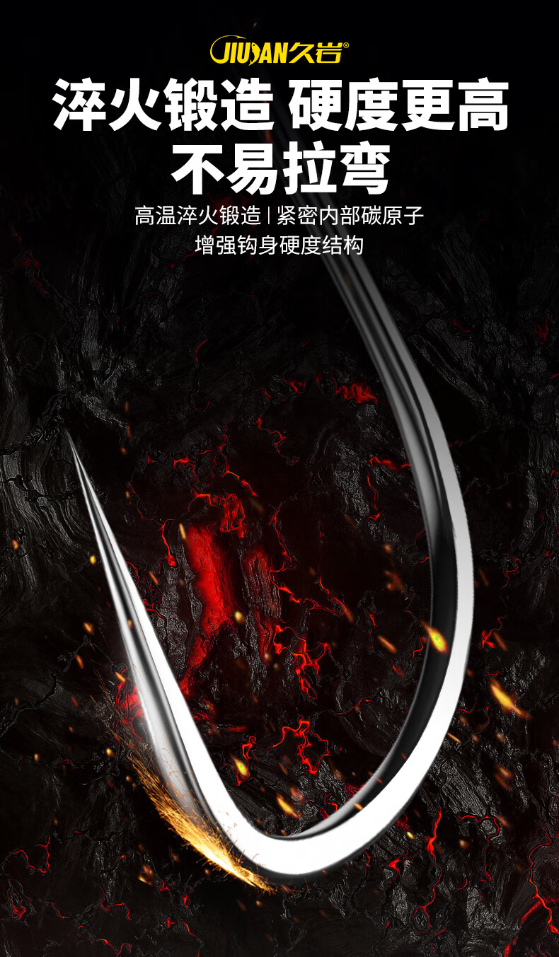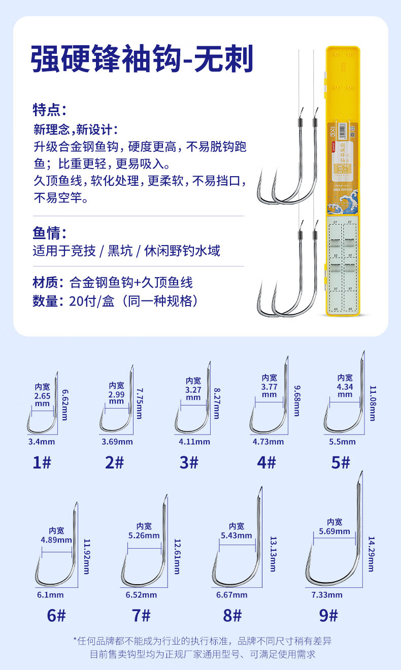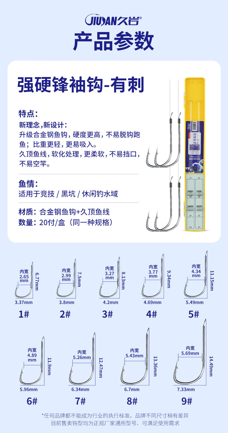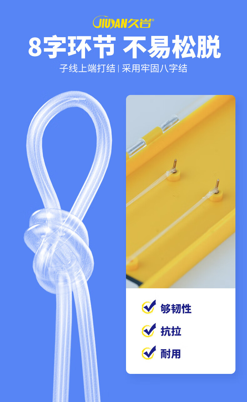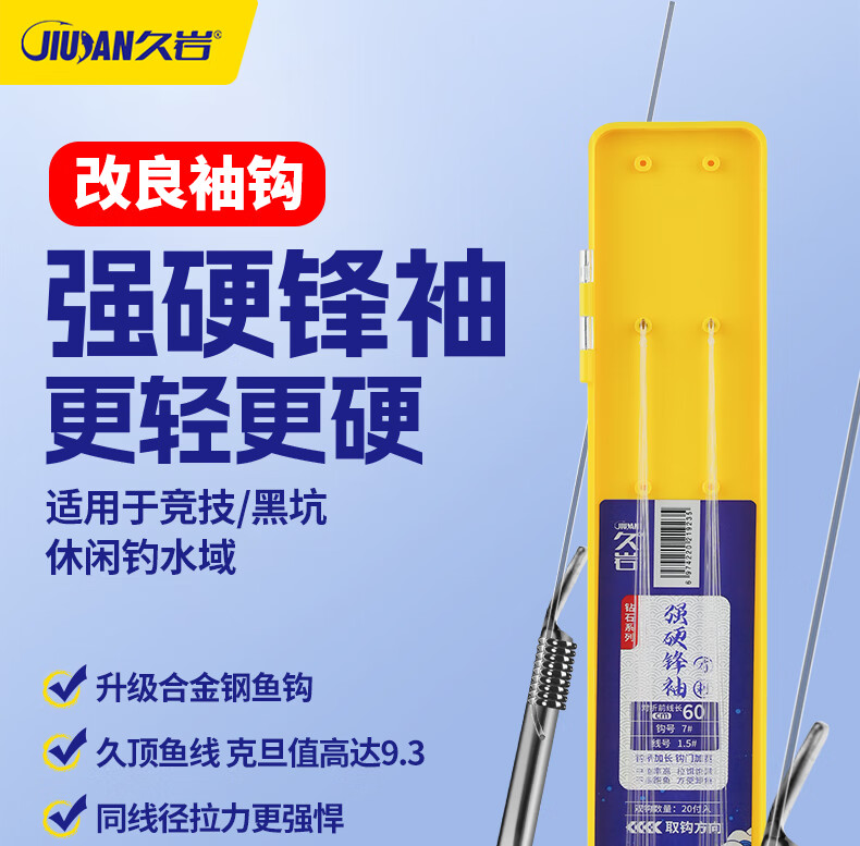 Jiuyan's tough front sleeves are tied with good sub-threads and double hooks. Finished set sleeve hooks are thorn-free for wild fishing crucian carp and are anti-winding short sub-thread fish hooks. 25cm tough front sleeves have thorns. Hooks are 5 and 0.8.