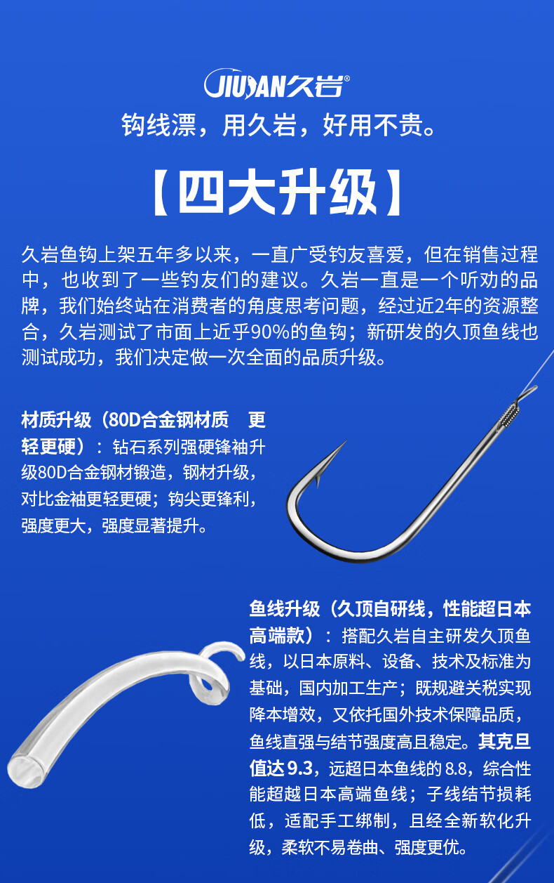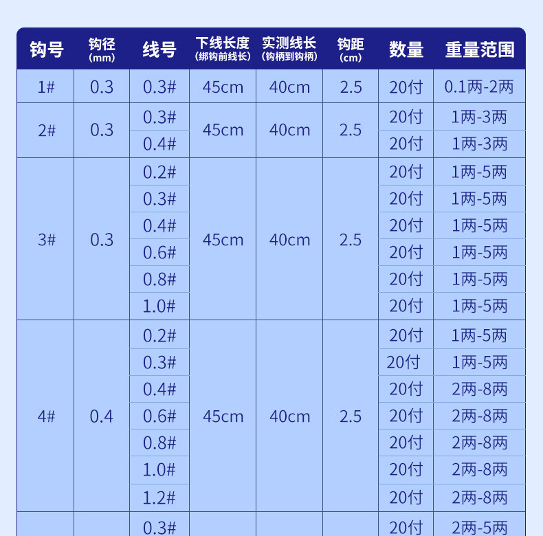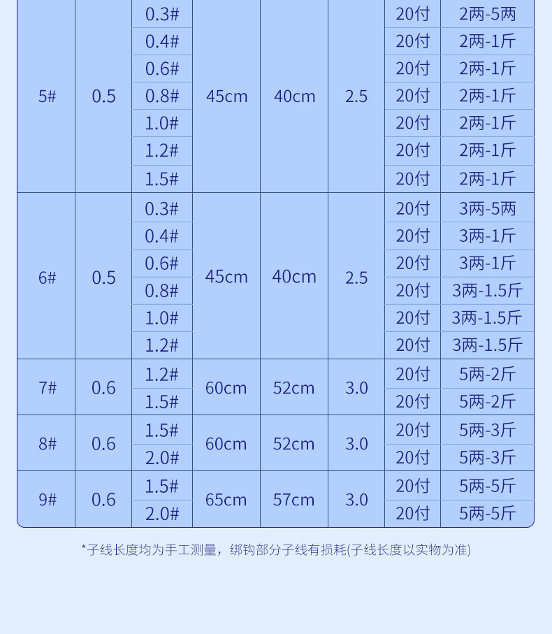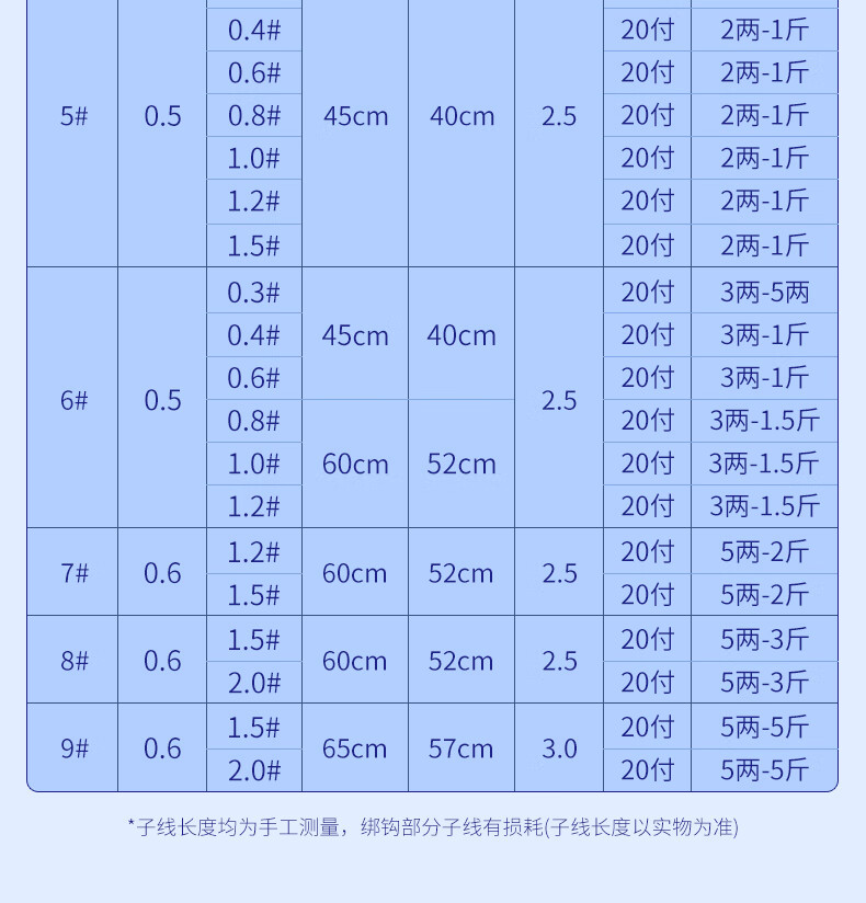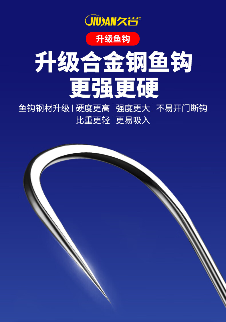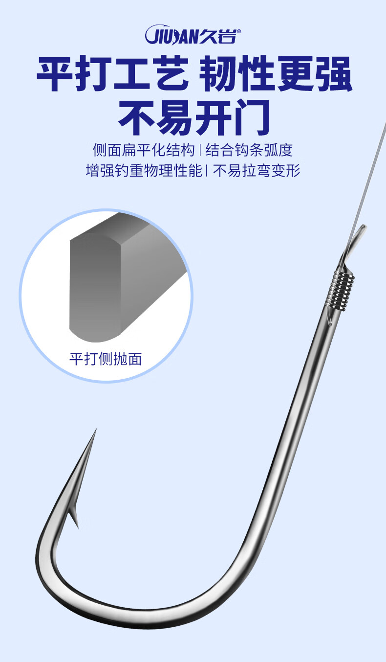 Jiuyan's tough front sleeves are tied with good sub-threads and double hooks. Finished set sleeve hooks are thorn-free for wild fishing crucian carp and are anti-winding short sub-thread fish hooks. 25cm tough front sleeves have thorns. Hooks are 5 and 0.8.