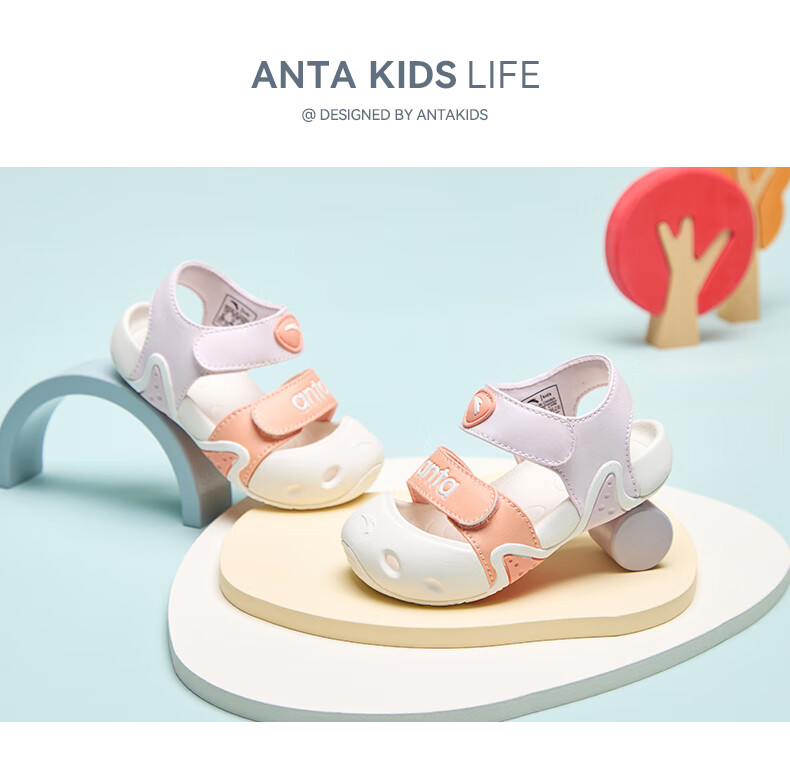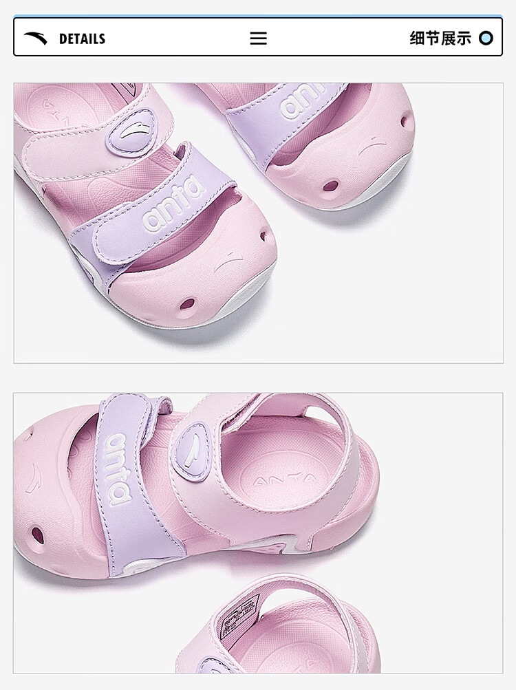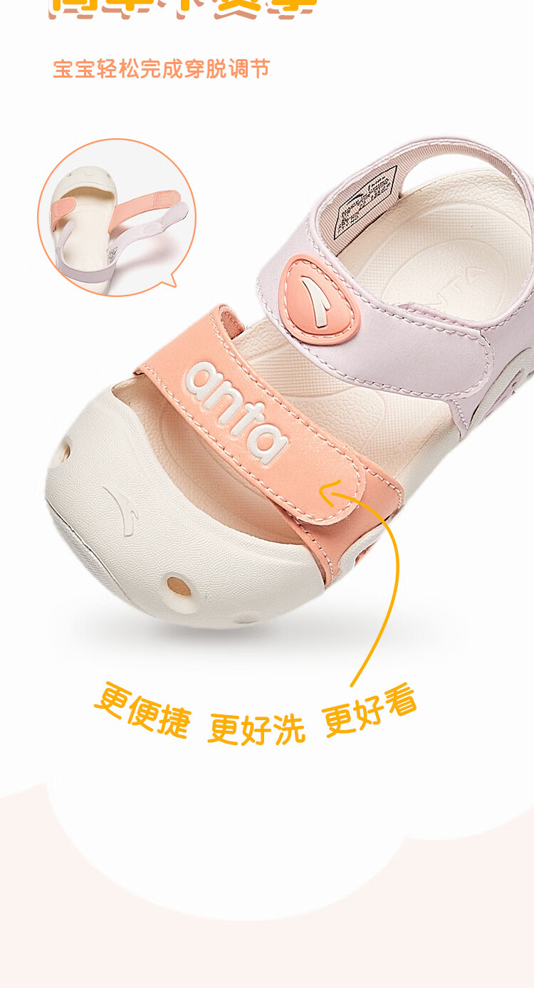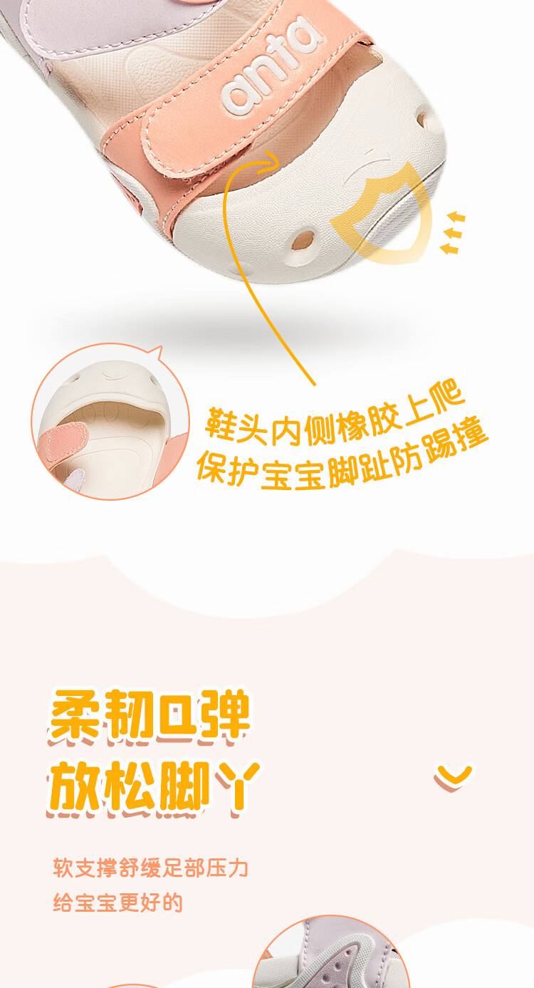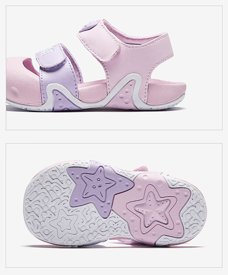 ANTA Children's Sandals, Baby Girls' Shoes, 2025 Summer New Arrival Baotou Anti-collision Starfish Outdoor Beach Shoes Iris Purple/Light Mist Purple-2 25 Shoe Inner Length 15.5cm