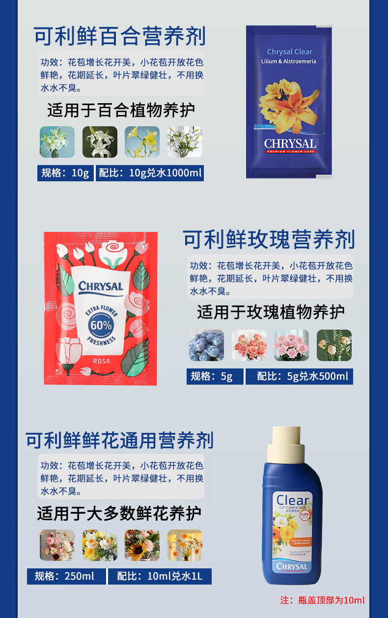 Kelixian Netherlands imported flower preservative rose lily nutrient solution fresh cut flowers universal flower water locking spray universal 5g 40 packs