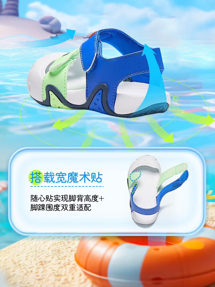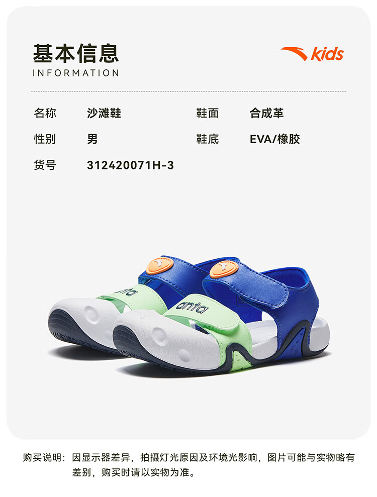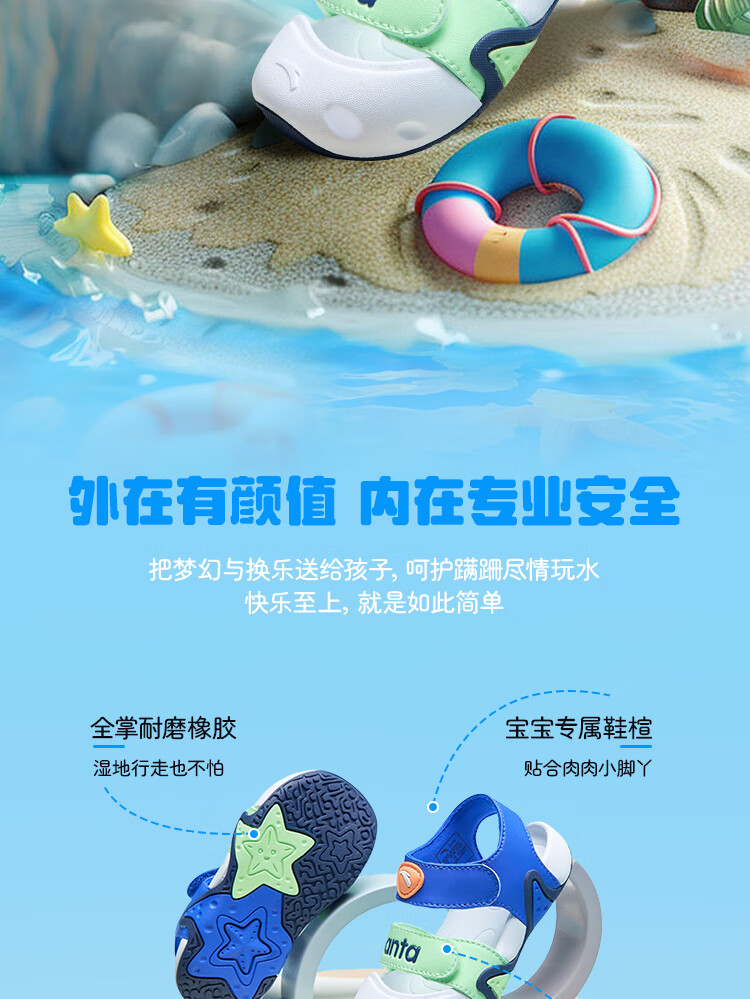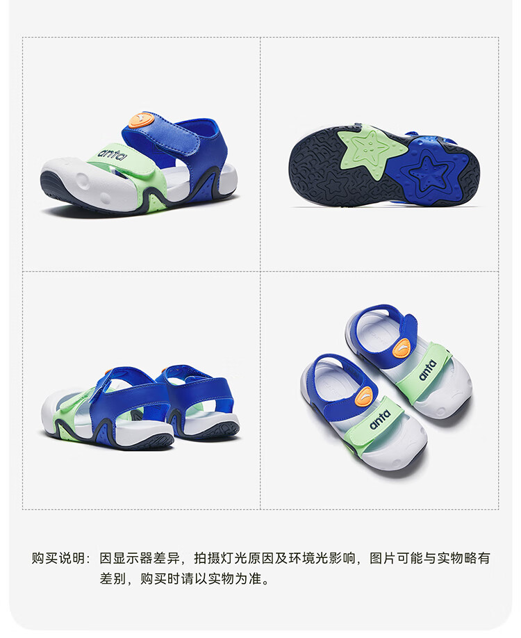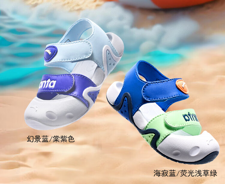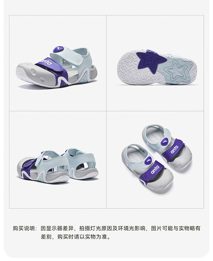 ANTA children's sandals for boys and girls, beach shoes for boys and girls, summer toe-caps, breathable, lightweight, soft-soled baby starfish toddler shoes, male, fantasy blue/tang purple-1 25, shoe inner length 15.5cm