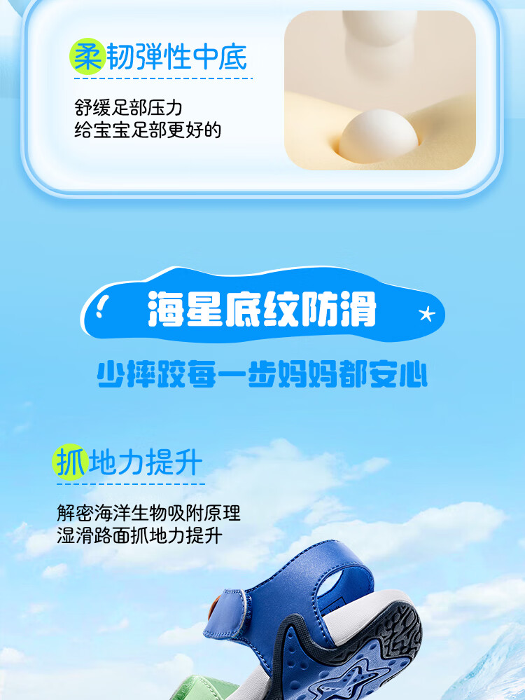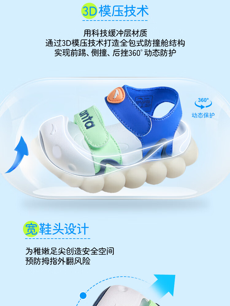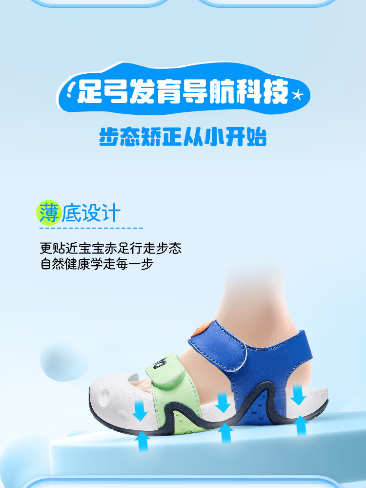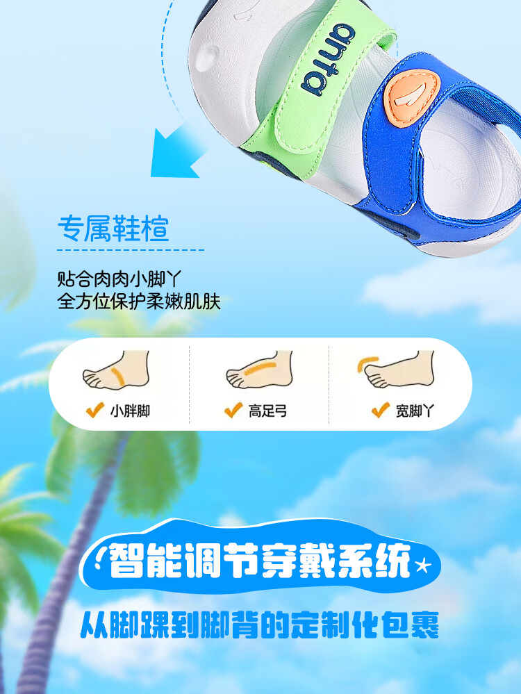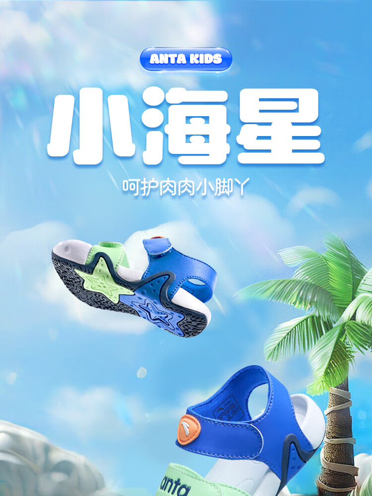 ANTA children's sandals for boys and girls, beach shoes for boys and girls, summer toe-caps, breathable, lightweight, soft-soled baby starfish toddler shoes, male, fantasy blue/tang purple-1 25, shoe inner length 15.5cm