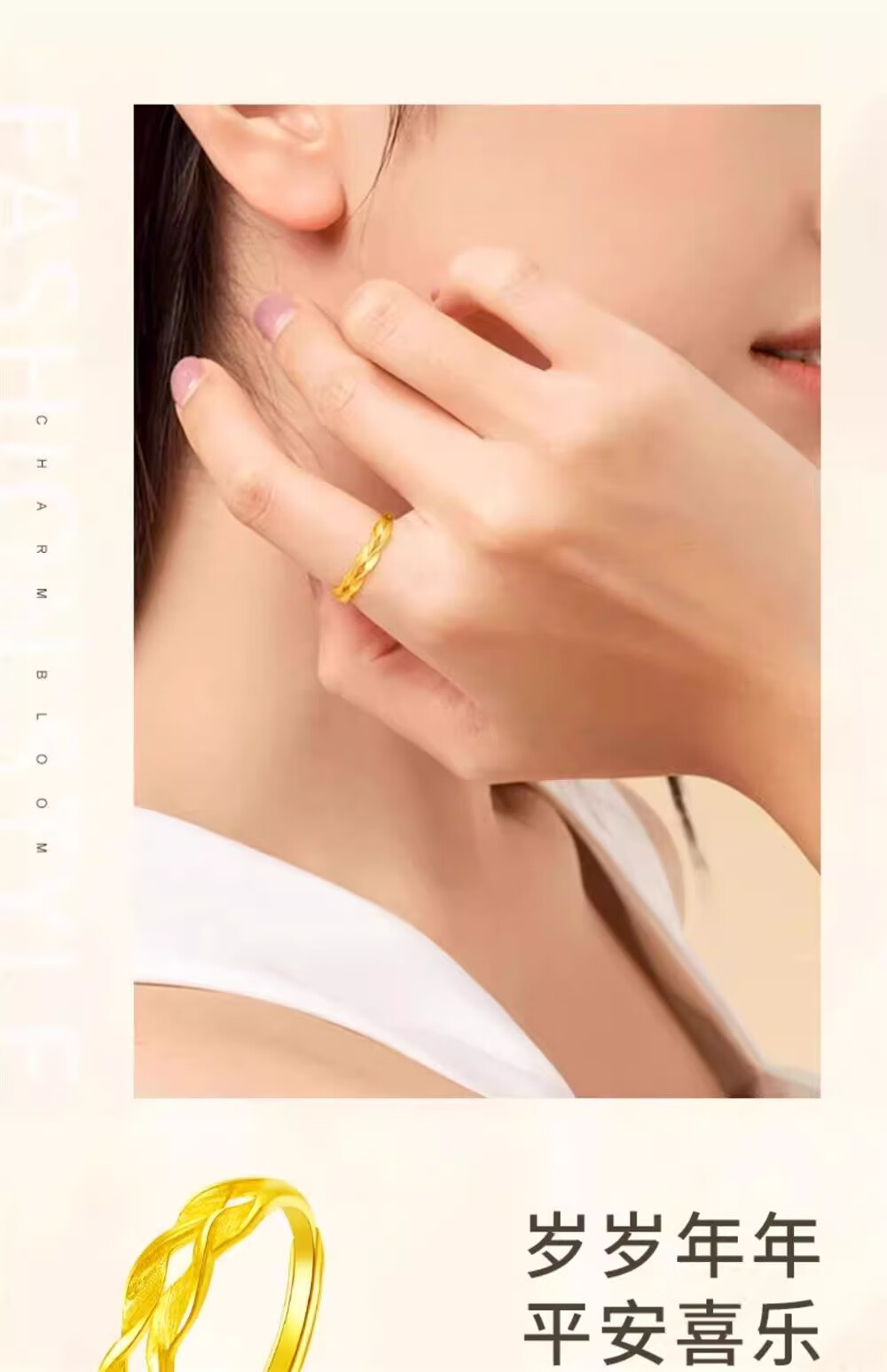 Kuang Yi 5G pure gold 999 wheat ear peace ring gold light luxury ring ring for girlfriend holiday gift 1.12 grams open wheat ear peace ring double 12 special