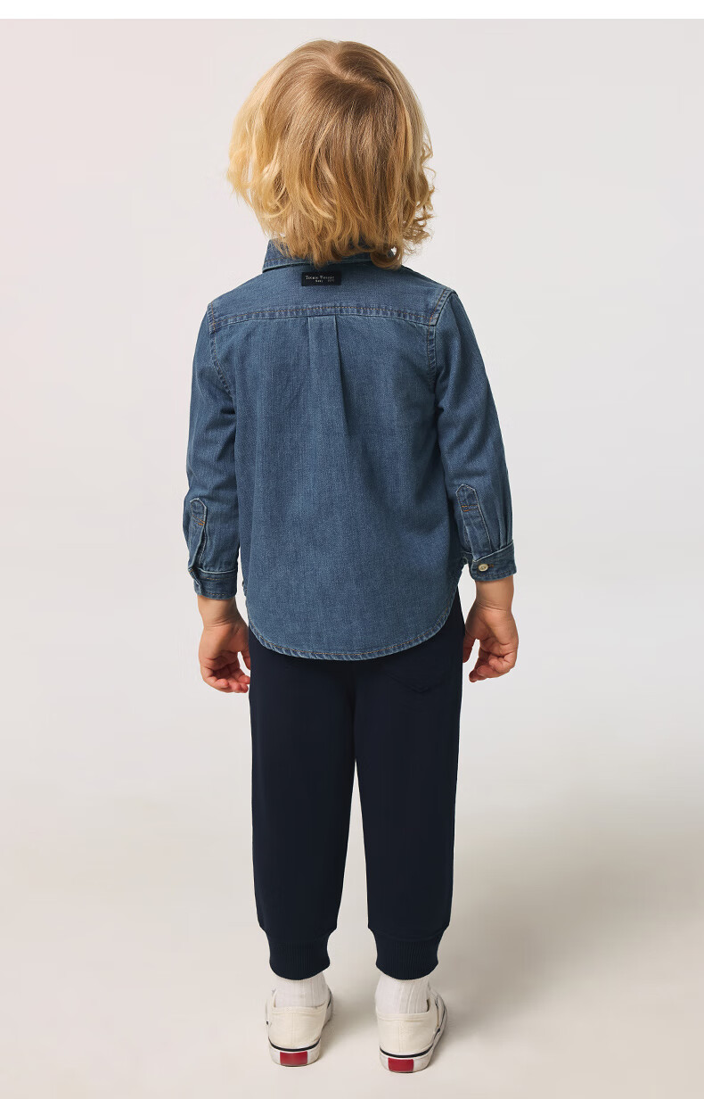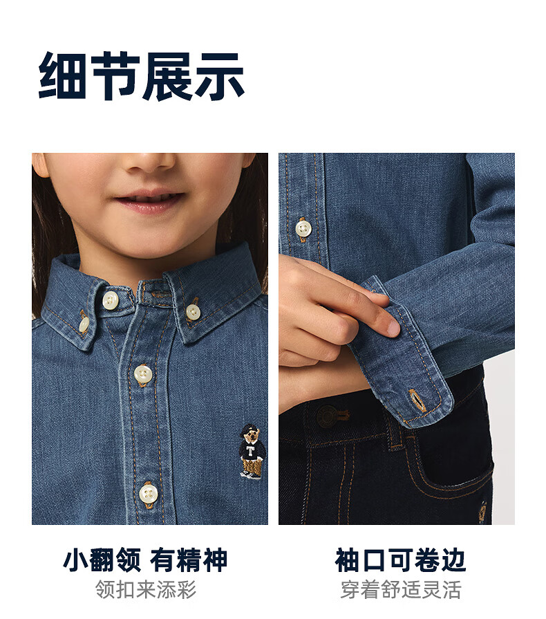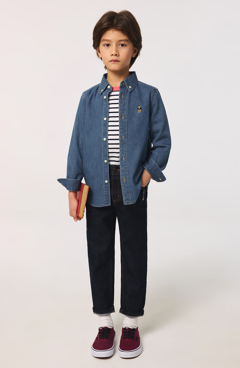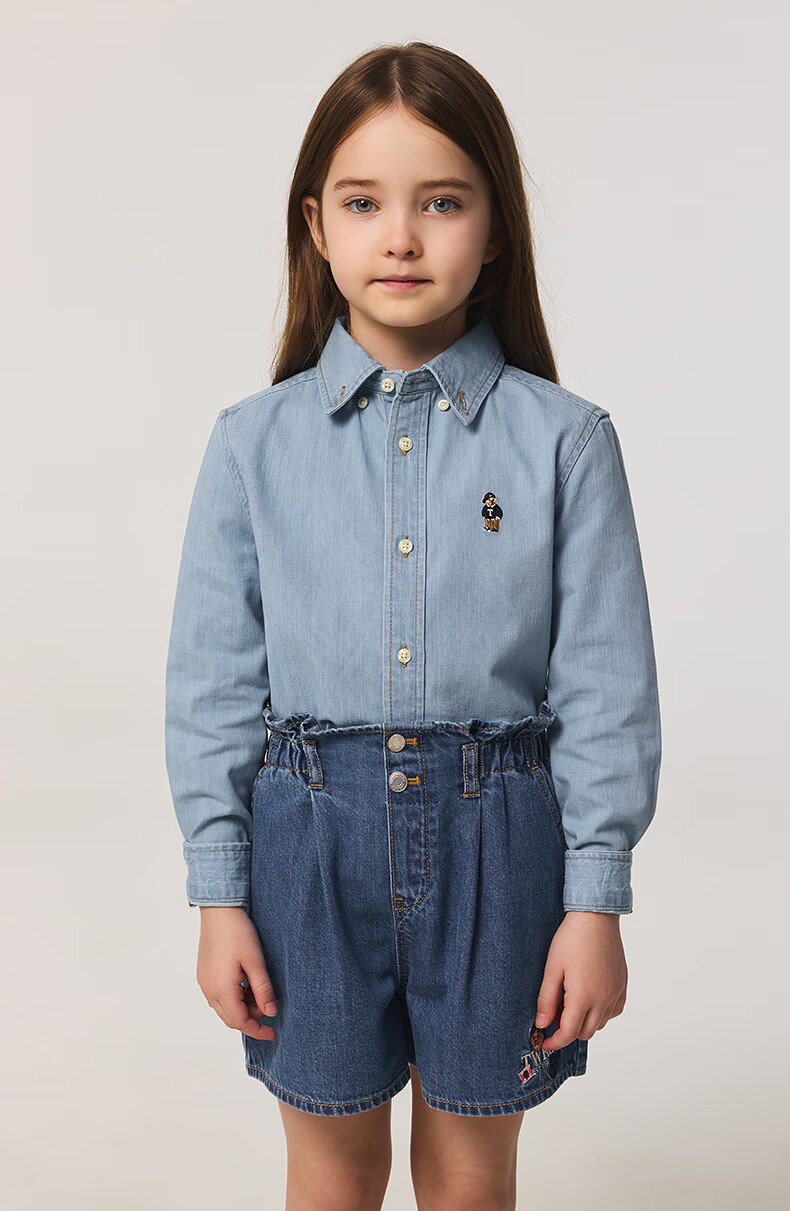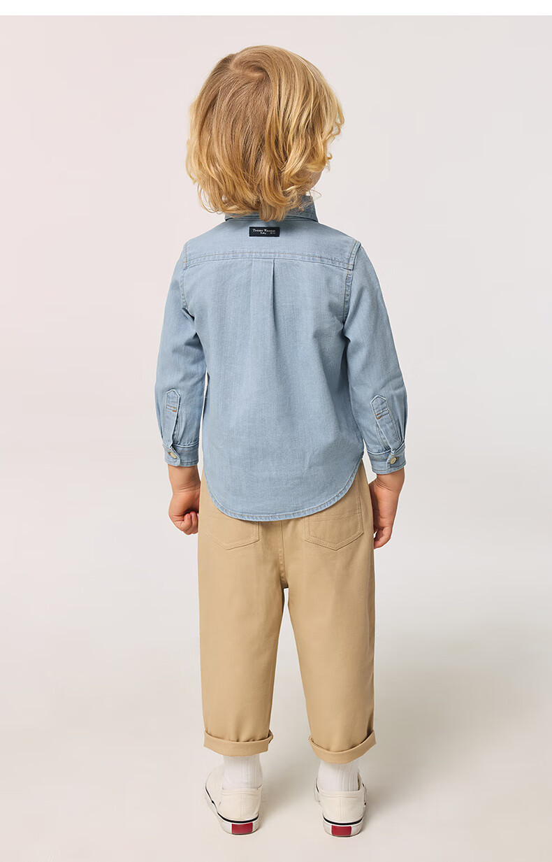Teenie Weenie Kids 25 spring and summer new style long-sleeved denim shirt for boys and girls, denim color 90 cm