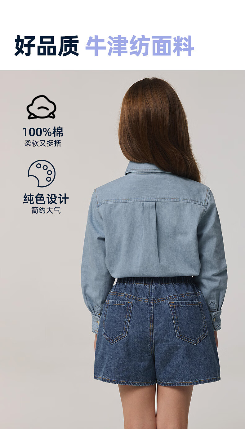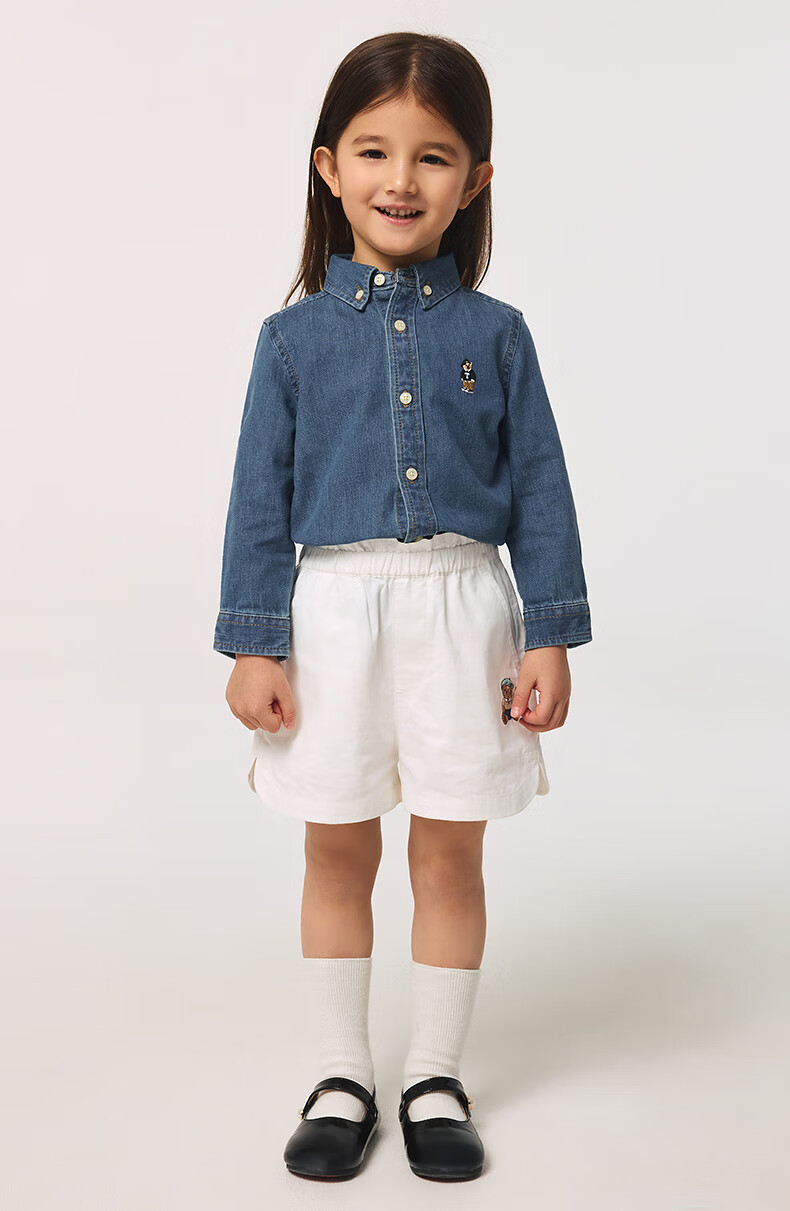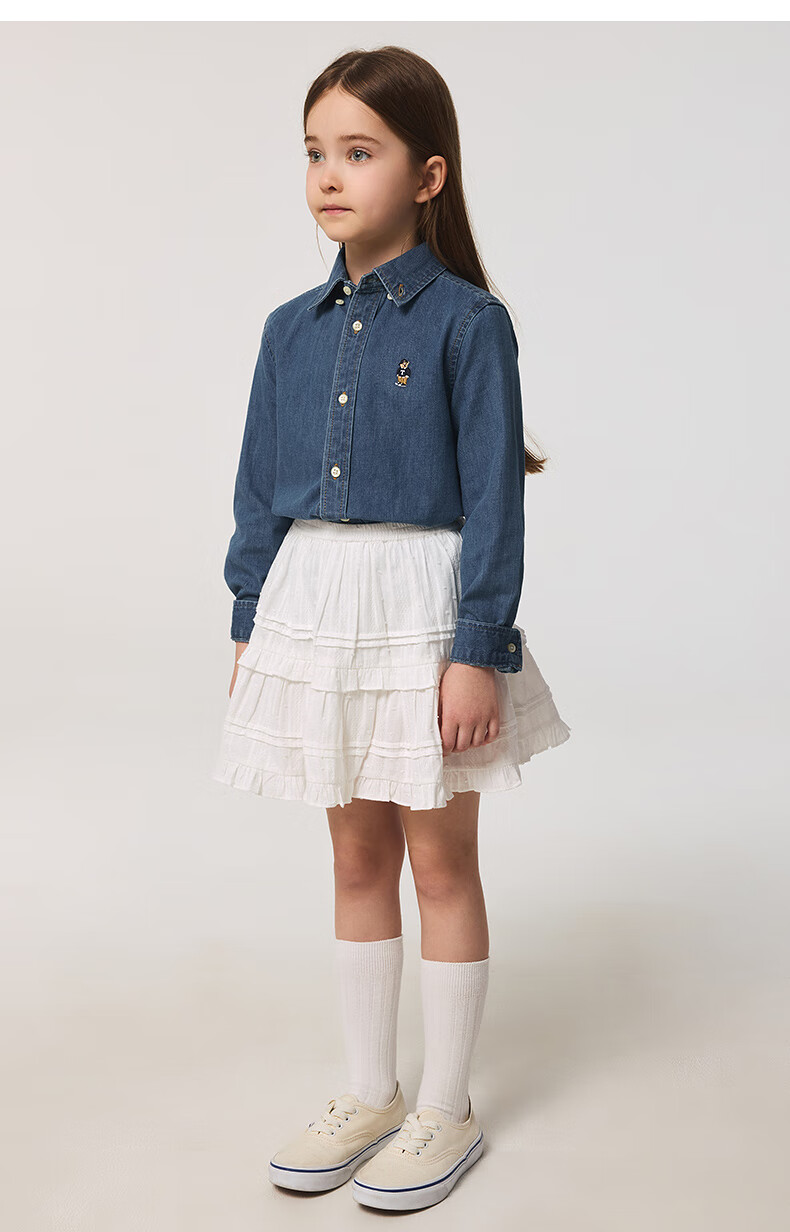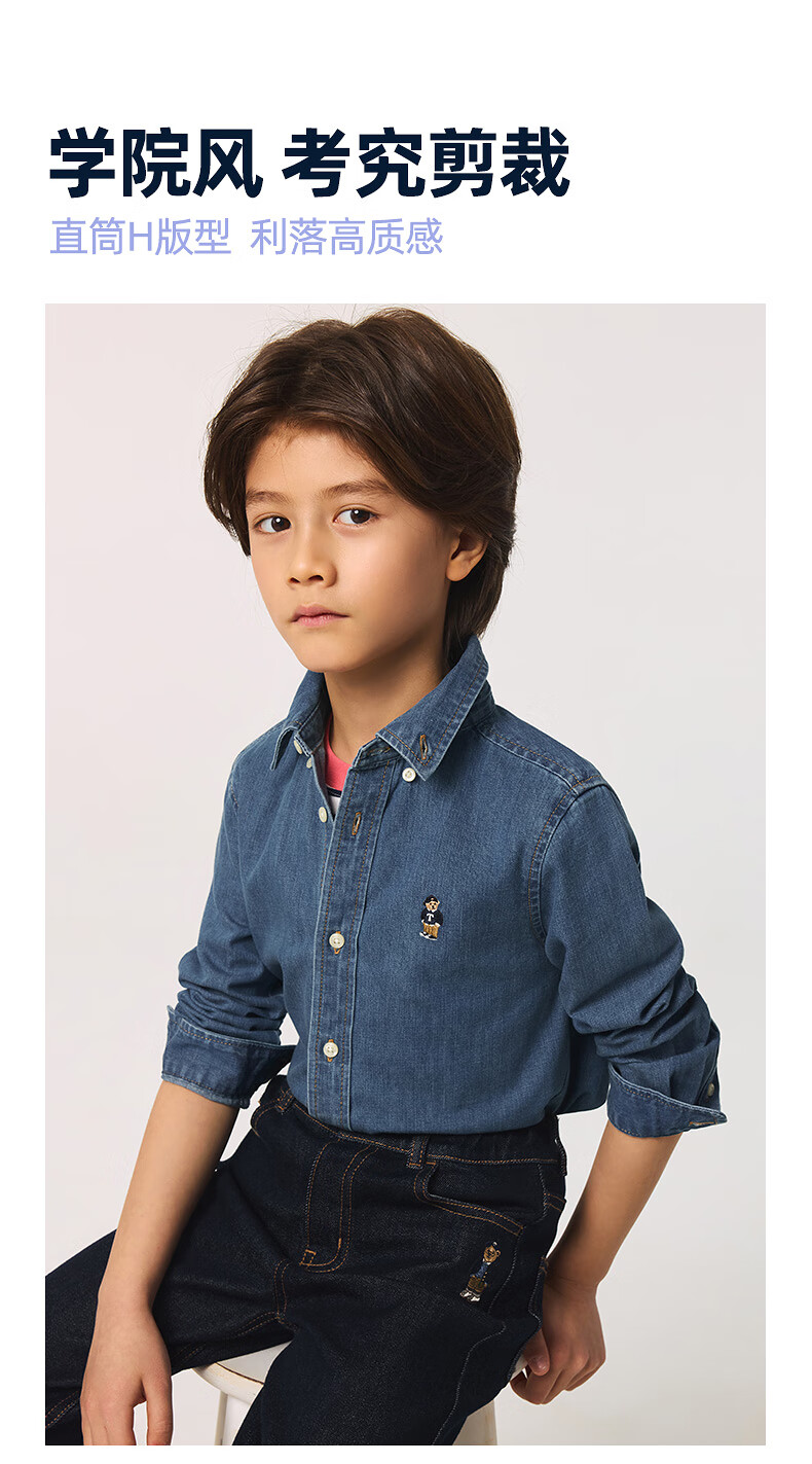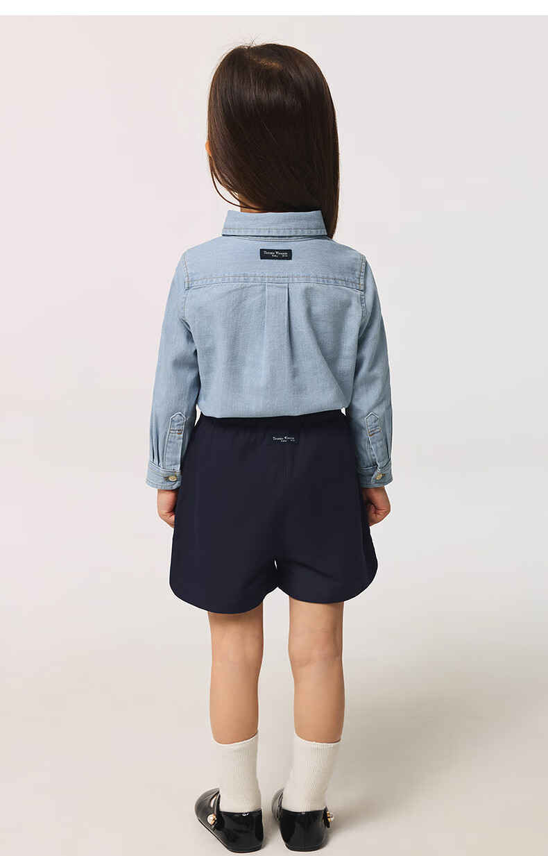 Teenie Weenie Kids 25 spring and summer new style long-sleeved denim shirt for boys and girls, denim color 90 cm