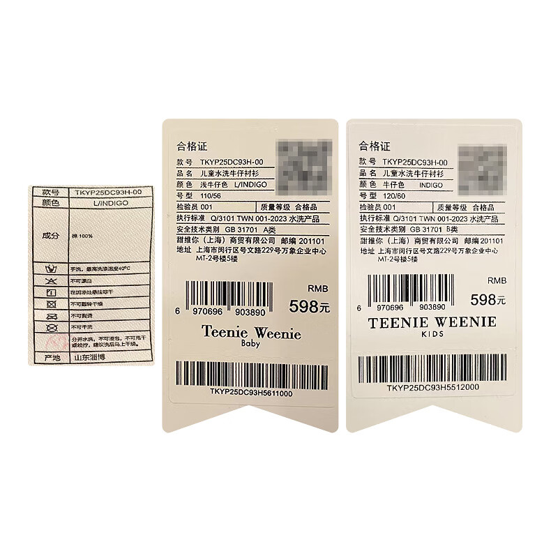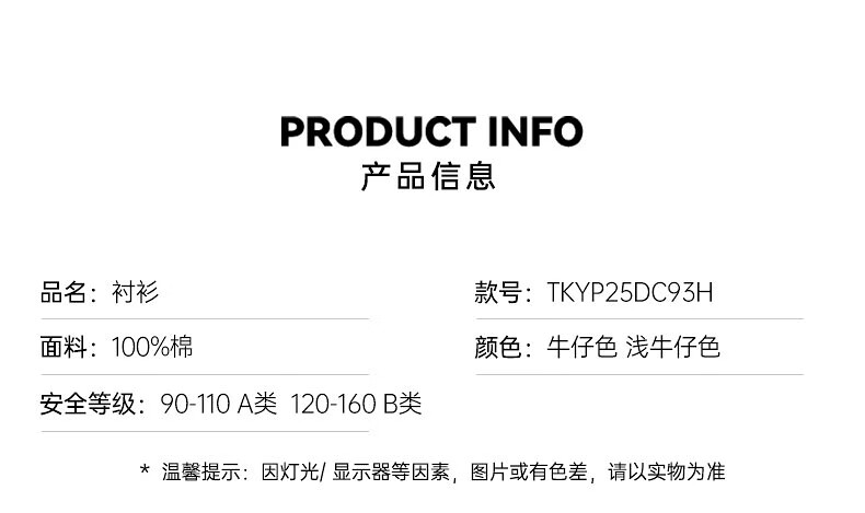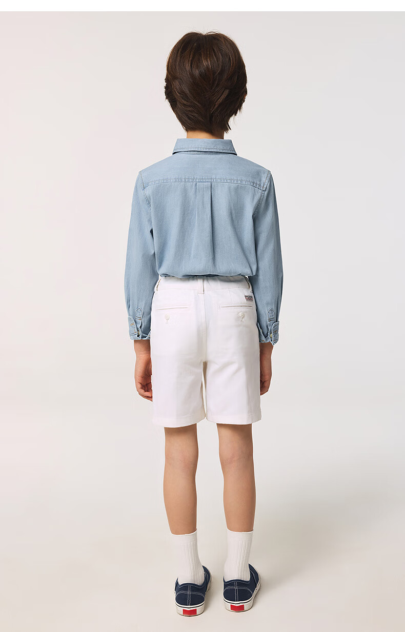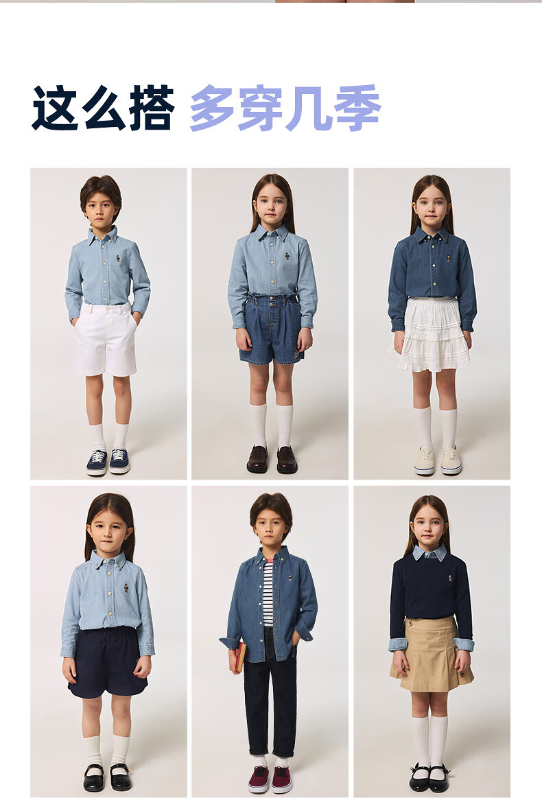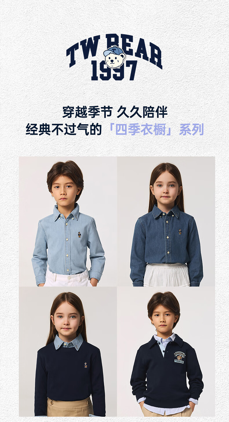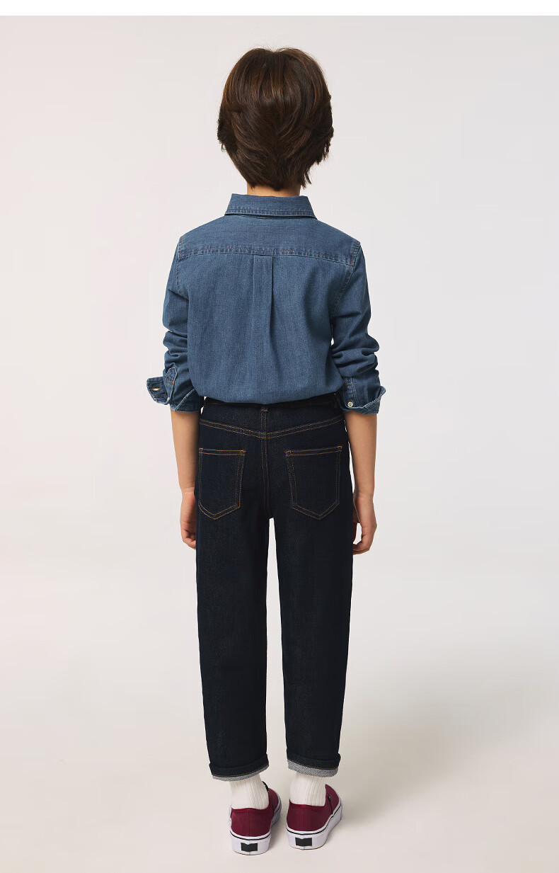 Teenie Weenie Kids 25 spring and summer new style long-sleeved denim shirt for boys and girls, denim color 90 cm