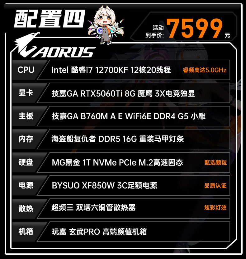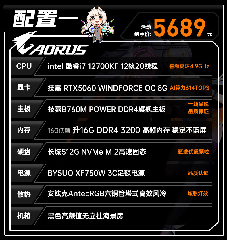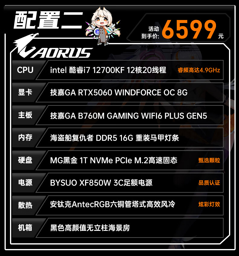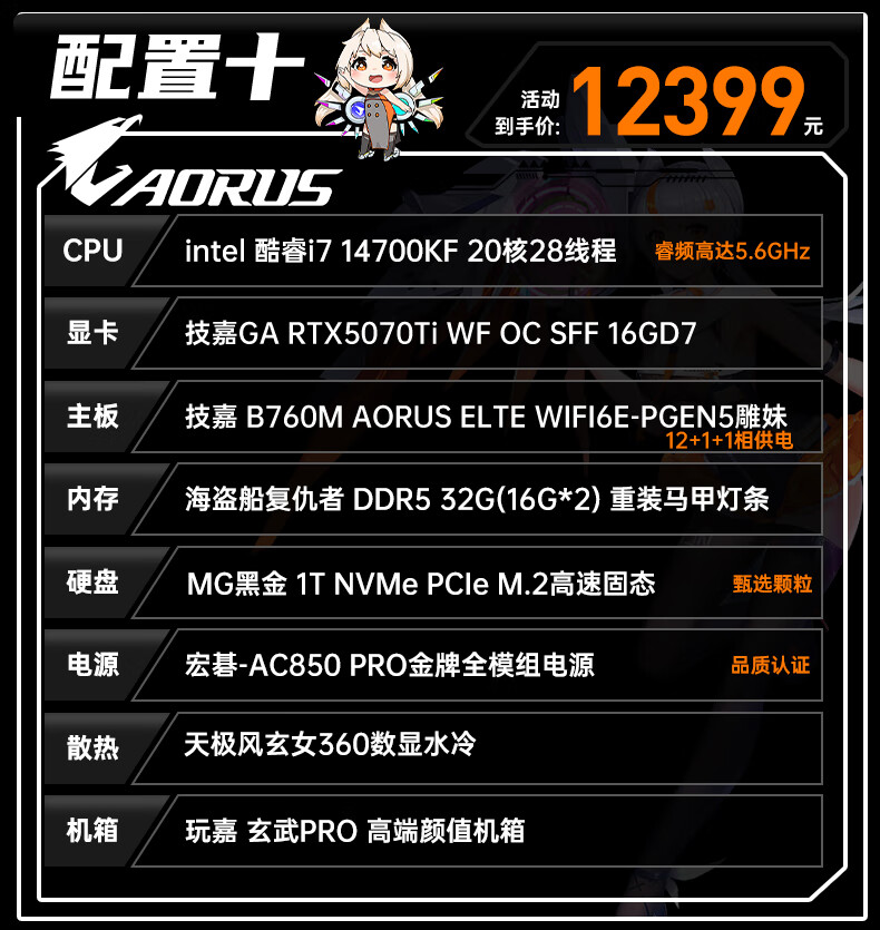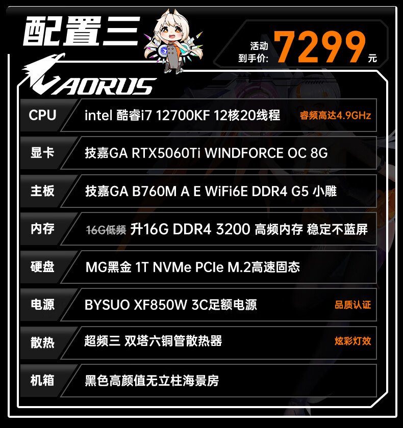 Gigabyte i7 12700KF/14700KF/RTX5060/5070/Ti graphics card live e-sports assembly computer host complete black Wukong gaming desktop four 12700KF丨RTX5060Ti丨1T