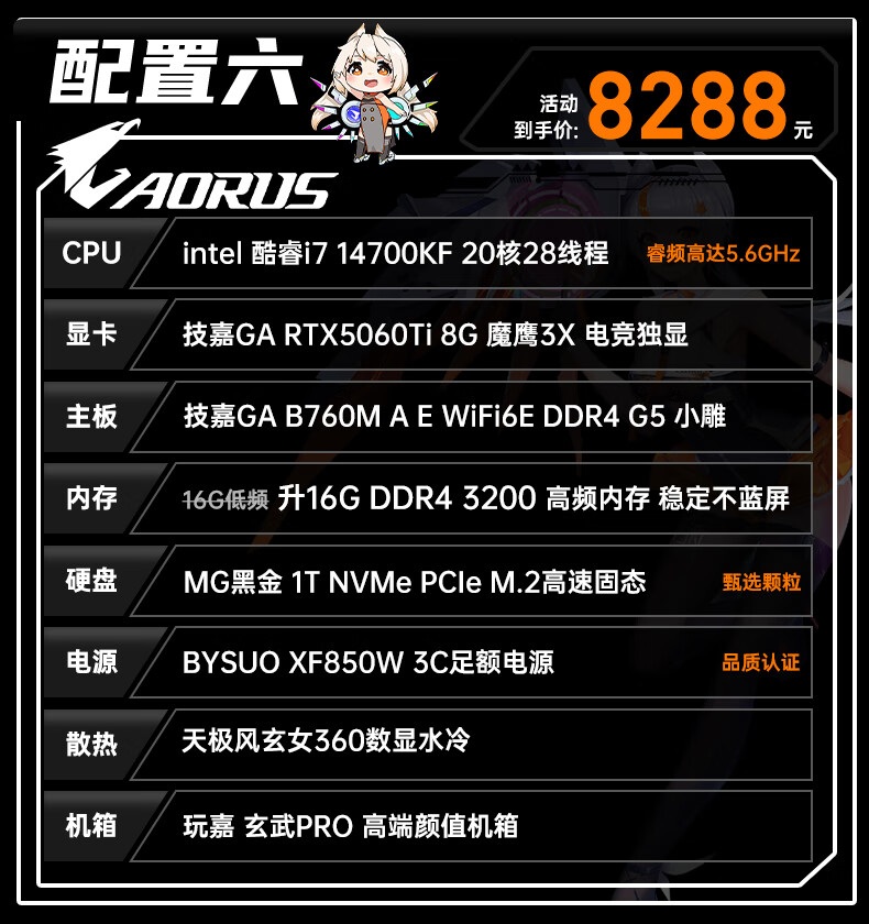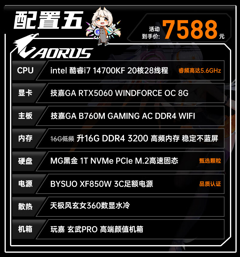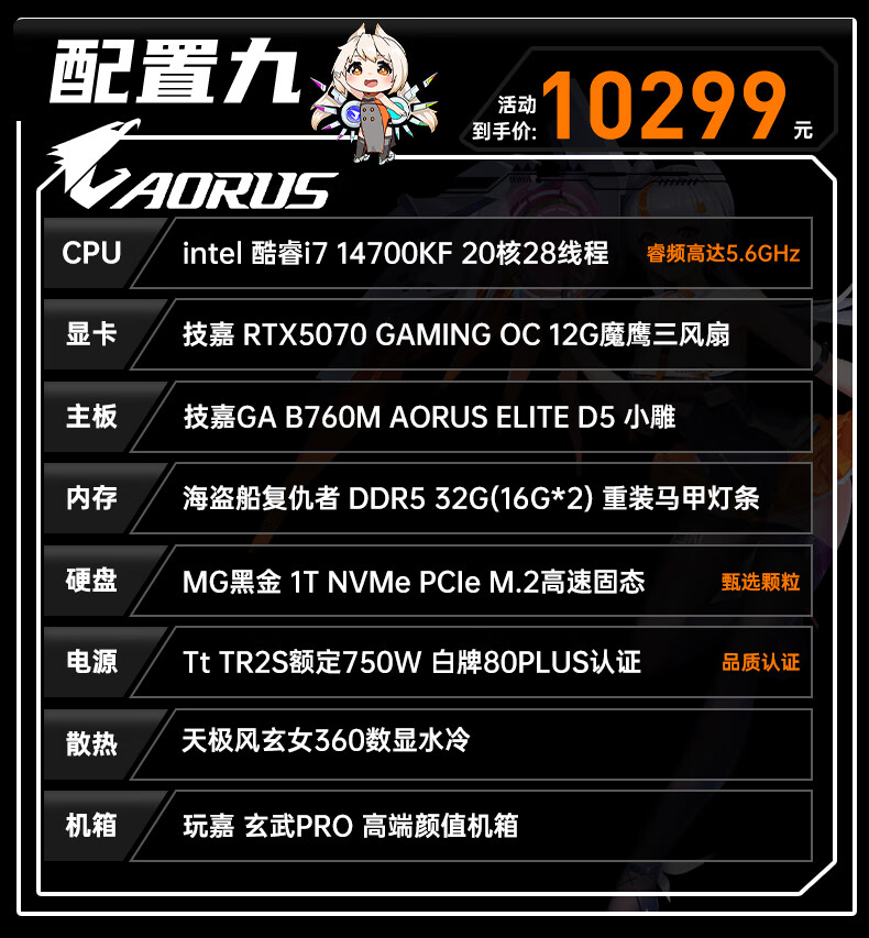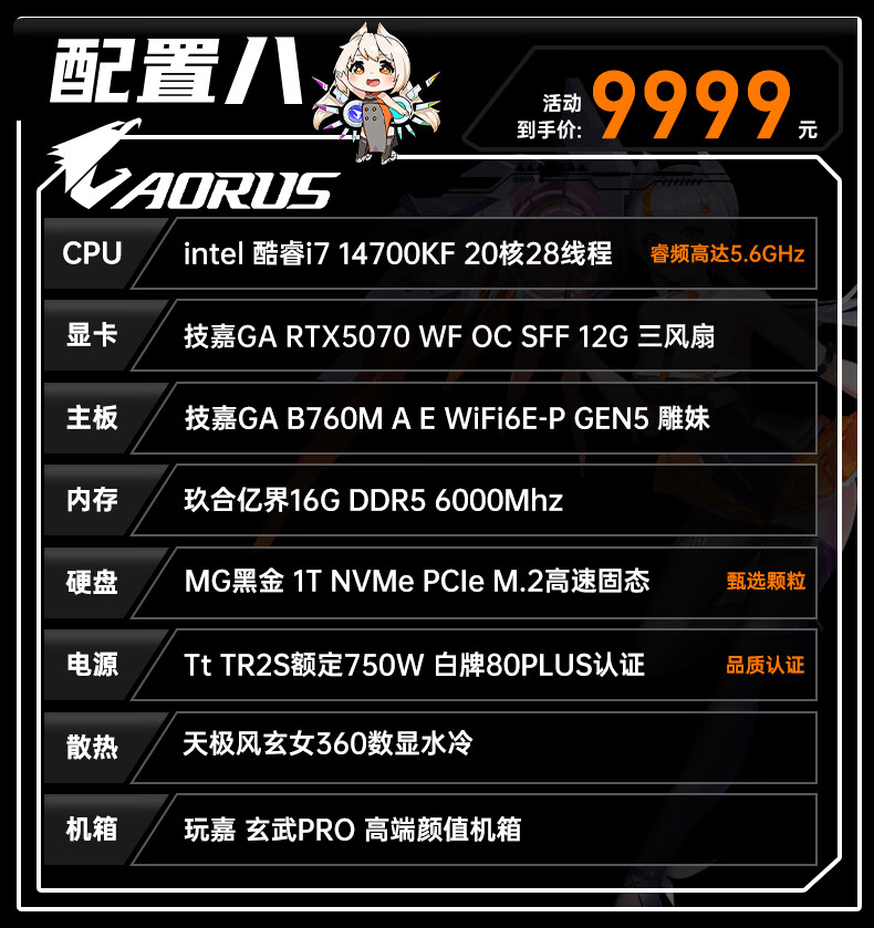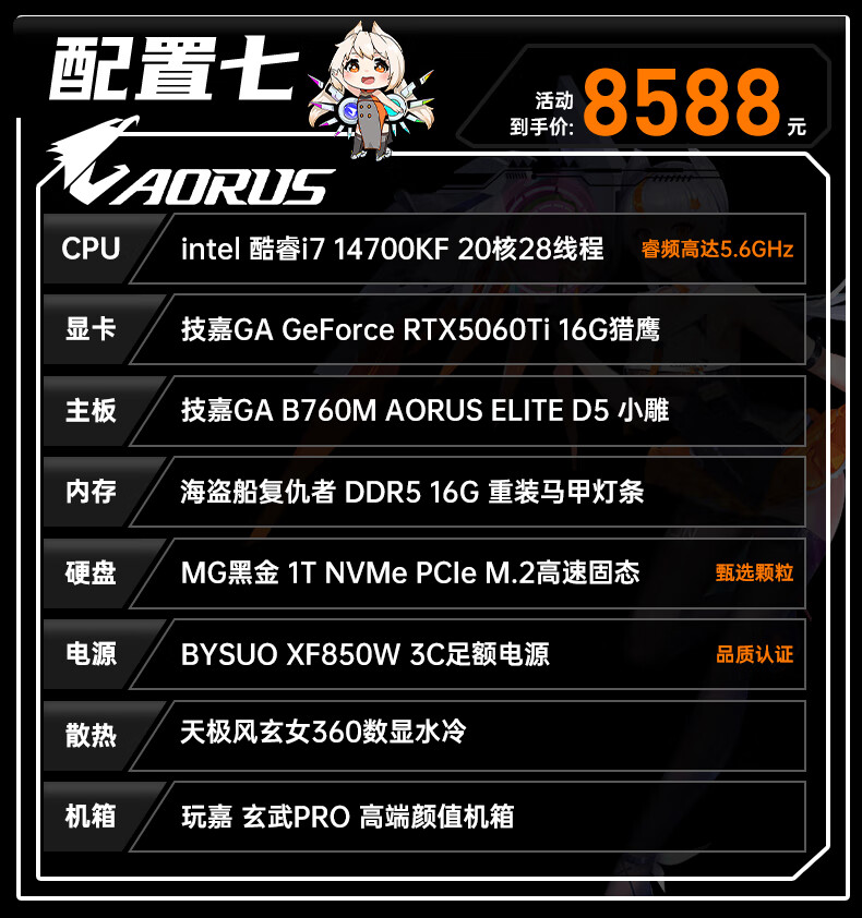 Gigabyte i7 12700KF/14700KF/RTX5060/5070/Ti graphics card live e-sports assembly computer host complete black Wukong gaming desktop four 12700KF丨RTX5060Ti丨1T