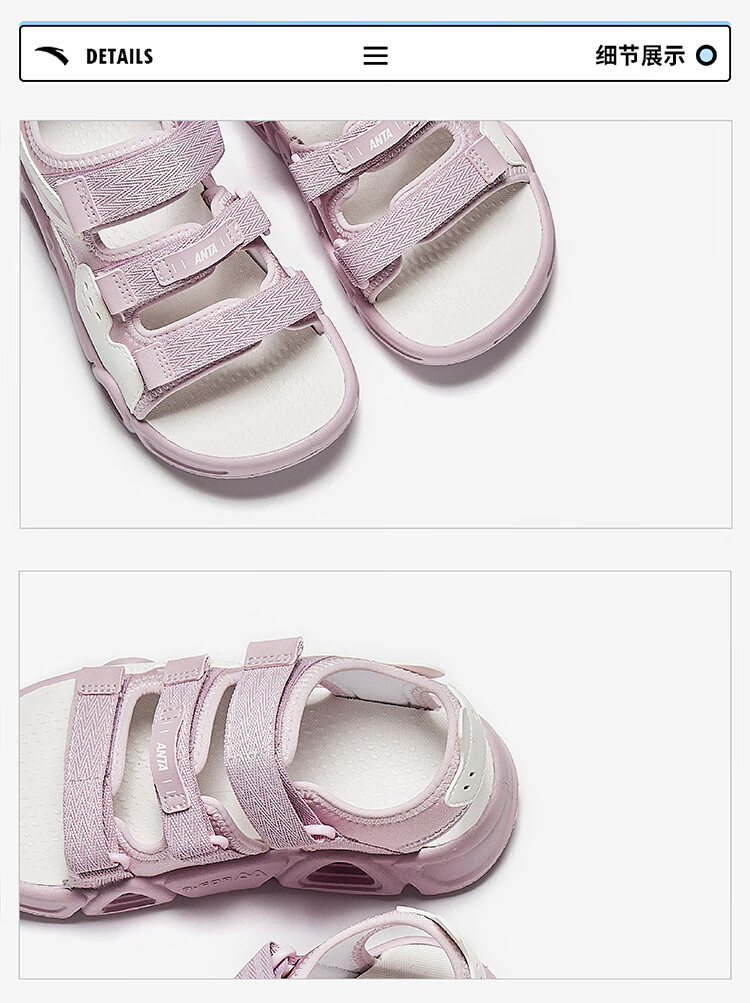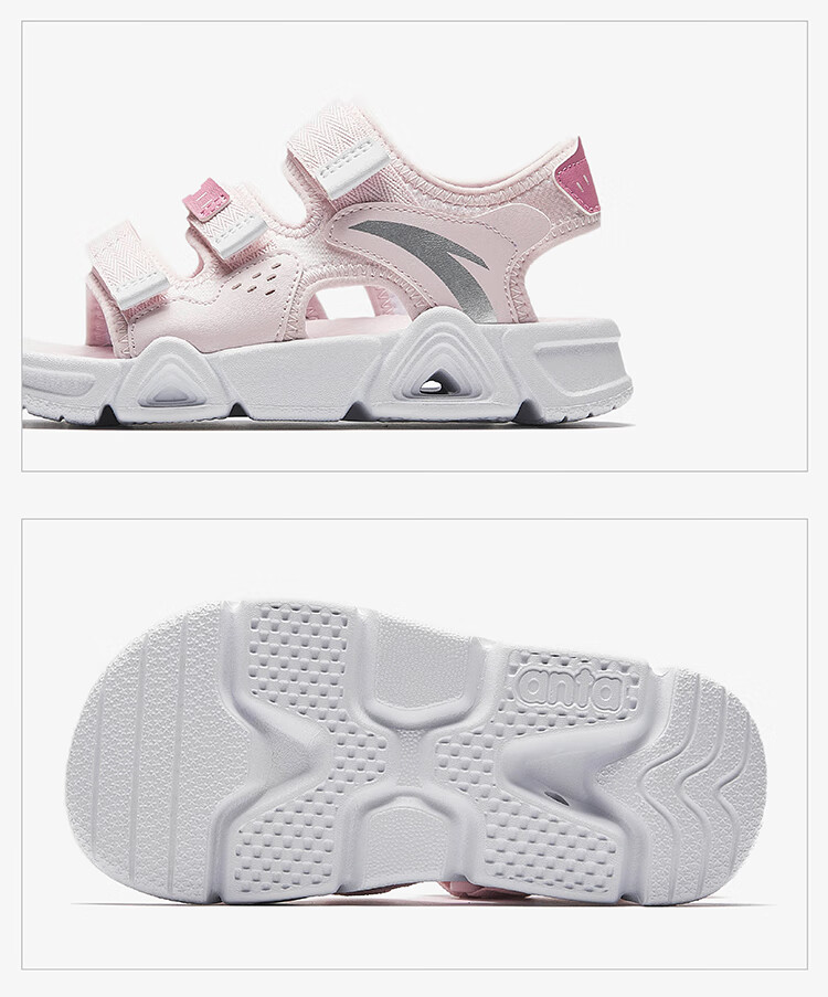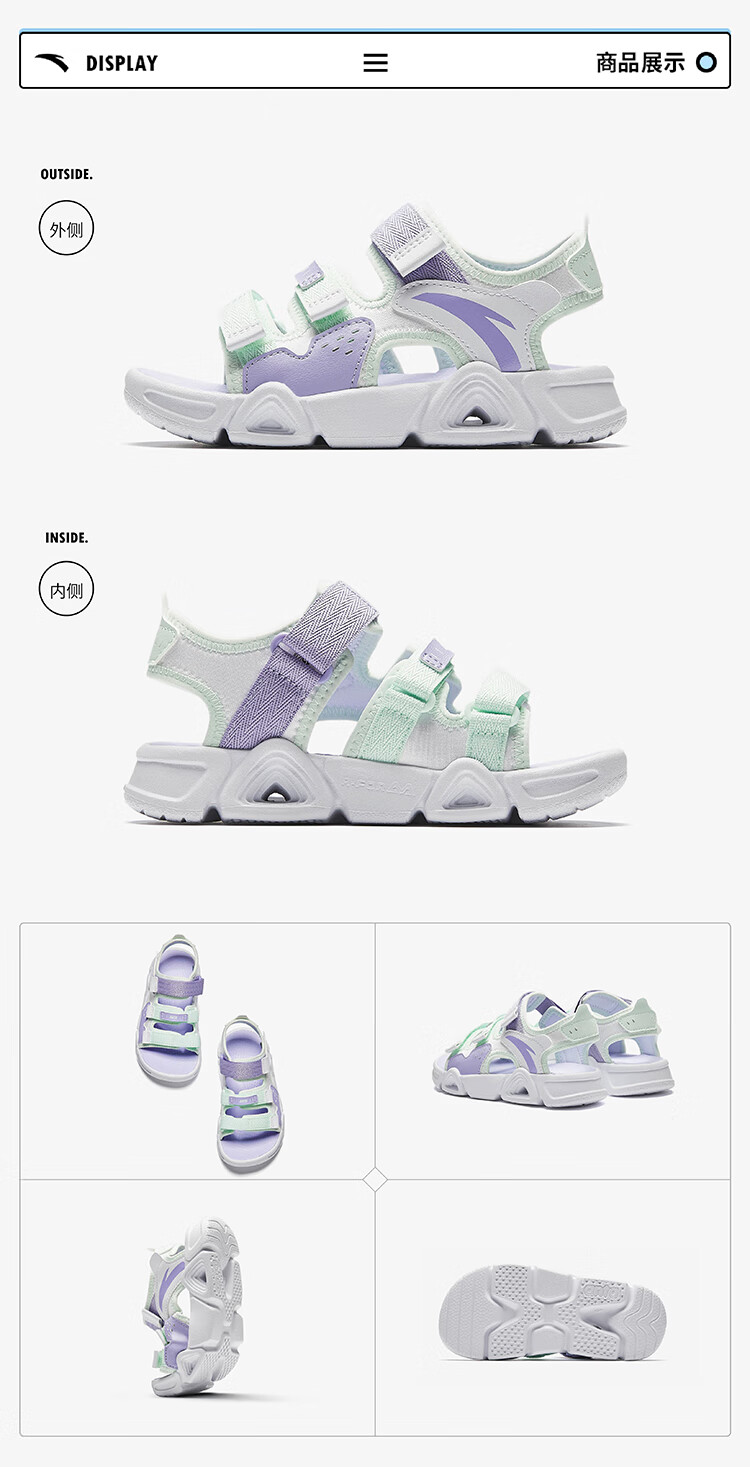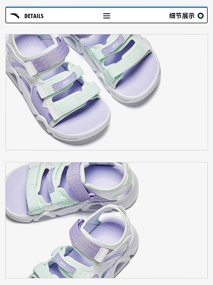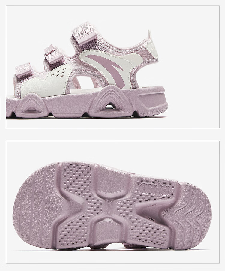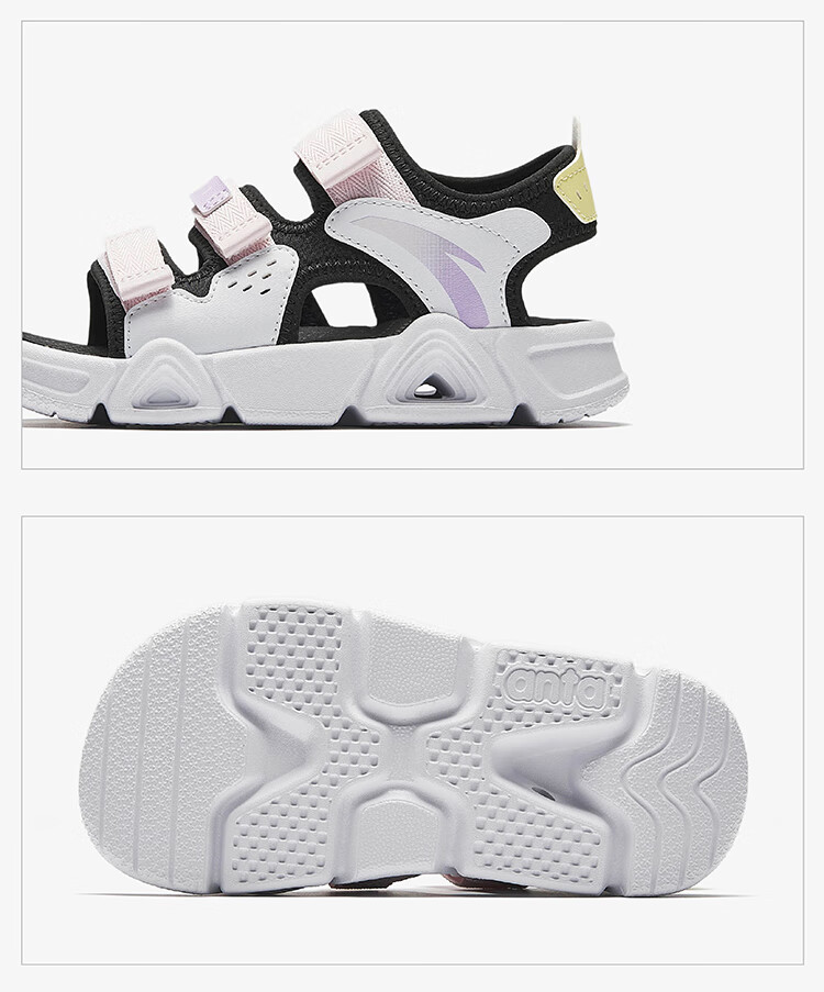 ANTA Children's Sandals Girls' Shoes 2025 Summer New Velcro Outdoor Arch Lingbo Open-Toe Beach Shoes Anta White/Fresh Purple-1 28 Shoe Inner Length 17.5cm
