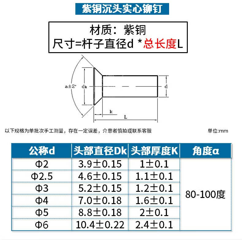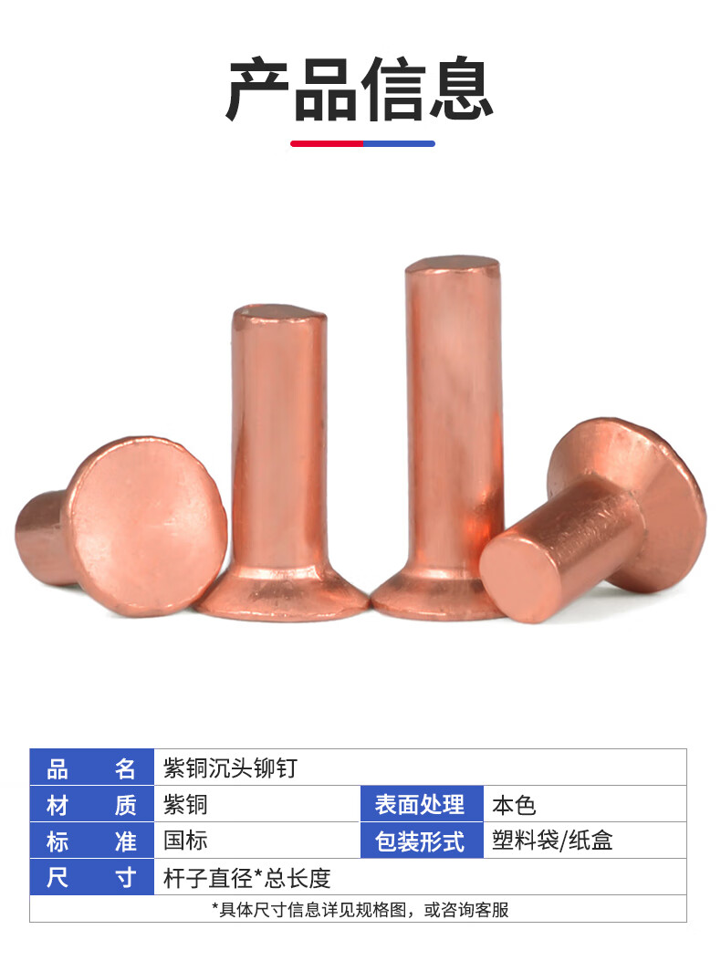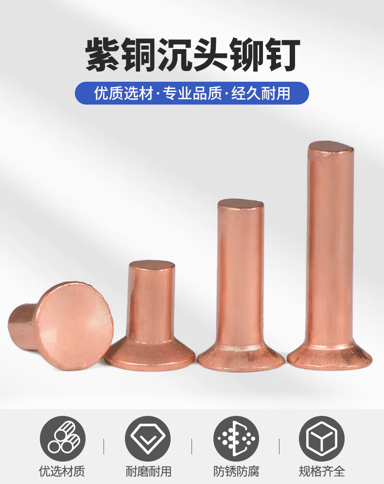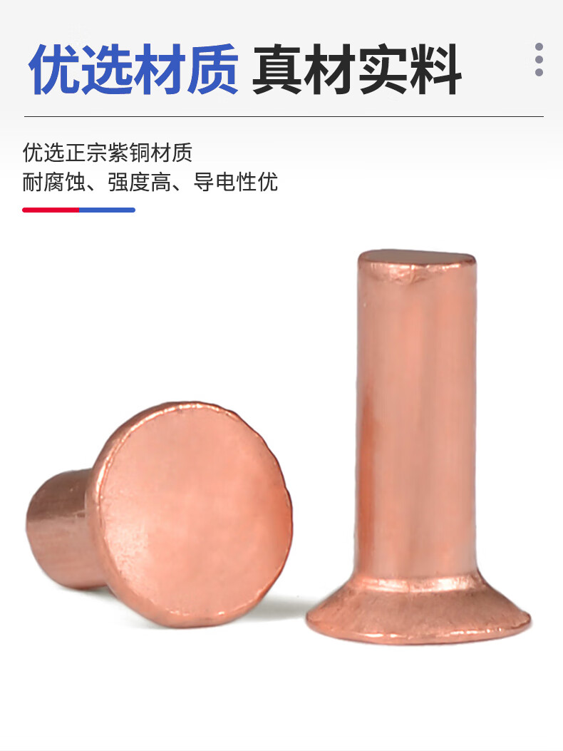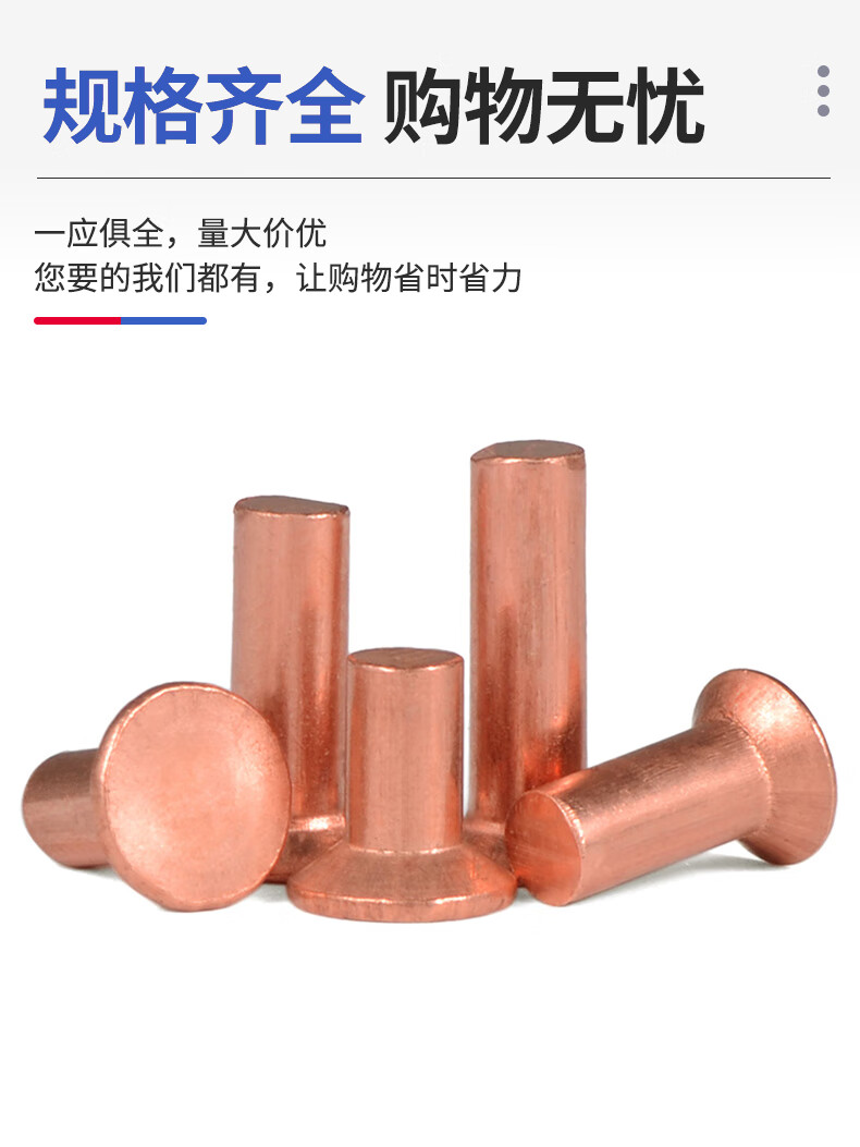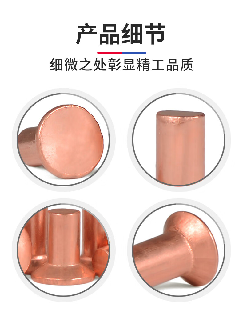 Jinggong (JINGGONG) M2-M6 copper countersunk head rivets full copper countersunk head solid rivets flat cone head copper rivets M4*25 (5 pieces)