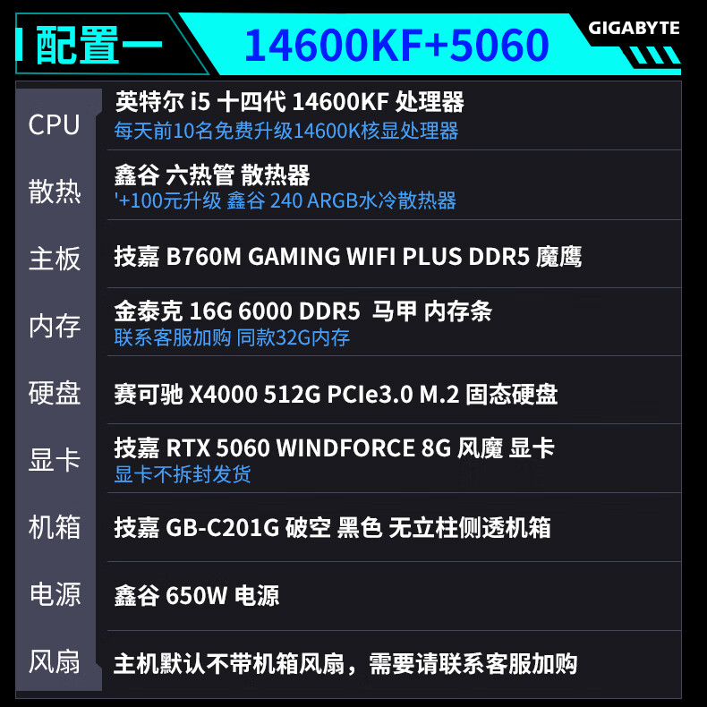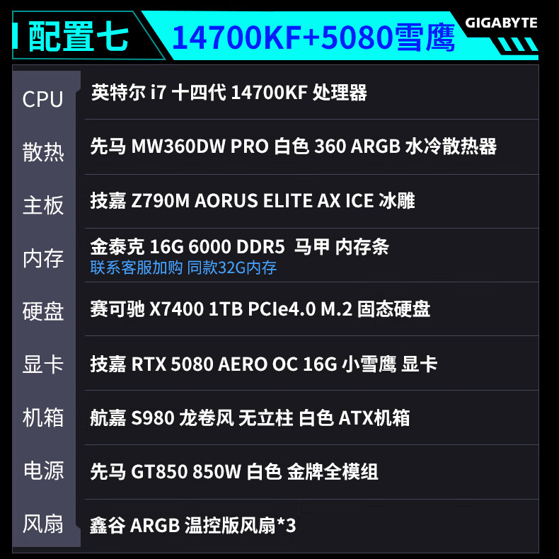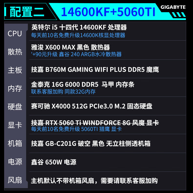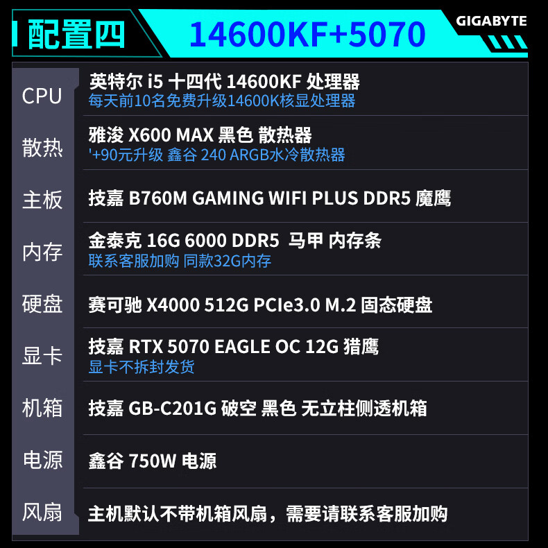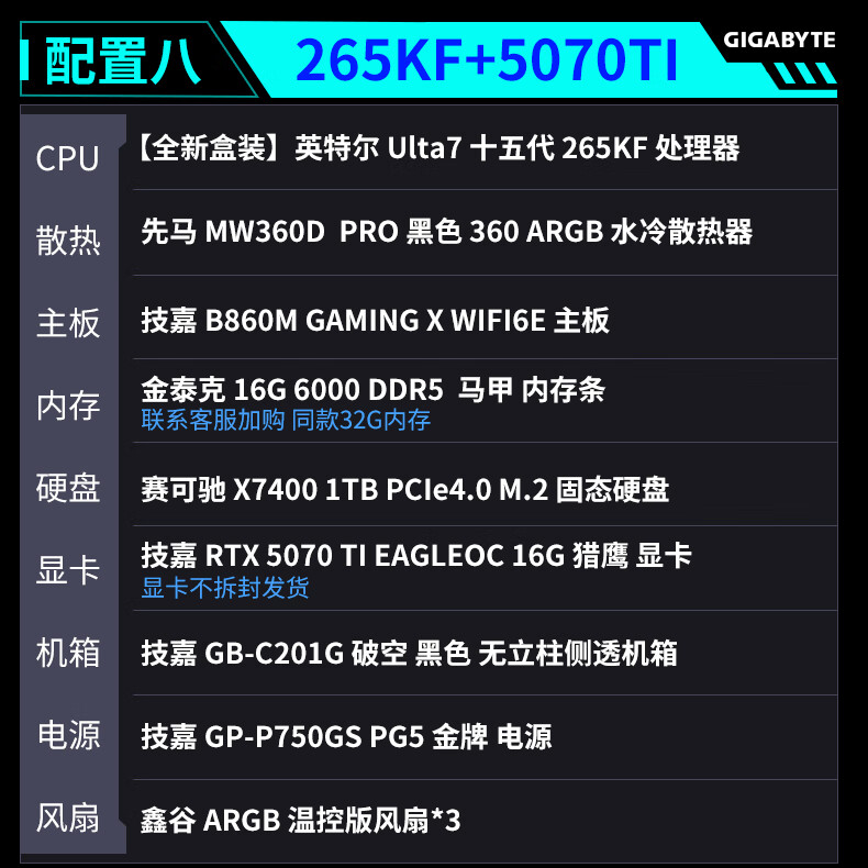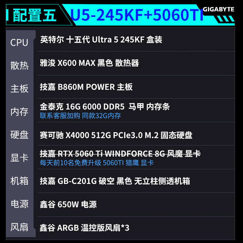 Gigabyte Family Bucket 24-term interest-free intel-i5/i7 14600KF/245K/265K+5060TI/5070TI/5080 game console desktop assembly computer six 14600K+5070TI-D5
