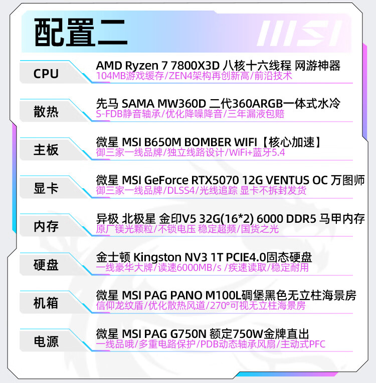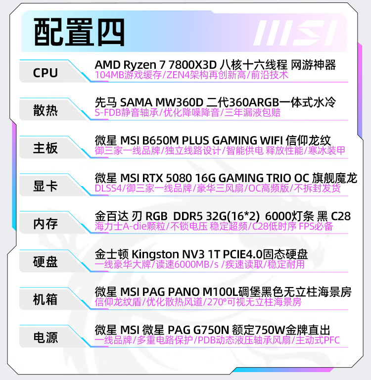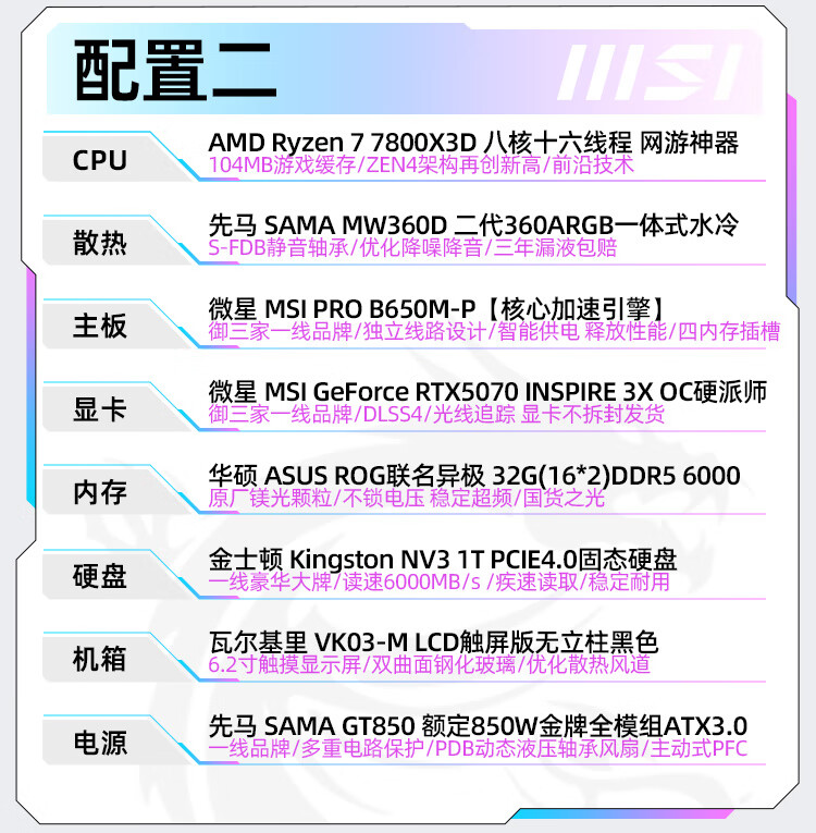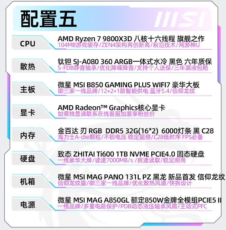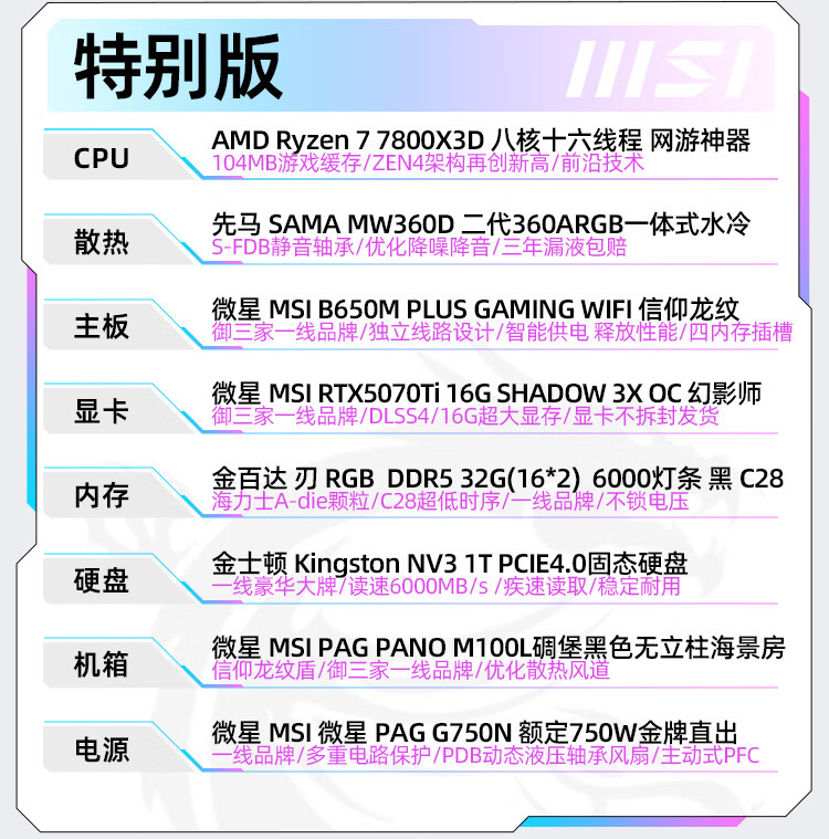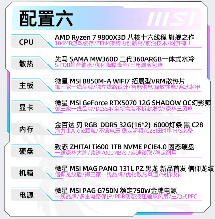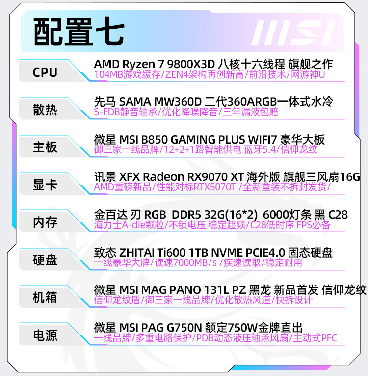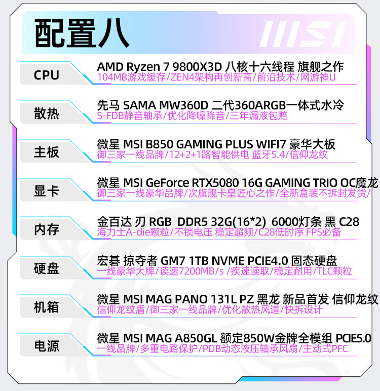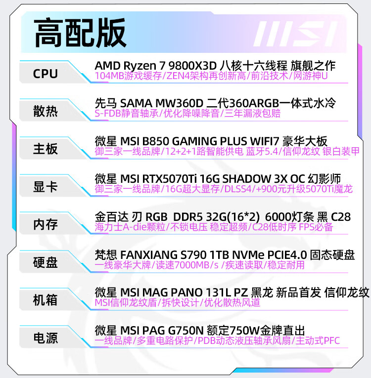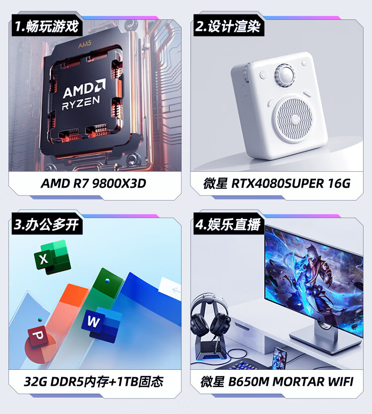 MSI AMD Ryzen 7 9800X3D/RTX5080 graphics card high-end e-sports live game desktop assembly computer host complete machine 1000 frames e-sports DIY assembly machine high-end version 9800X3D+RTX5070Ti 16G