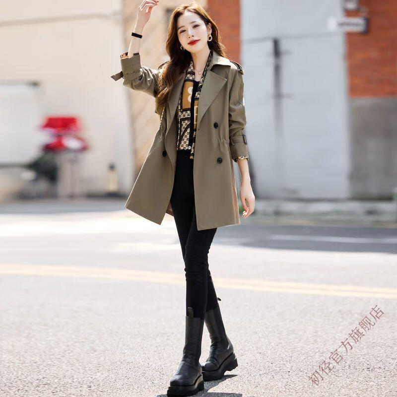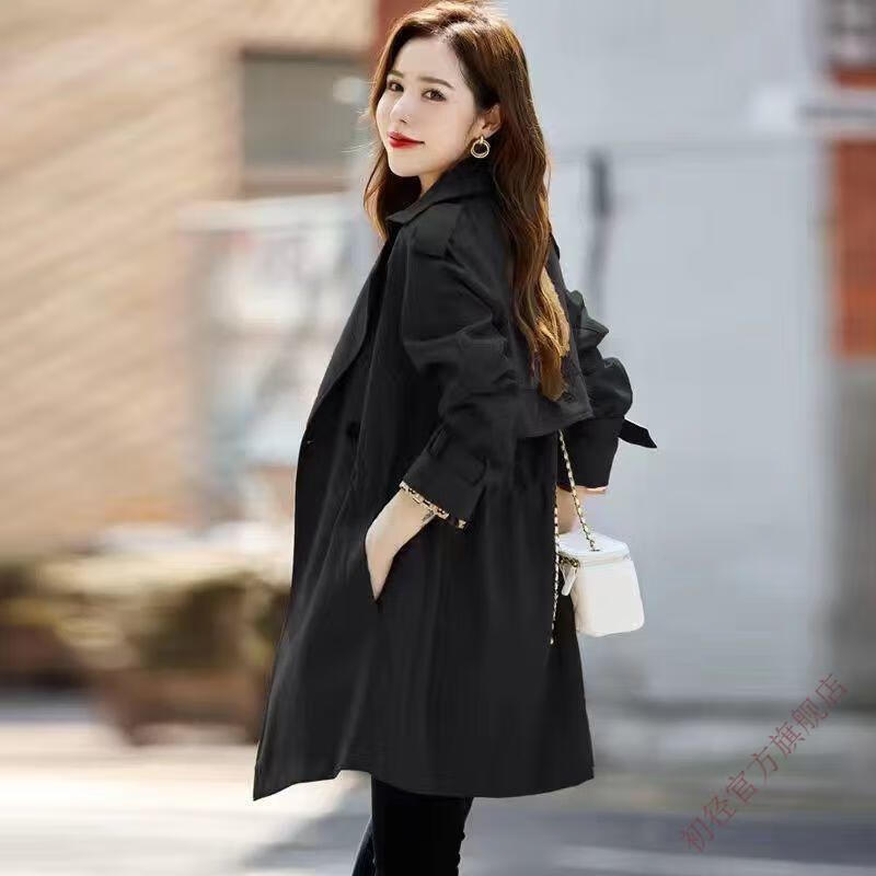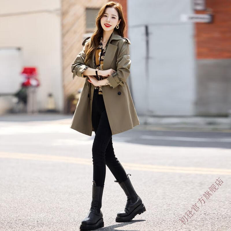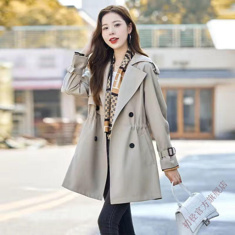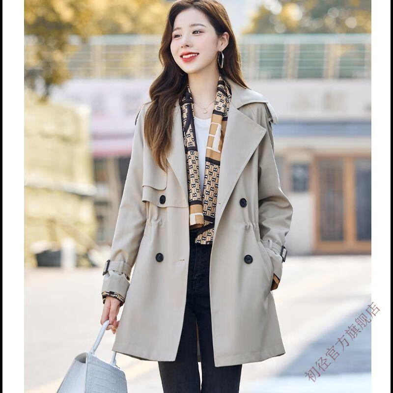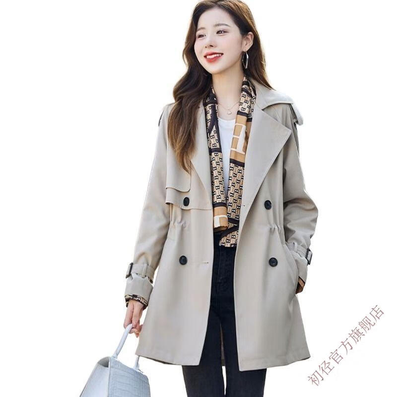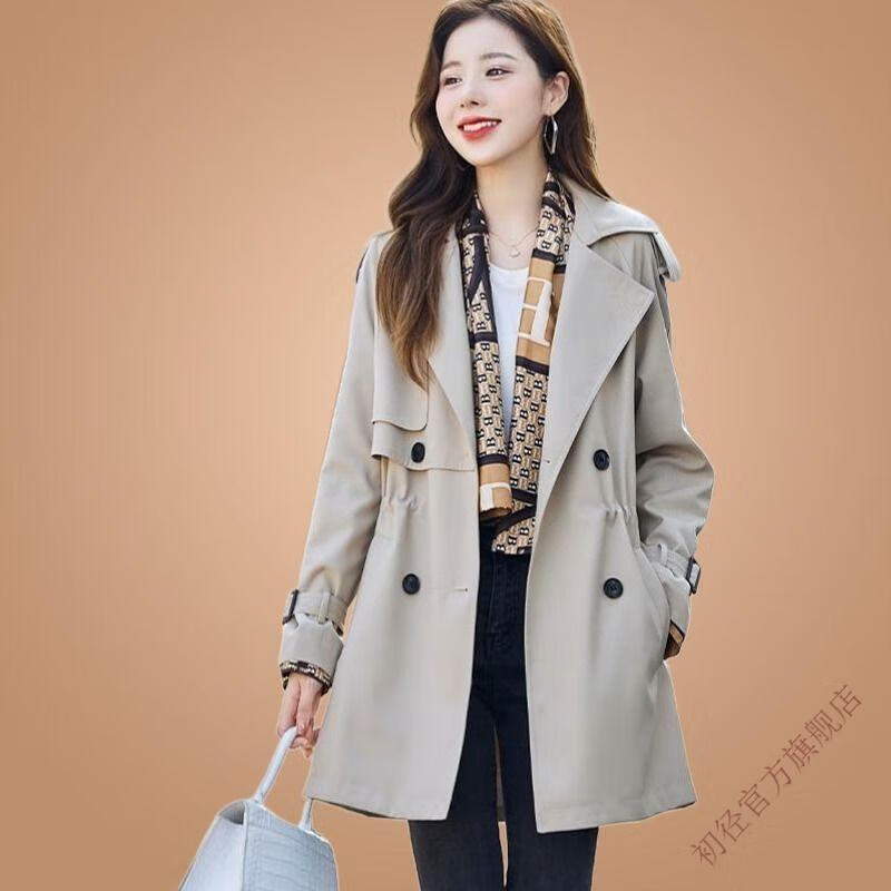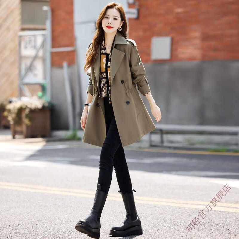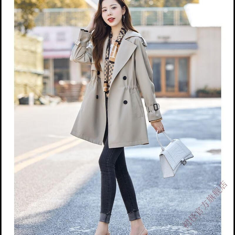 First diameter lined medium-length windbreaker jacket for women spring and autumn 2026 new Korean style loose large size coat for small people coffee color (with lining and scarf) M (105Jin Jin is equal to 0.5 kg)