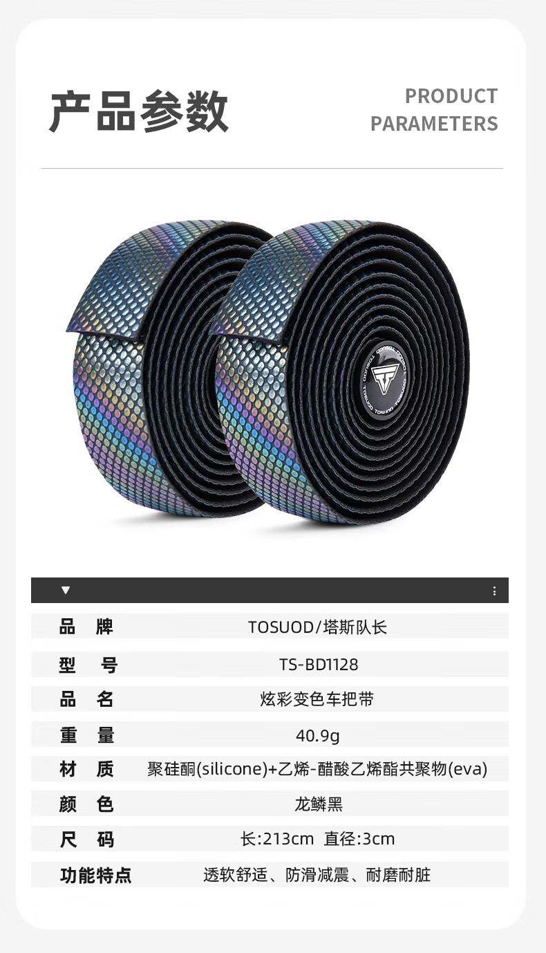 Captain Tas road handlebar with bicycle shock-absorbing handlebar, comfortable curved handlebar cover, non-slip, dirt-resistant, breathable riding equipment, colorful black scales